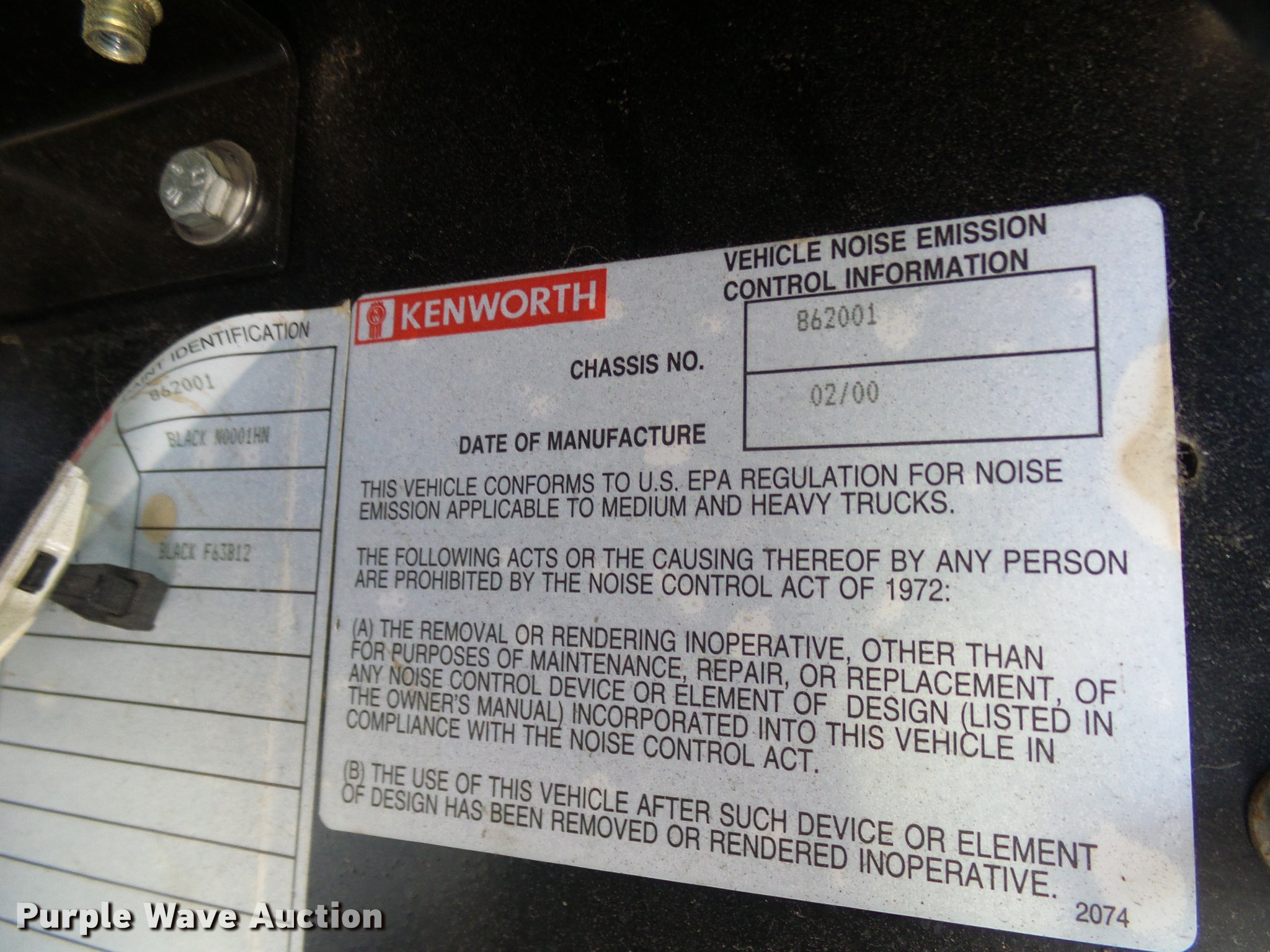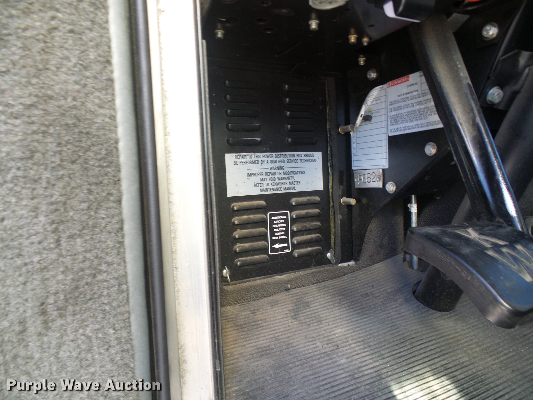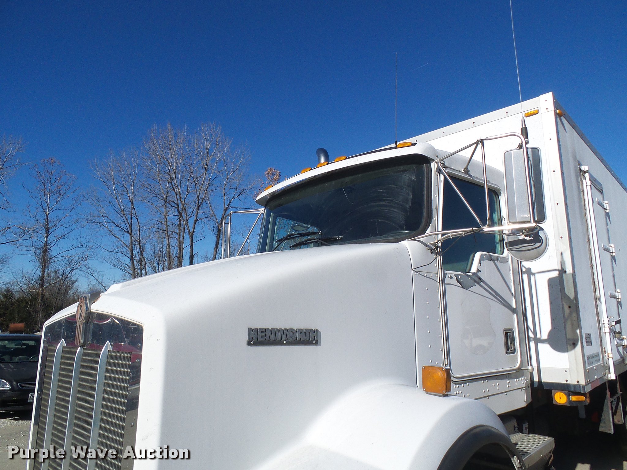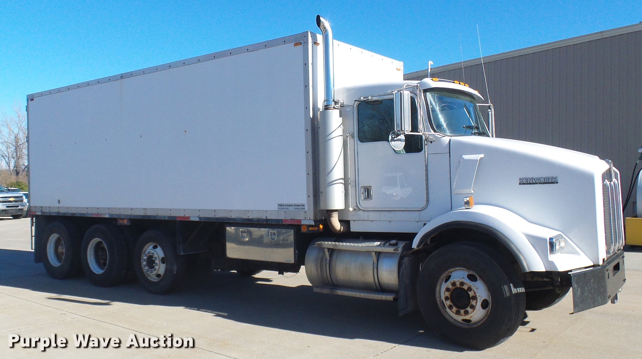 Purple Wave is selling a used Box Truck in Missouri. This item is a 2000 Kenworth T800 scale certification truck with the following: 214,979 miles on odometer, Caterpillar C12 12.0L L6 turbo diesel engine, Eaton Fuller 10 speed manual transmission, Triple axle, AC and heat, AM/FM, Heated mirrors, Air suspension seat, PTO, Toolboxes, Tiffin loader crane 25000 scale test body cart, Trolley system, Kohler gas engine, 25 HP, Remote control, Side door, Swing-out rear doors, Storage boxes, Single fuel tank, 269" wheelbase, Double frame, Spring suspension, Air brakes, GVWR 70,350 lbs, FAWR 20,000 lbs, RAWR 40,000 lbs, GAWR pusher axle 13,200 lbs, 315/80R22.5 tires