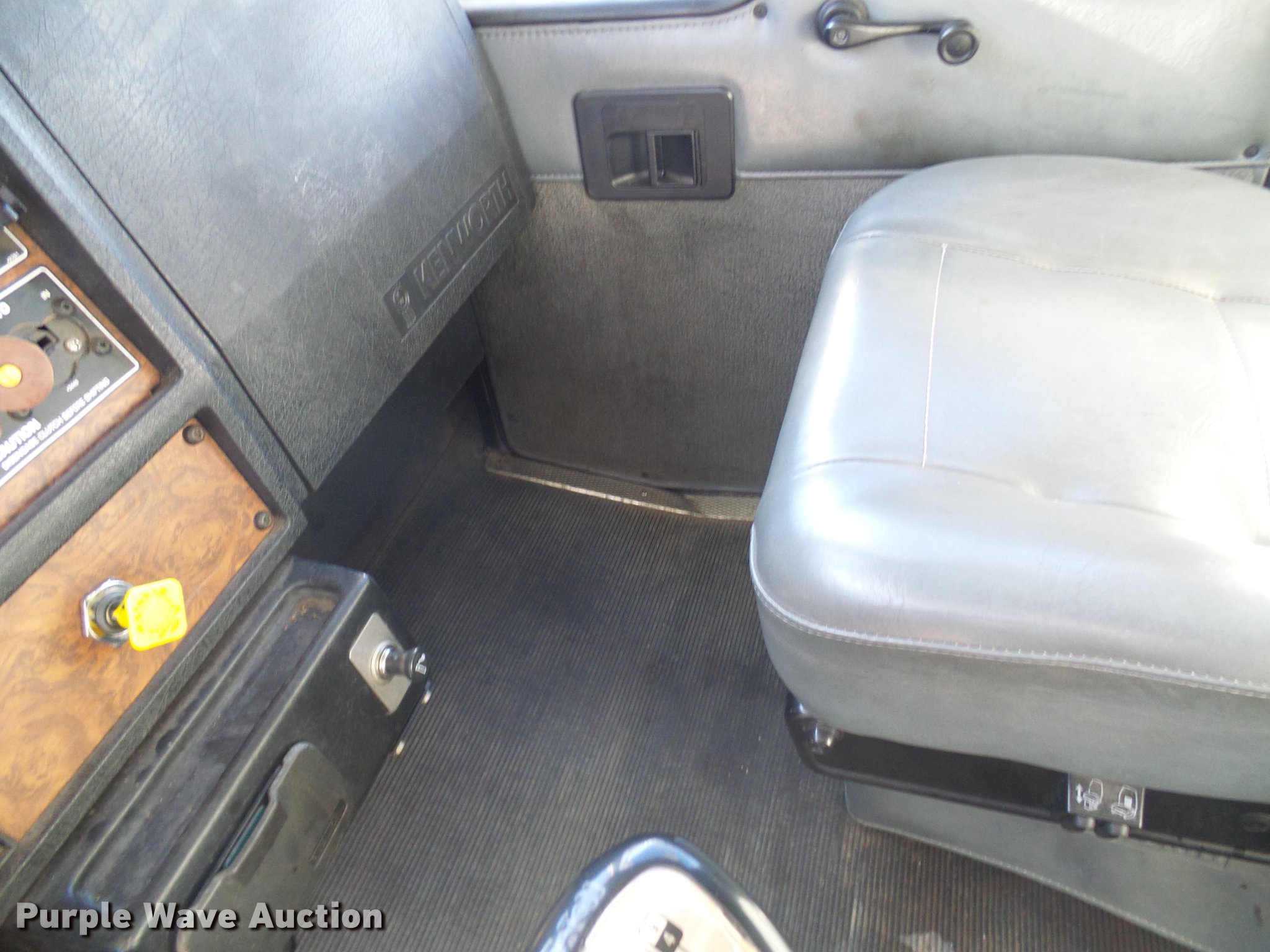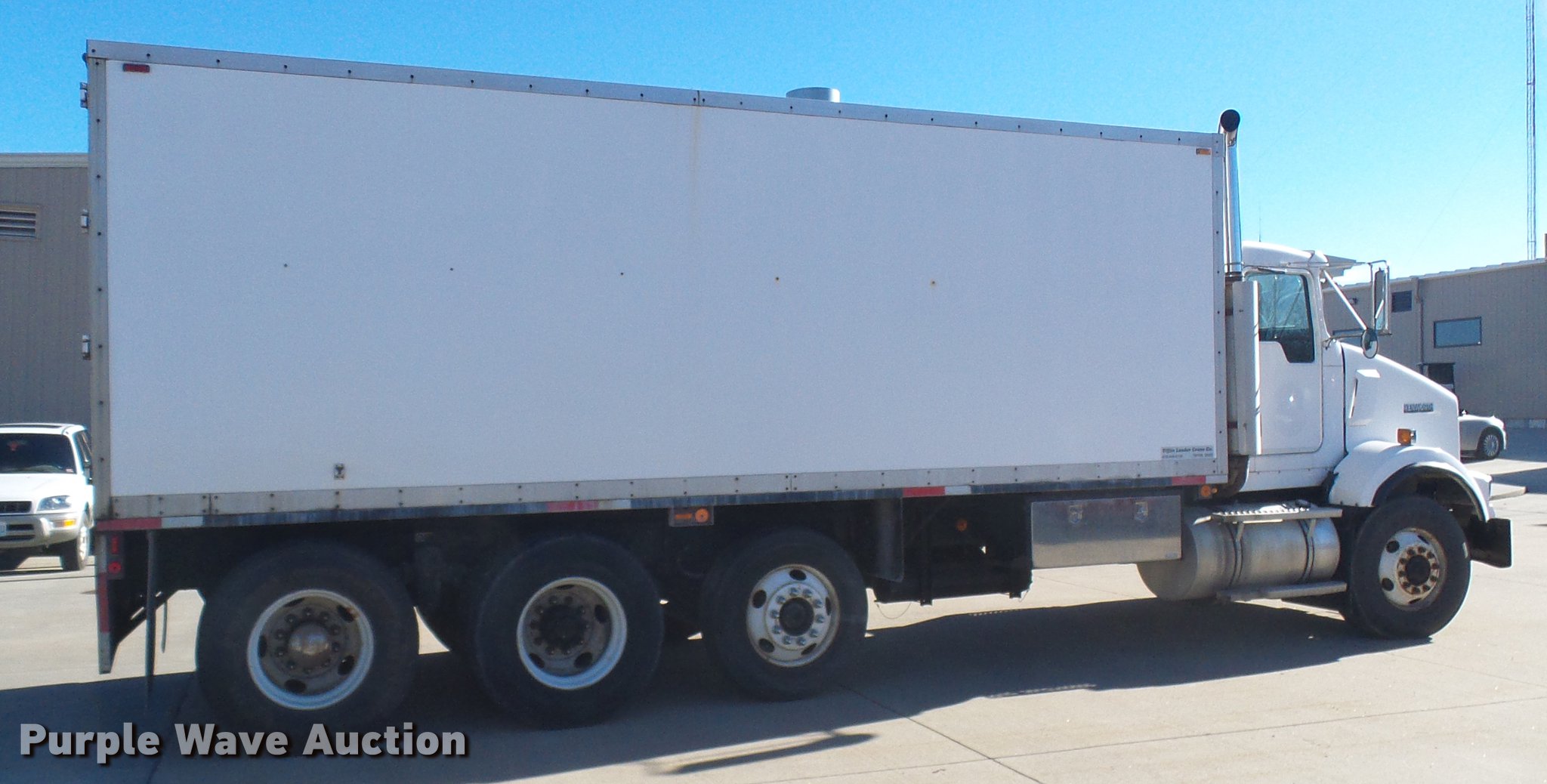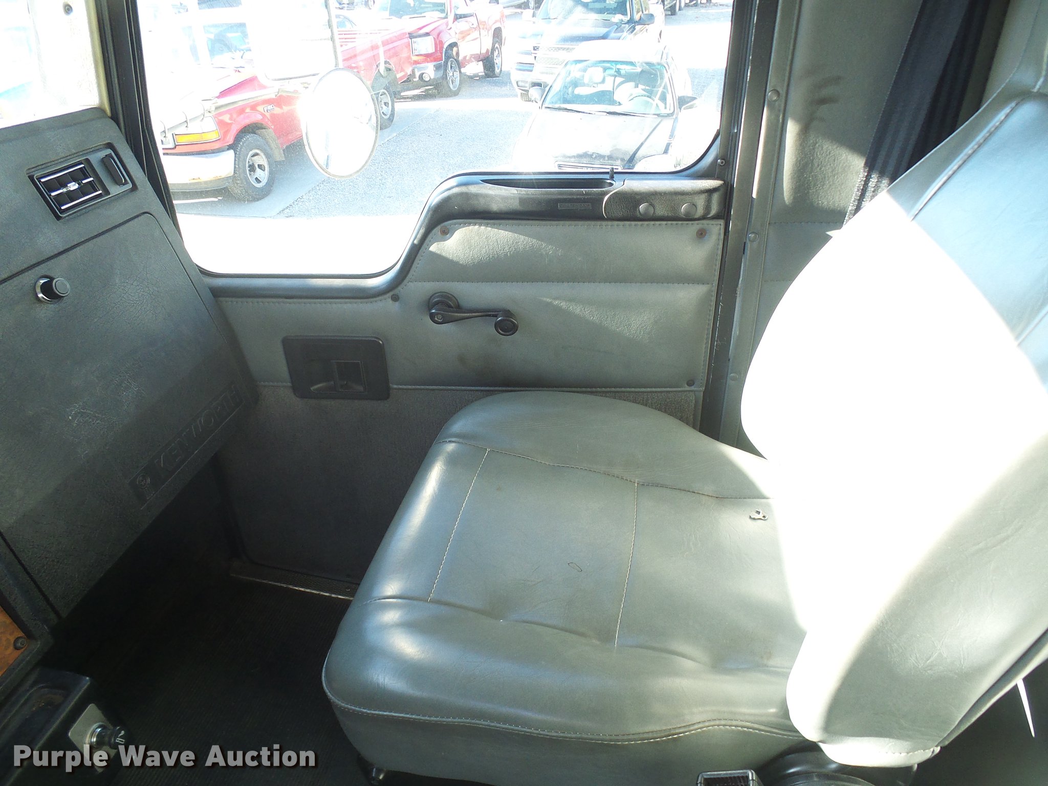 Purple Wave is selling a used Box Truck in Missouri. This item is a 2000 Kenworth T800 scale certification truck with the following: 214,979 miles on odometer, Caterpillar C12 12.0L L6 turbo diesel engine, Eaton Fuller 10 speed manual transmission, Triple axle, AC and heat, AM/FM, Heated mirrors, Air suspension seat, PTO, Toolboxes, Tiffin loader crane 25000 scale test body cart, Trolley system, Kohler gas engine, 25 HP, Remote control, Side door, Swing-out rear doors, Storage boxes, Single fuel tank, 269" wheelbase, Double frame, Spring suspension, Air brakes, GVWR 70,350 lbs, FAWR 20,000 lbs, RAWR 40,000 lbs, GAWR pusher axle 13,200 lbs, 315/80R22.5 tires