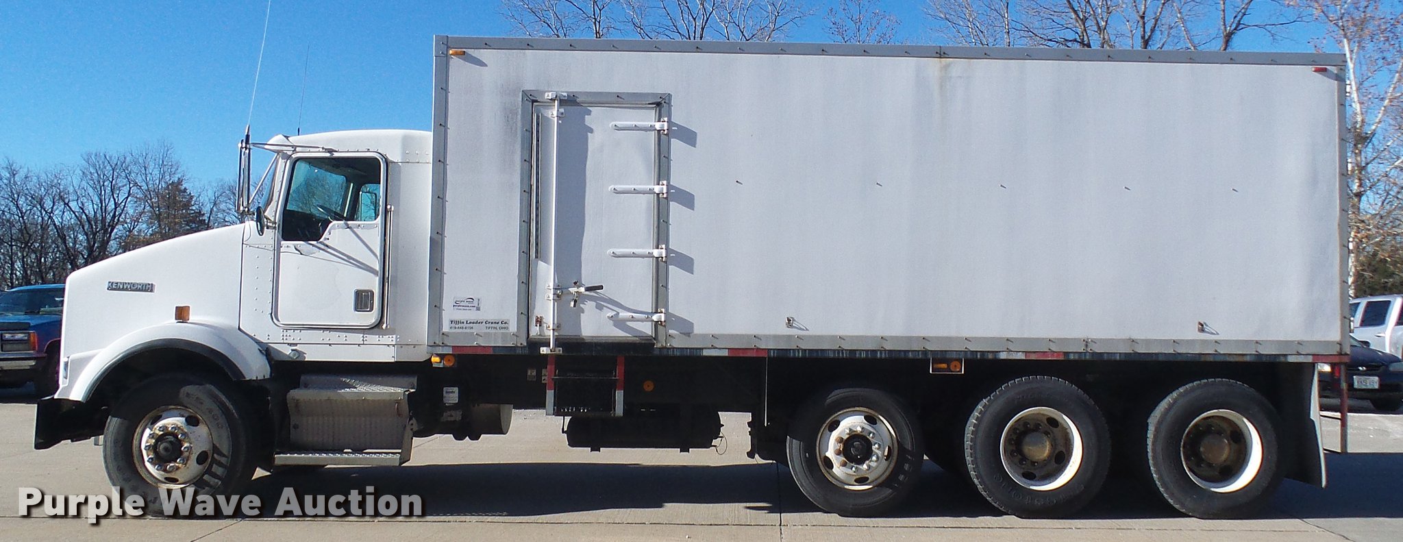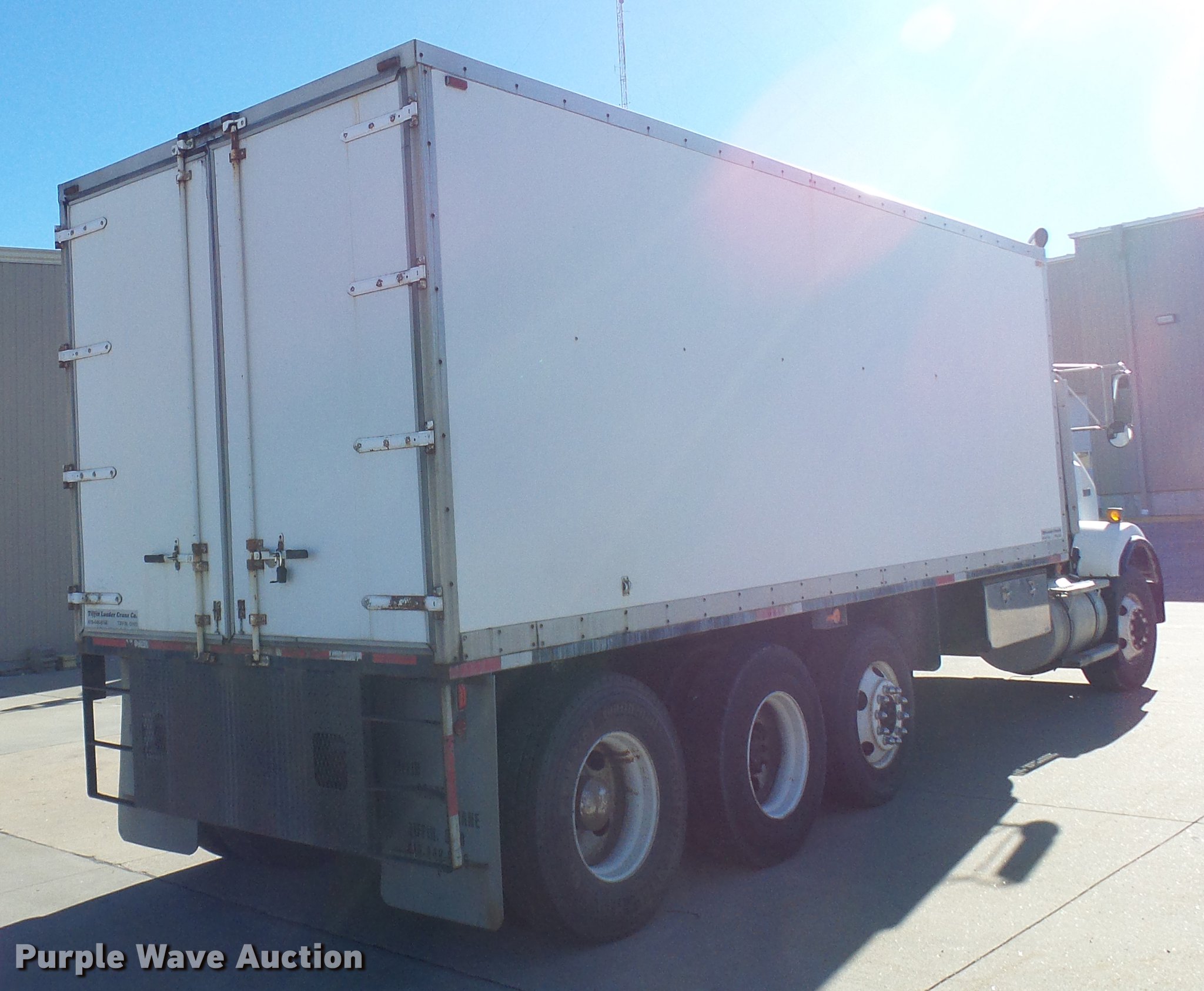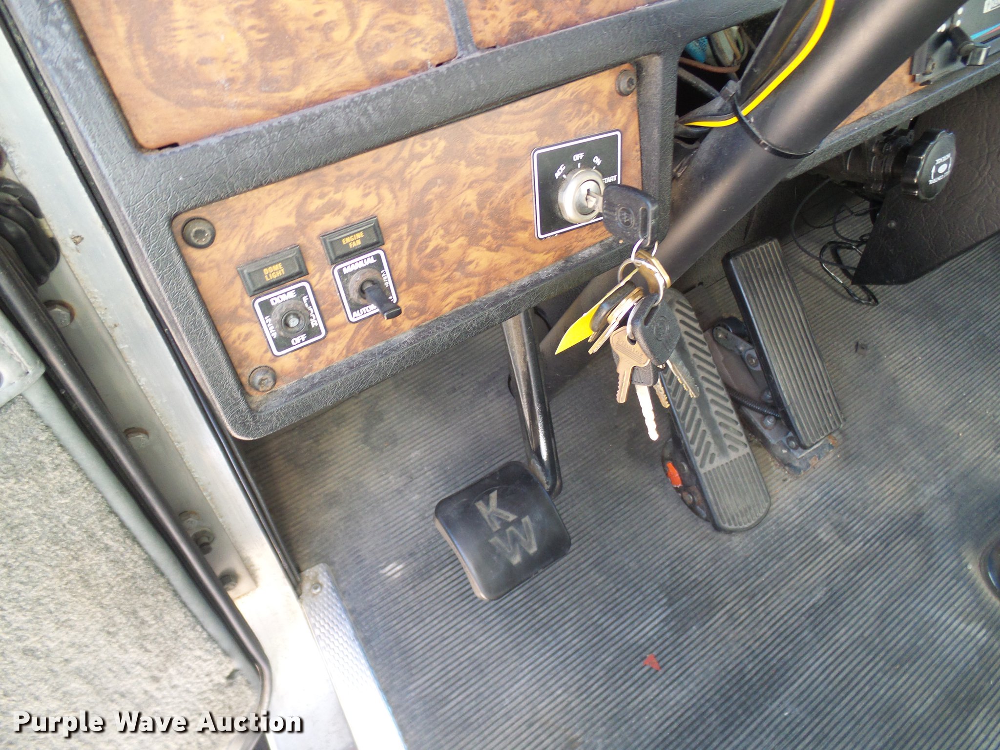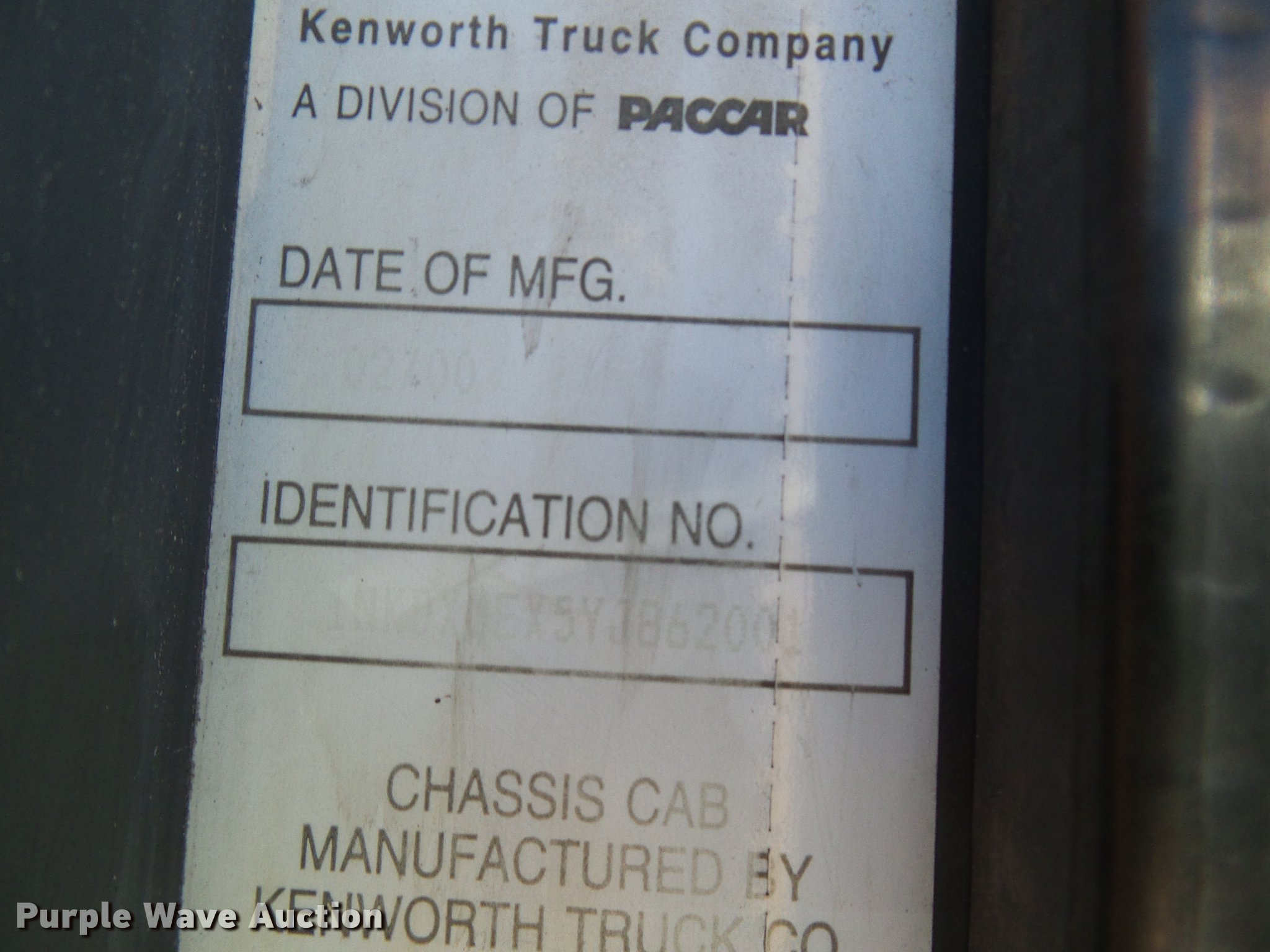 Purple Wave is selling a used Box Truck in Missouri. This item is a 2000 Kenworth T800 scale certification truck with the following: 214,979 miles on odometer, Caterpillar C12 12.0L L6 turbo diesel engine, Eaton Fuller 10 speed manual transmission, Triple axle, AC and heat, AM/FM, Heated mirrors, Air suspension seat, PTO, Toolboxes, Tiffin loader crane 25000 scale test body cart, Trolley system, Kohler gas engine, 25 HP, Remote control, Side door, Swing-out rear doors, Storage boxes, Single fuel tank, 269" wheelbase, Double frame, Spring suspension, Air brakes, GVWR 70,350 lbs, FAWR 20,000 lbs, RAWR 40,000 lbs, GAWR pusher axle 13,200 lbs, 315/80R22.5 tires