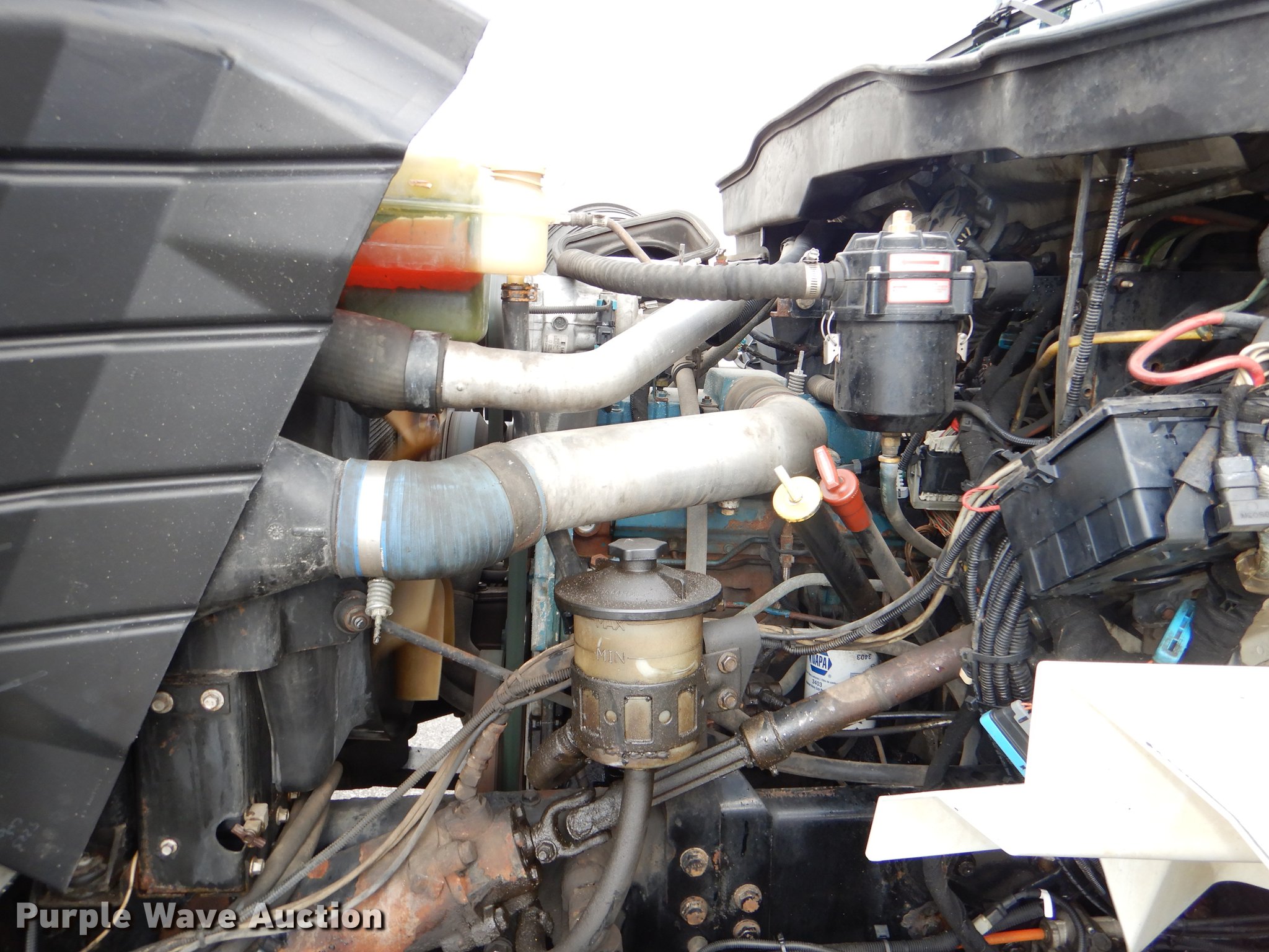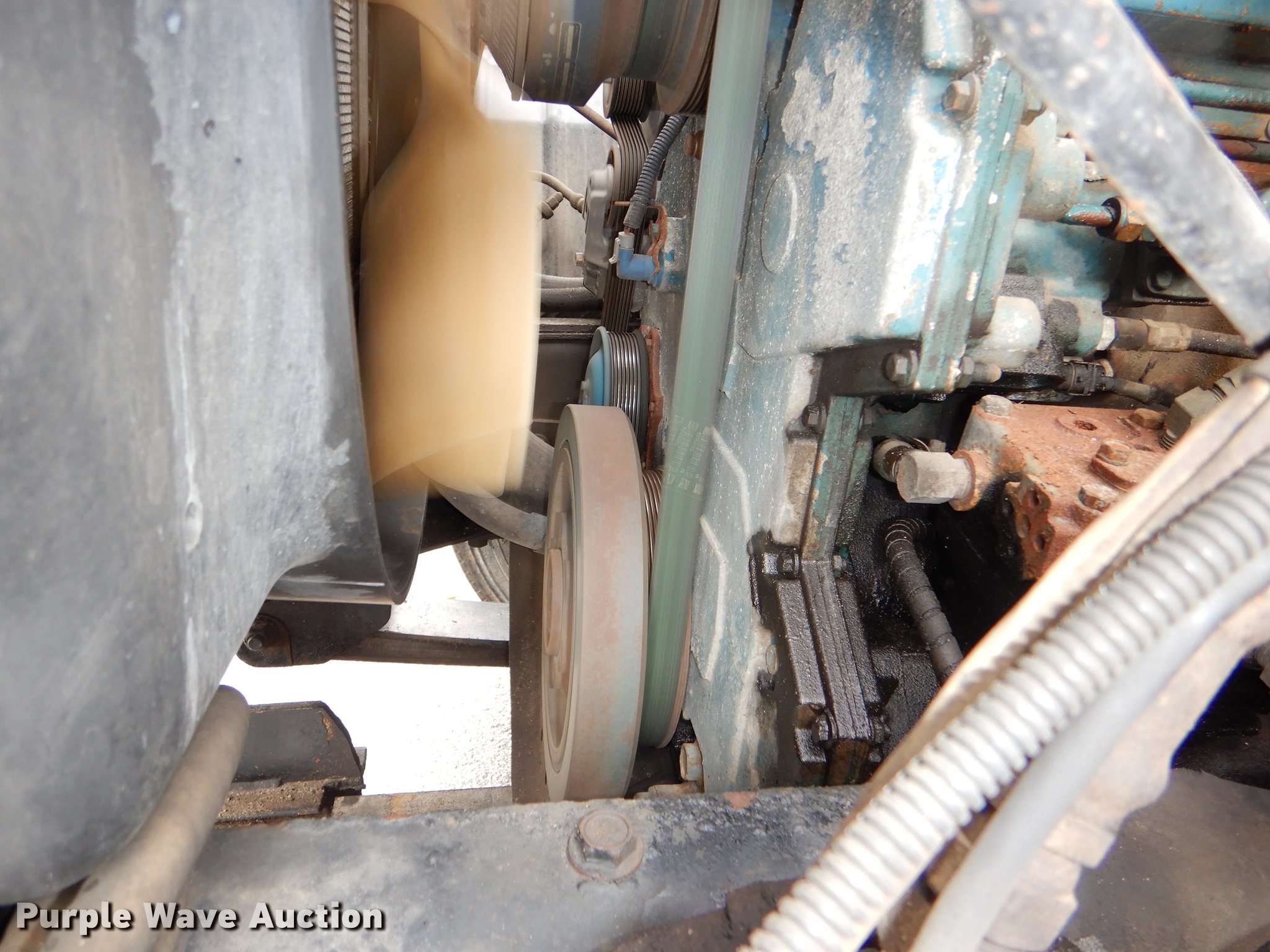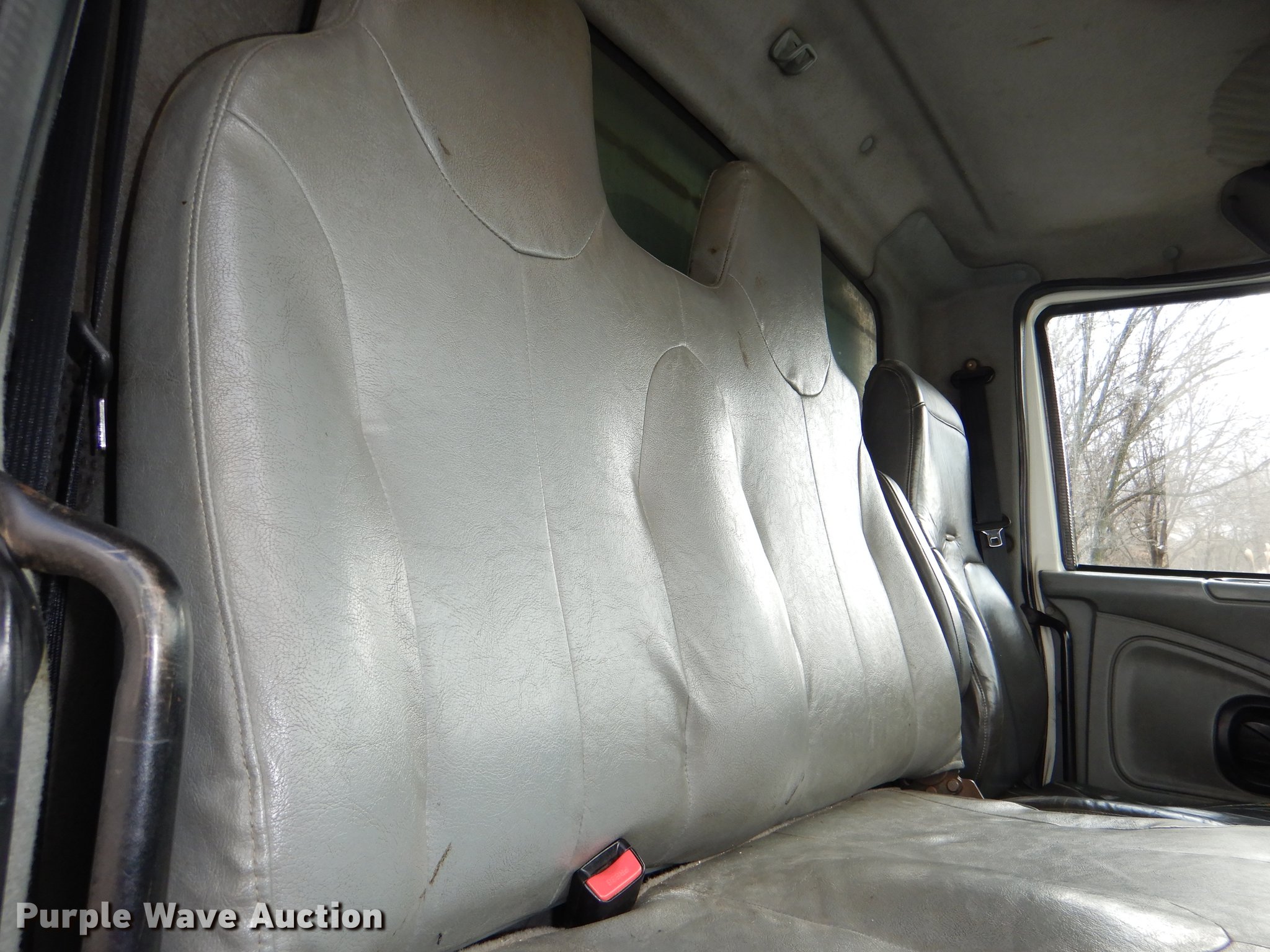 Purple Wave is selling a used Construction Dump Truck in Kansas. This item is a 2003 International 7400 dump truck with the following: 81,986 miles on odometer, 9,913 hours on meter, International DT466 7.6L L6 diesel engine, Automatic transmission, AC and heat, Tilt, Cruise, AM/FM, Air suspension seat, Vinyl interior, Block heater, Warren 0450-12-FD stainless steel dump bed, 12'L x 8'W, 18"H fold down sides, Five yd. capacity, Air operated end gate, Side load ratchets, Rear and side work lights, Plow mounting bracket, Hydraulic reservoir, Single fuel tank, Pintle hitch, Trailer wiring, Spring suspension, Air brakes, 178" wheelbase, 255/70R22.5 tires, GVWR 30,000 lbs, FAWR 10,000 lbs, RAWR 20,000 lbs, Non-operational AC, ABS light on, Rusted floorboard, Spreader and plow selling separately as items EA9138 and EA9137