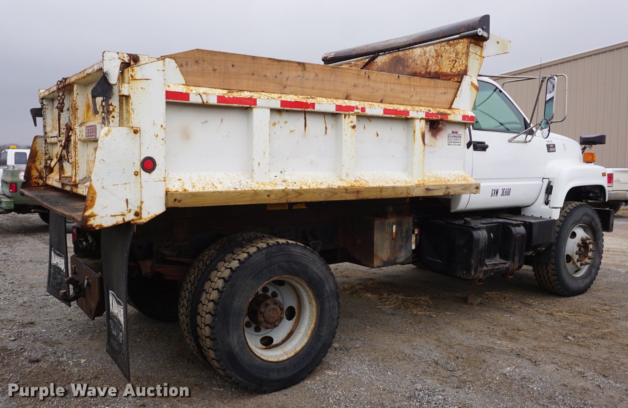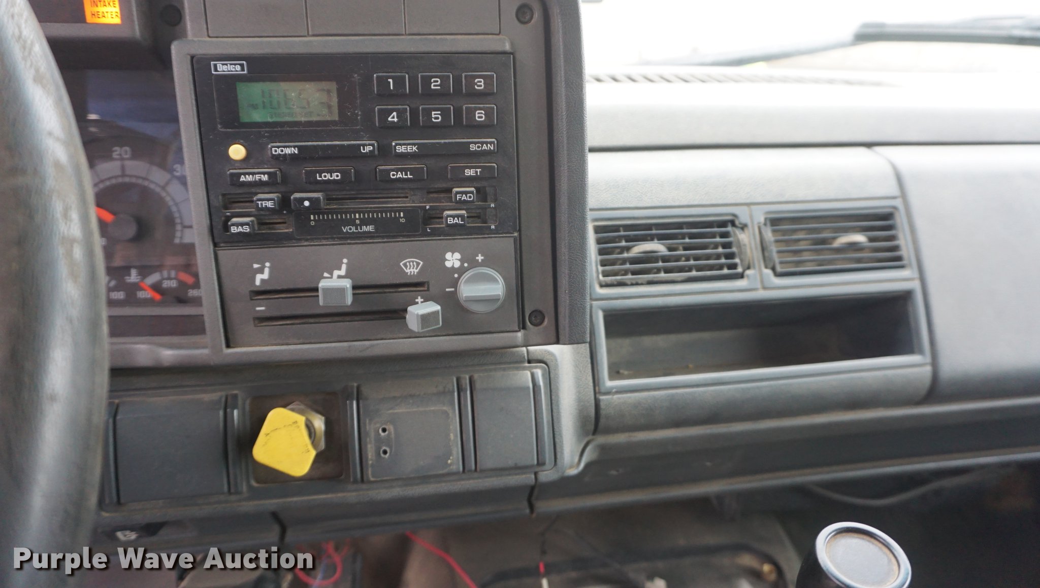 Purple Wave is selling a used Construction Dump Truck in Kansas. This item is a 1997 Chevrolet C8500 dump truck with the following: 35,491 miles on odometer, Caterpillar 3116 6.6L L6 diesel engine, 215 HP, Allison automatic transmission, Single axle, Heat, AM/FM, Air suspension seat, Brake controller, Front plow bracket, PTO, Heil SLT5YD steel dump bed, 10'L x 96"W, 24" side height, 10" side board height, Manual operated end gate, Single ram hoist, Bed vibrator, Roll tarp, Pintle hitch, Single fuel tank, Spring suspension, Air brakes, 315/80R22.5 front tires, 11R22.5 rear tires, GVWR 33,600 lbs, FAWR 14,600 lbs, RAWR 22,000 lbs