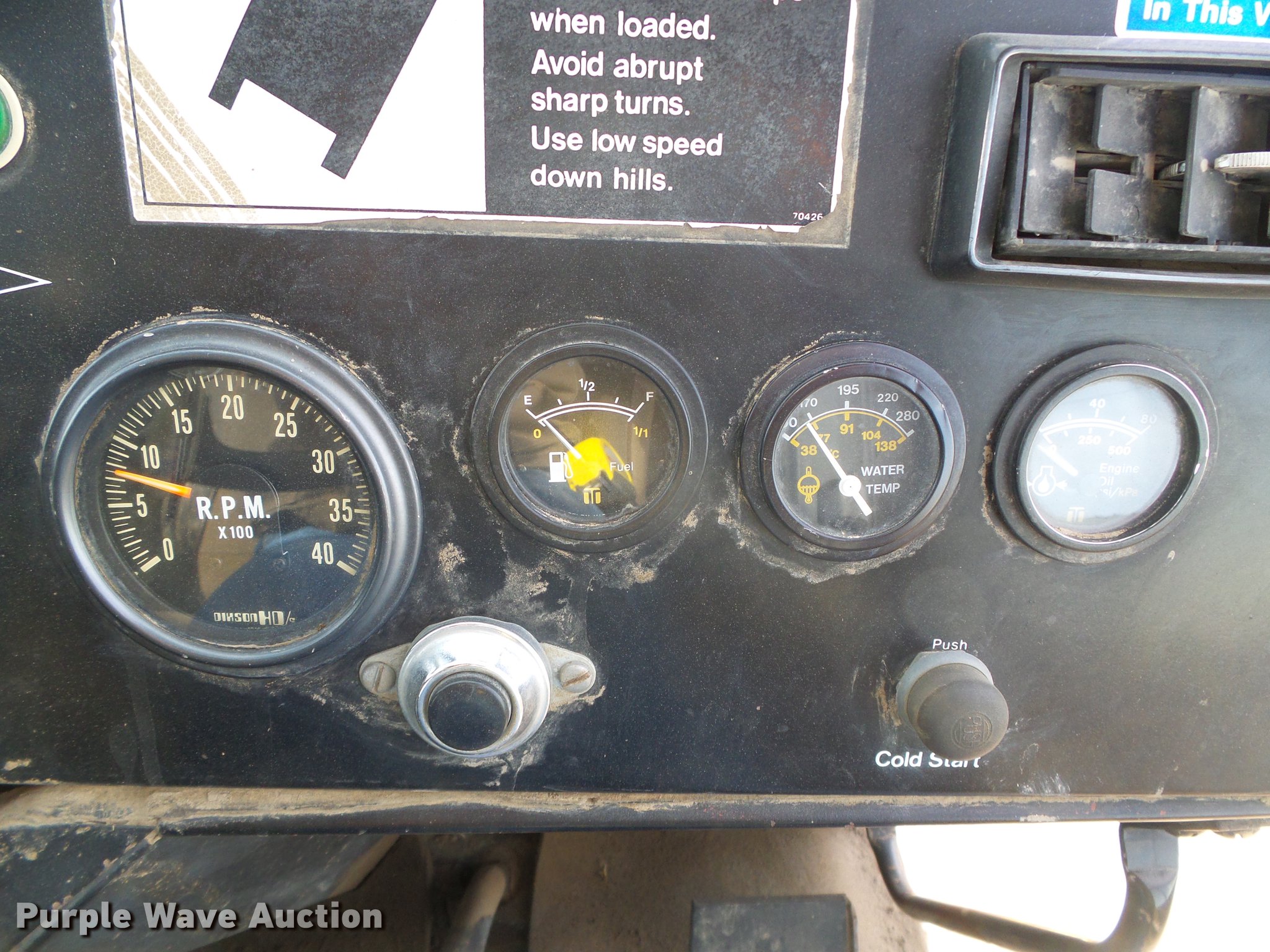 1986 FMC Vanguard 3000 street sweeper. 77,743 miles on odometer, 2,521 hours on meter, Detroit Diesel 40877100 8.2L eight cylinder diesel engine, Two speed hydrostatic transmission, Wipers, Work lights, 10.00R15 TR front tires, 10.00R20 rear tires, Batteries weak, Bearings and brushes need replaced, Oil leaks. Transfer of ownership documentation will be a bill of sale. 1F9VM3L18GP041125. City of Ransom. 421 Vermont Ave. Ransom, KS 67572