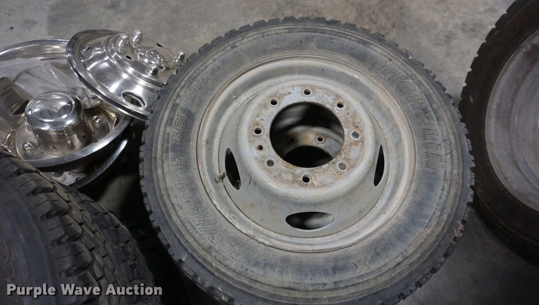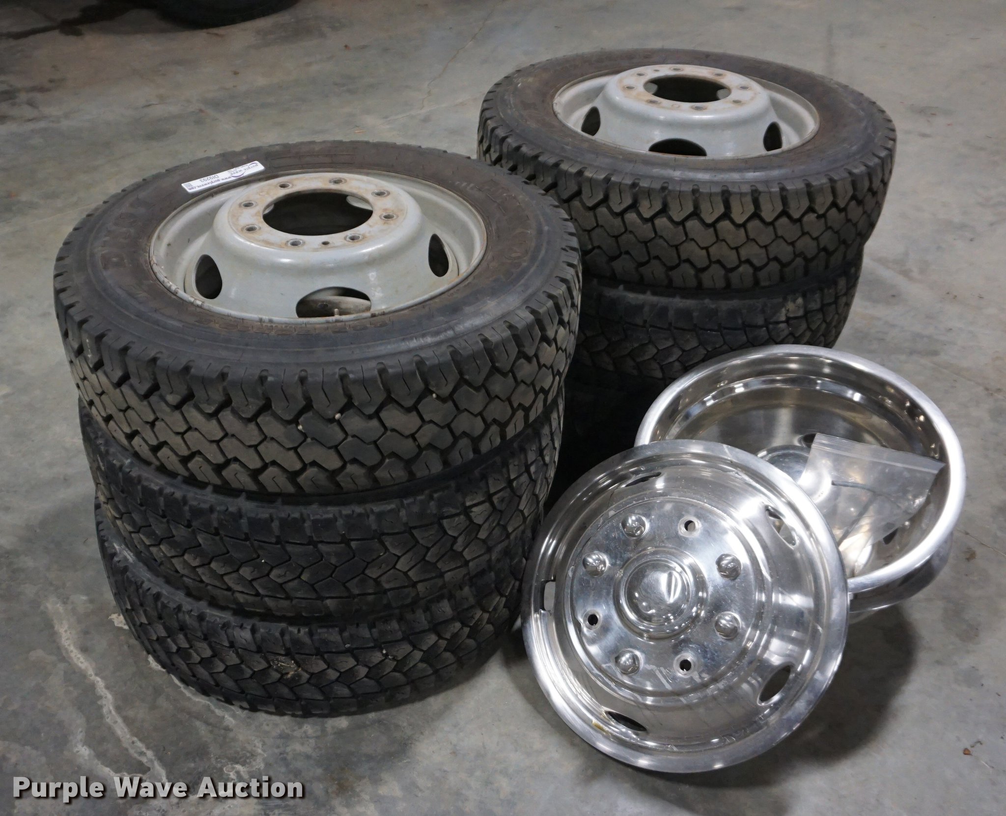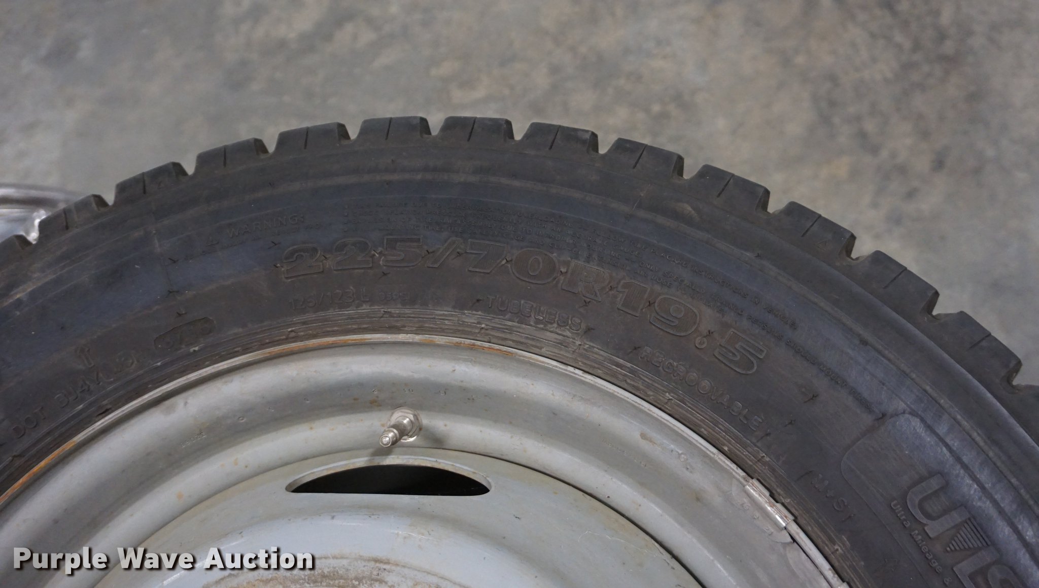 Purple Wave is selling a used Industrial Tires or Tracks in Kansas. This item is a (6) 225/70R19.5 tires and wheels with the following: (2) Hancook, (4) Michelin, Wheel and lug covers