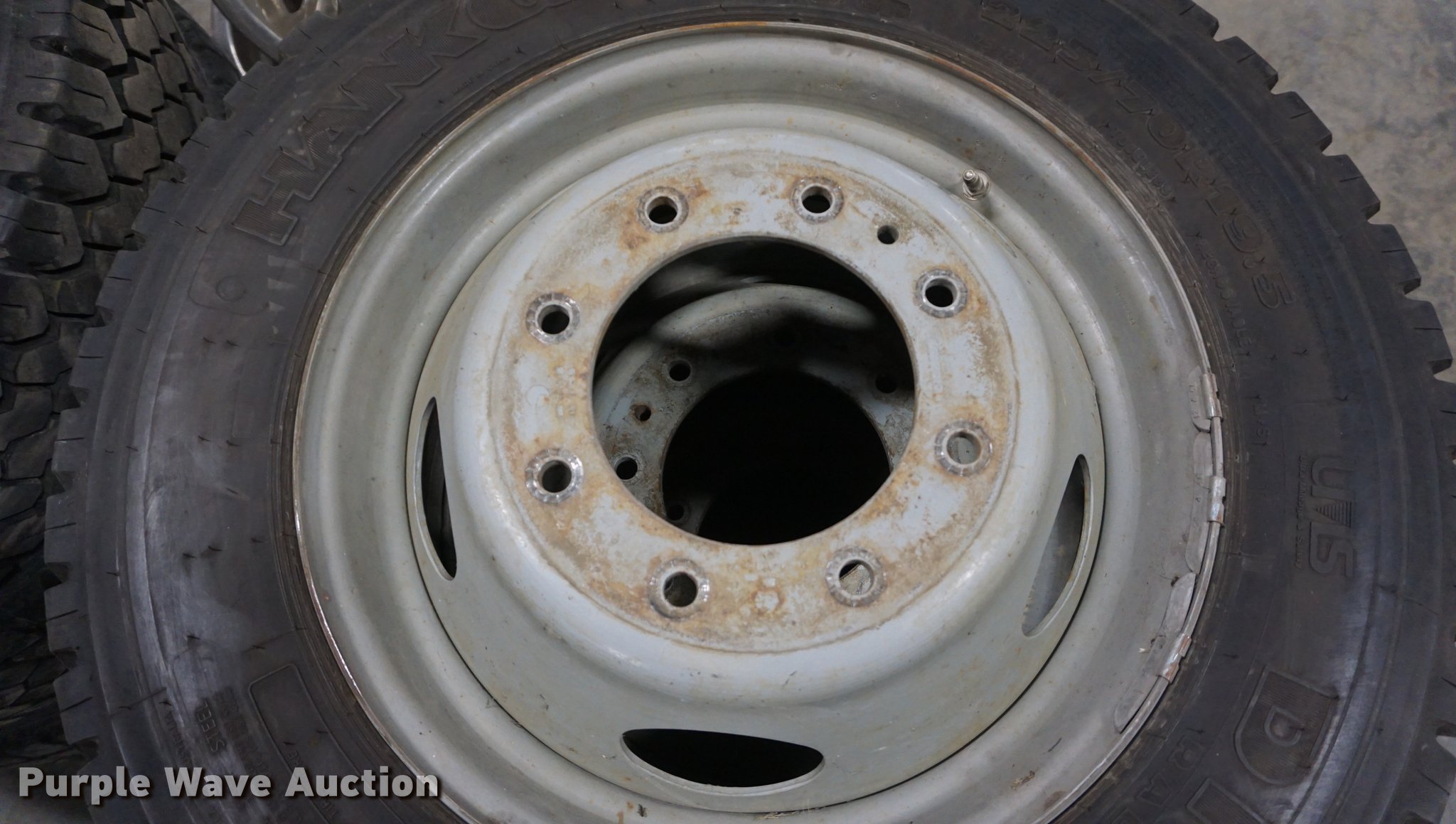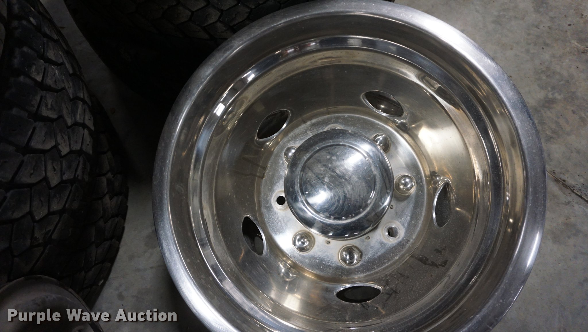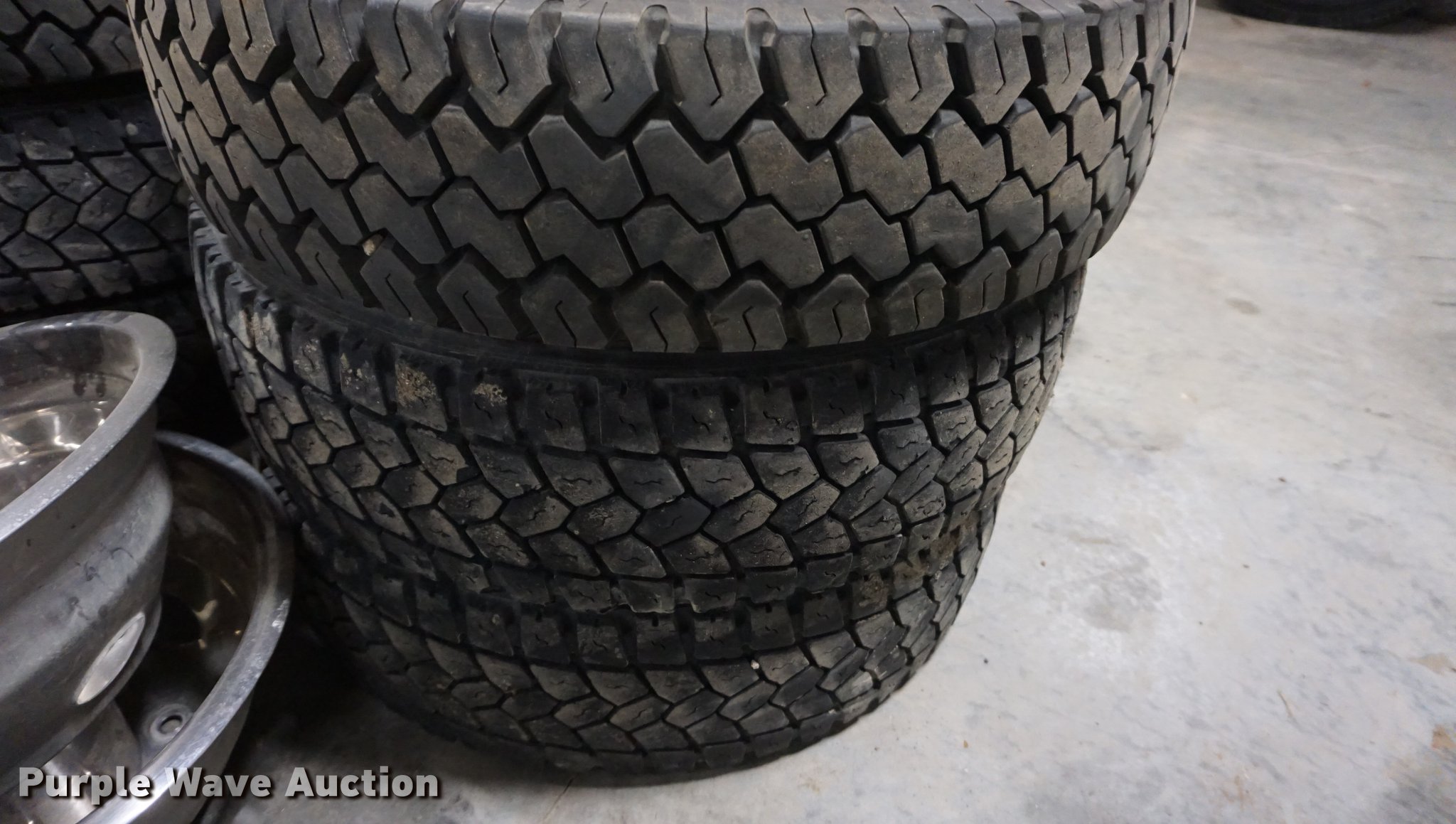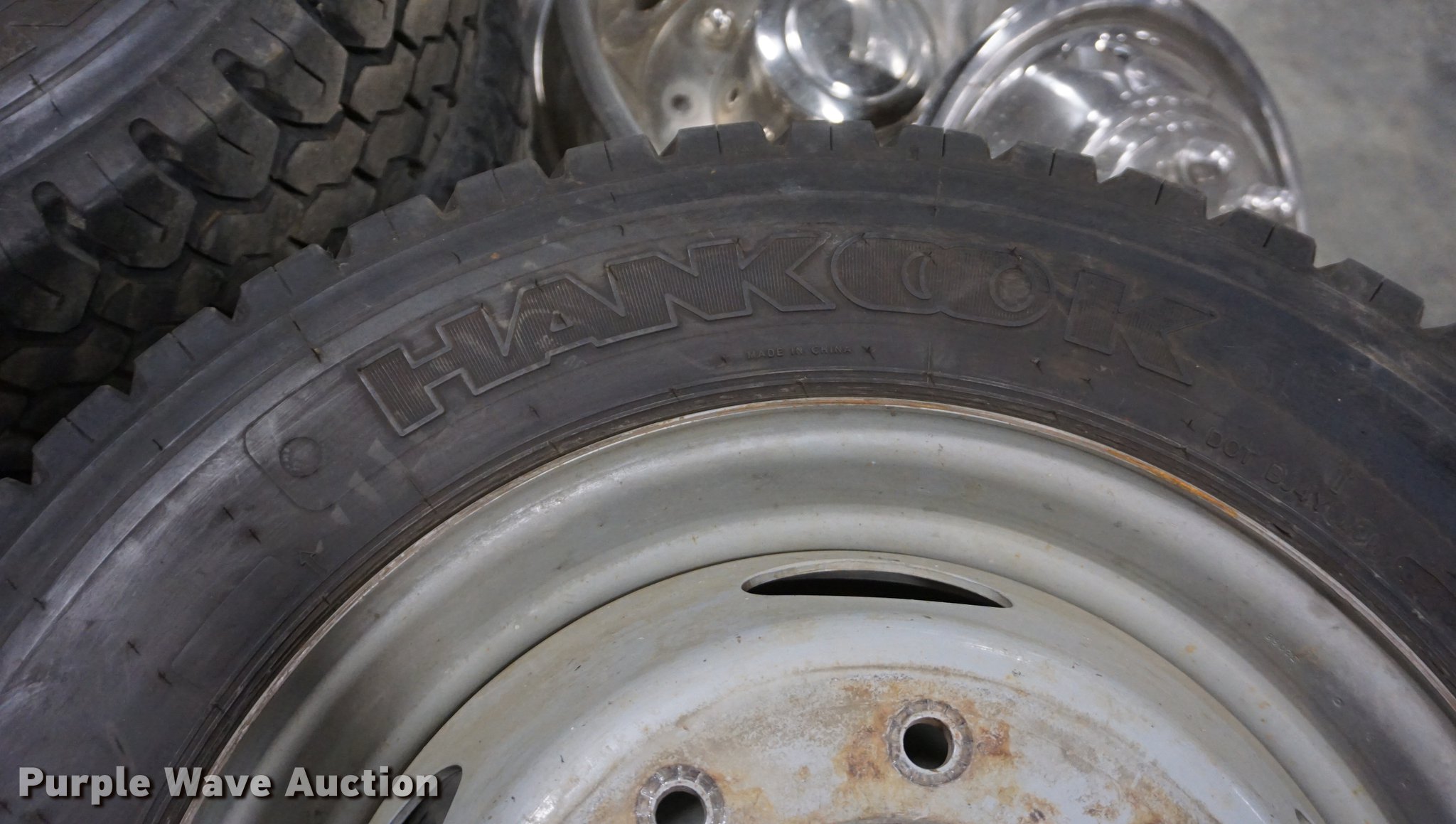 Purple Wave is selling a used Industrial Tires or Tracks in Kansas. This item is a (6) 225/70R19.5 tires and wheels with the following: (2) Hancook, (4) Michelin, Wheel and lug covers