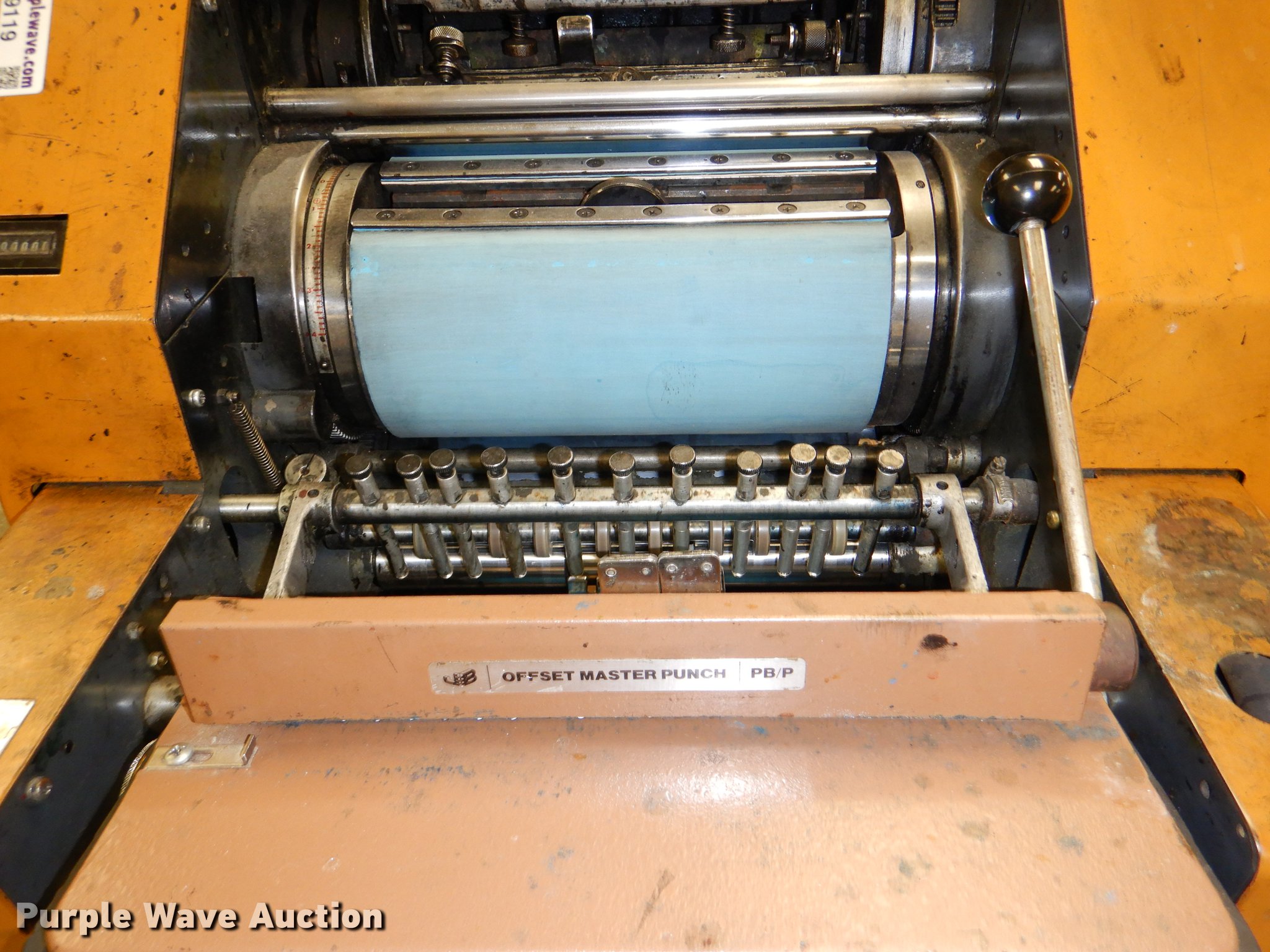 Itek 960 offset duplicator press. Model 111105A-002, PB/P Master Punch, Single phase, Manual, Serial 12678. Kansas City, KS 66109