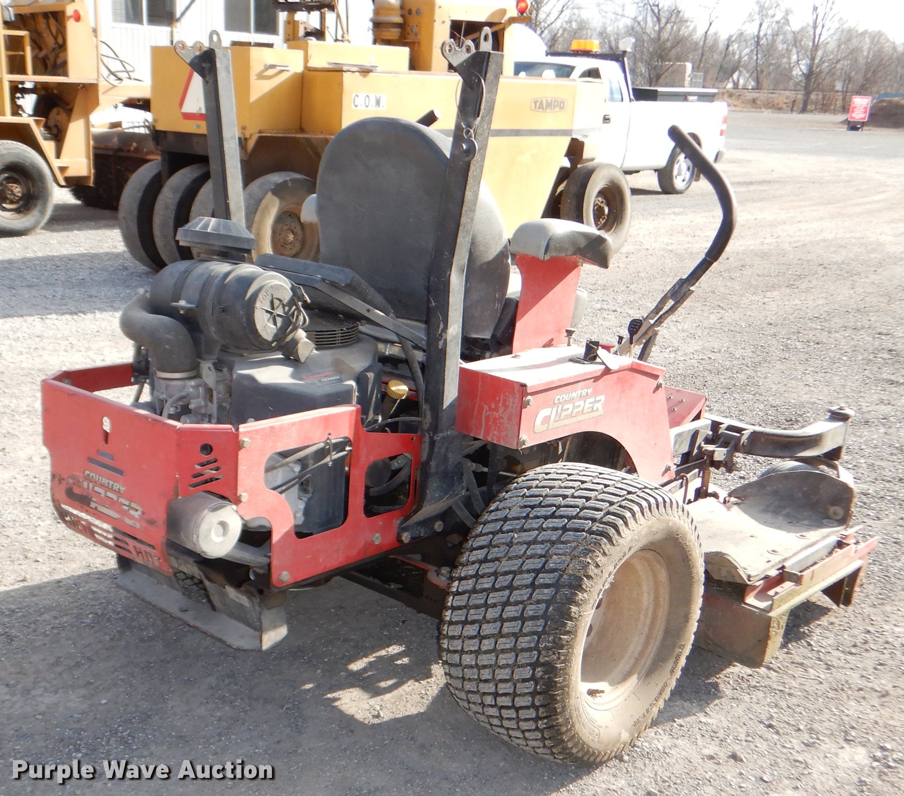 Purple Wave is selling a used Lawn Mower in Kansas. This item is a The Boss Country Clipper ZTR lawn mower with the following: 472 hours on meter, 60" cut, Kawasaki FX1000V 35 HP gas engine, 13x6.50-6 front tires, 24x12.00-12 rear tires, Non-operational clutch, Flat tire