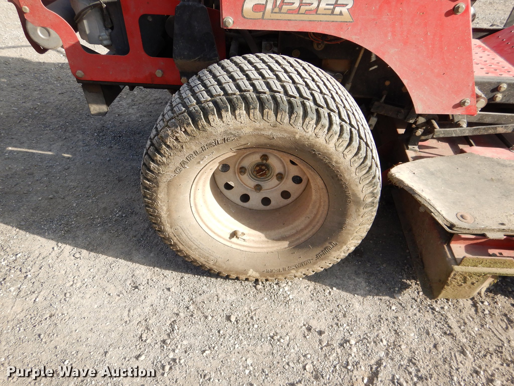 The Boss Country Clipper ZTR lawn mower. 472 hours on meter, 60" cut, Kawasaki FX1000V 35 HP gas engine, 13x6.50-6 front tires, 24x12.00-12 rear tires, Non-operational clutch, Flat tire. Wellsville, KS 66092