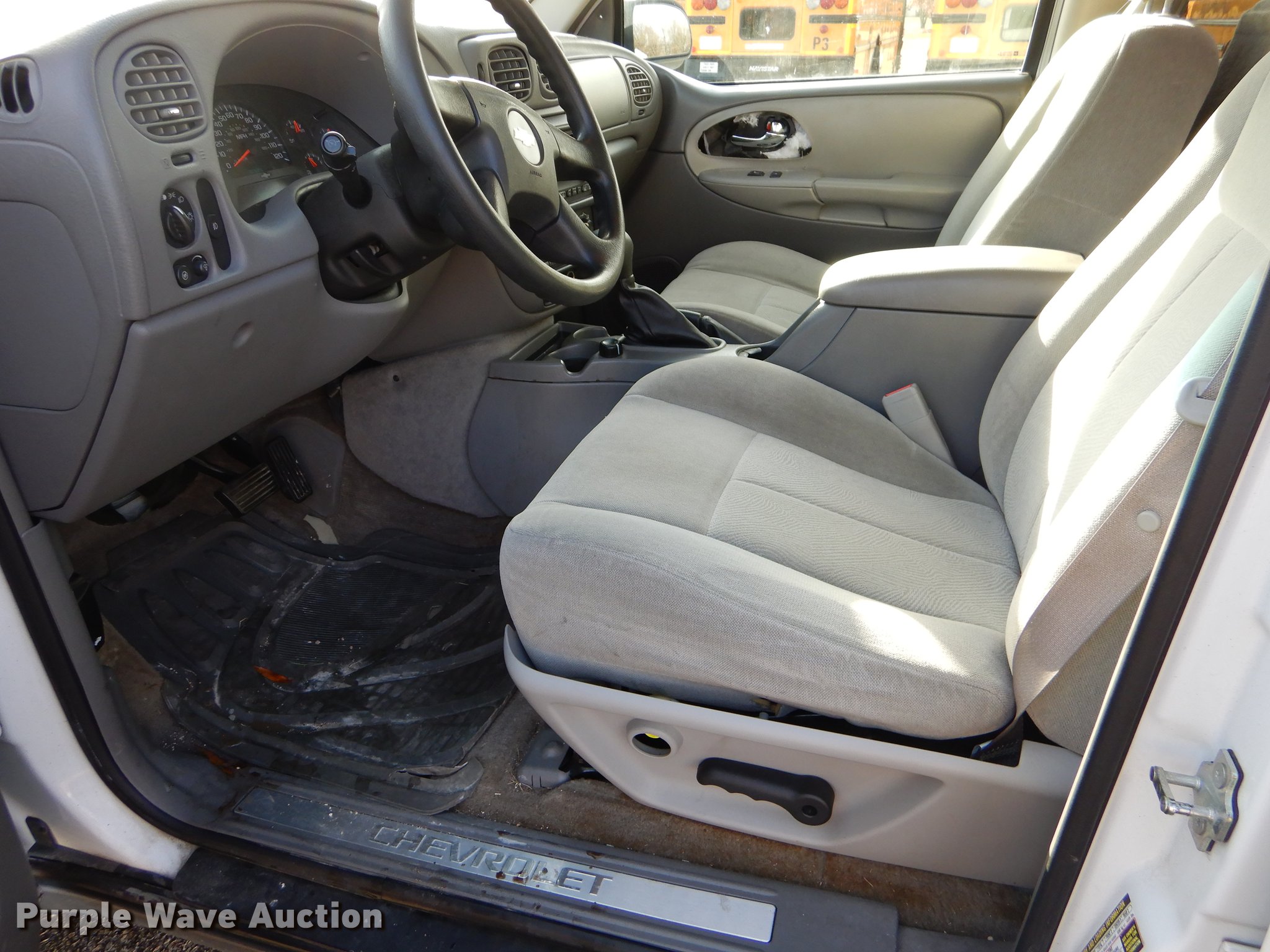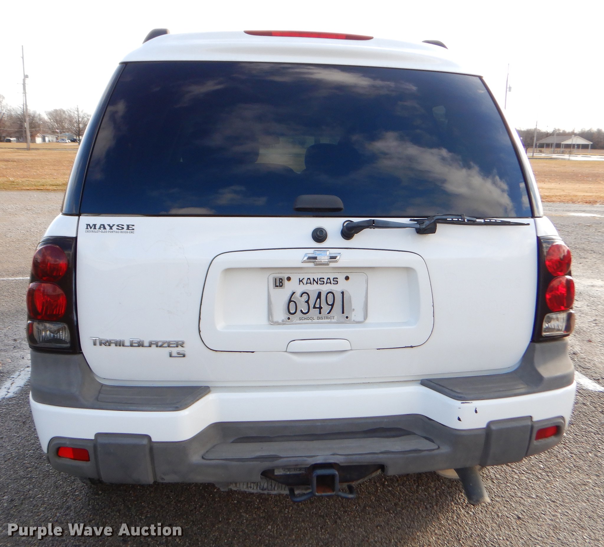 Purple Wave is selling a used Passenger Vehicle in Kansas. This item is a 2005 Chevrolet TrailBlazer LS SUV with the following: 177,784 miles on odometer, 4.2L L6 DOHC 24V gas engine, Automatic transmission, Four wheel drive, AC and heat, Tilt, Cruise, AM/FM/CD, Power windows, locks, and mirrors, Cloth interior, Front tow hooks, Receiver hitch, 245/65R17 tires, Unit# 18