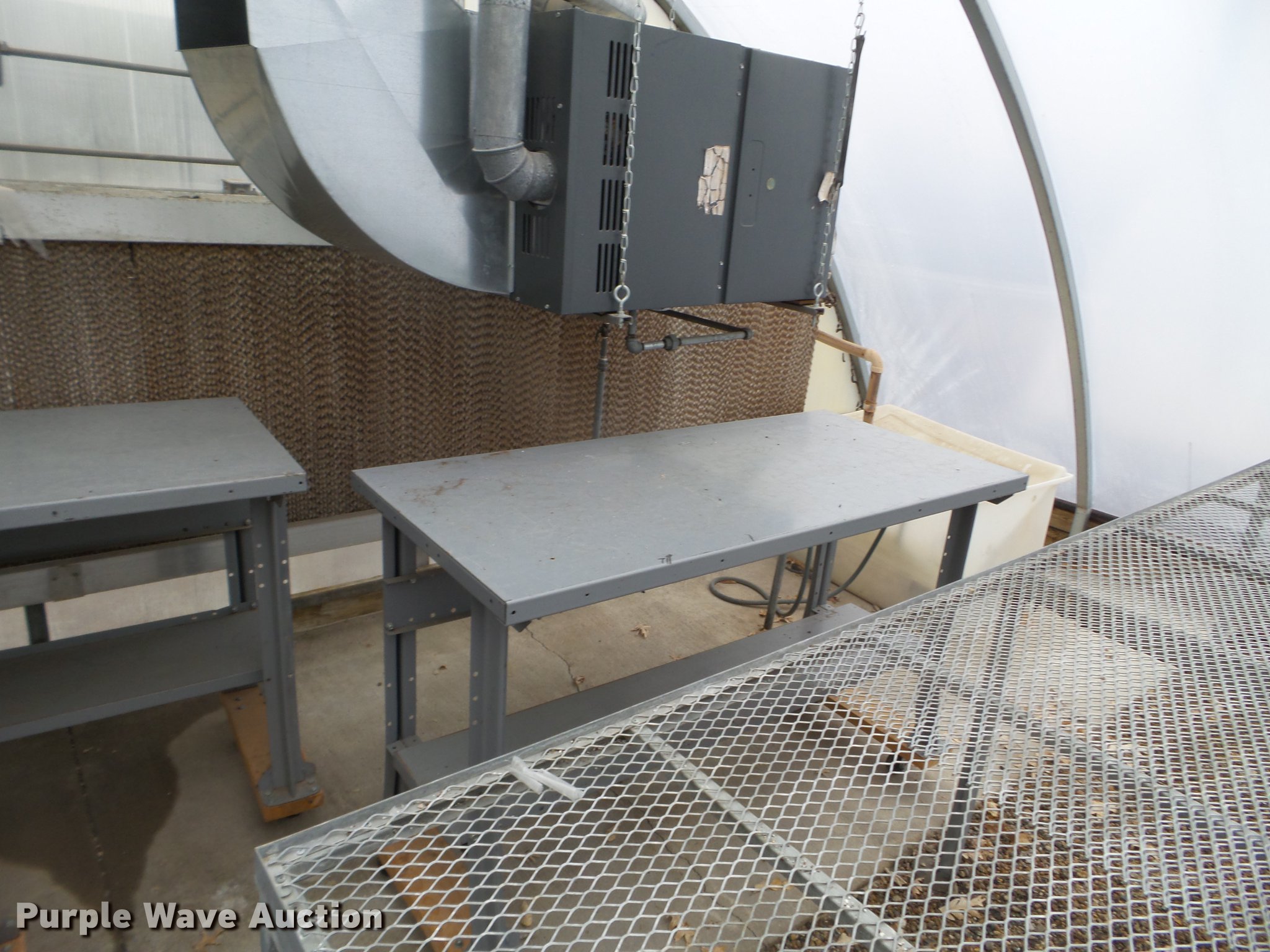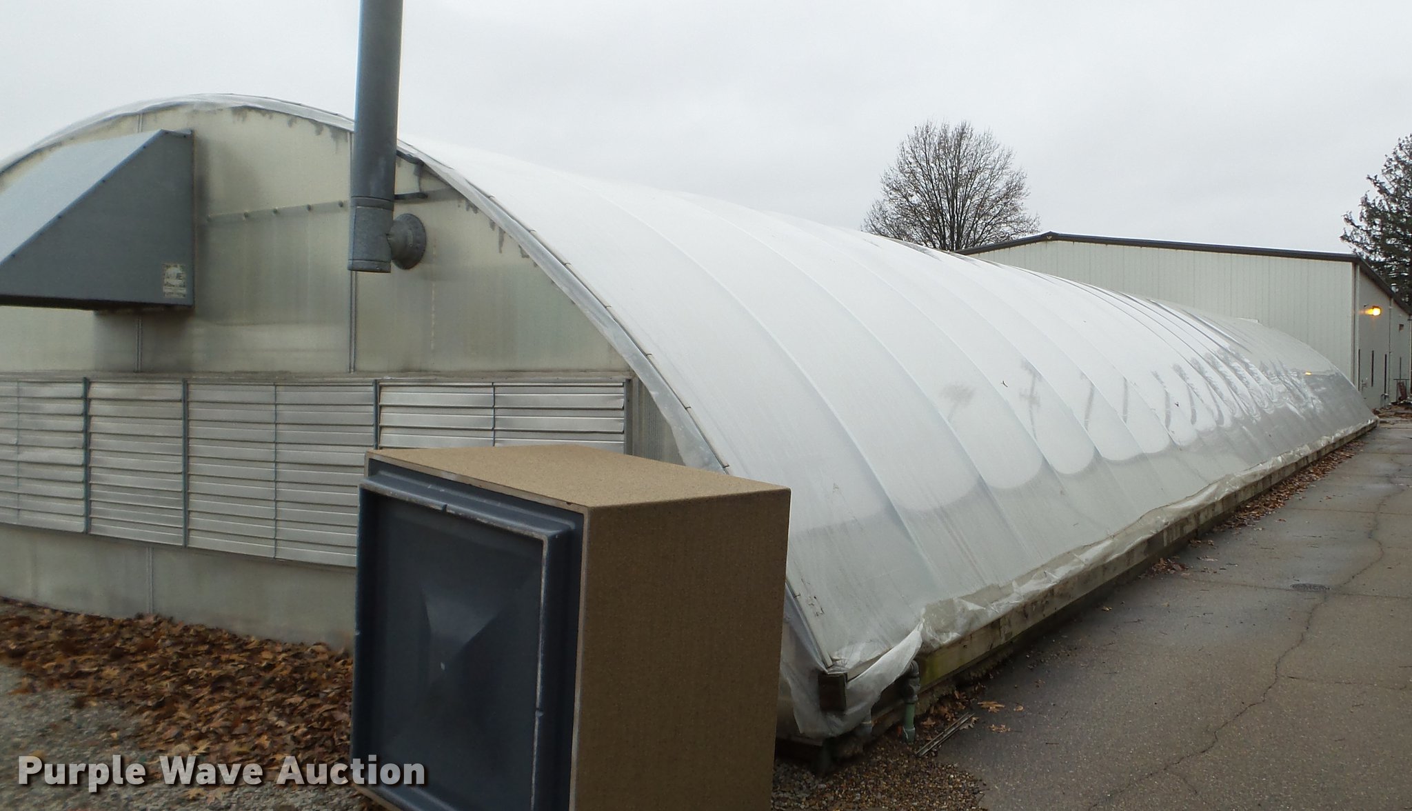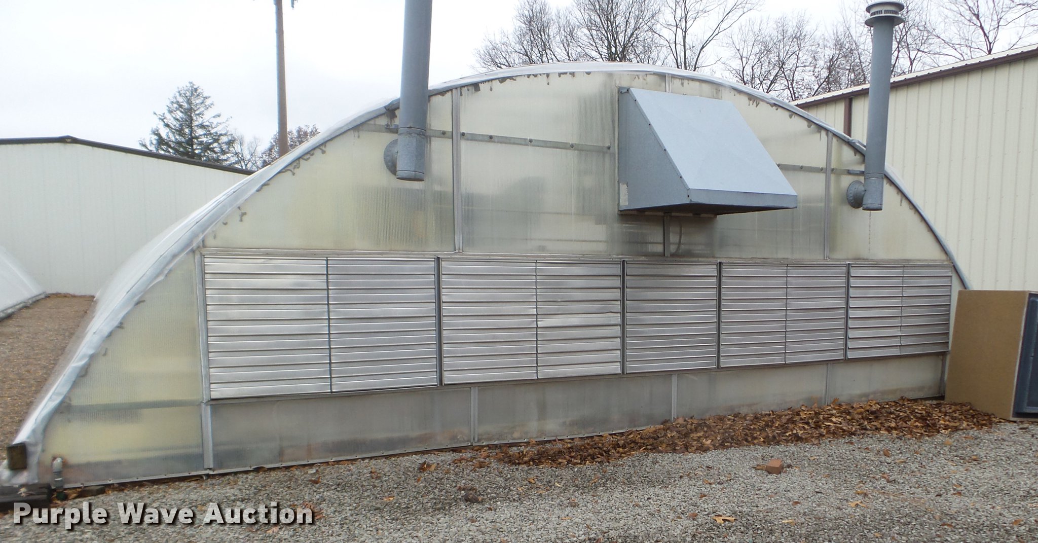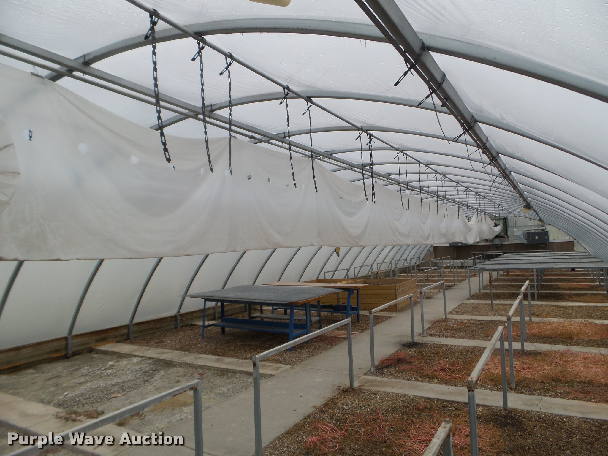 Purple Wave is selling a used Building Materials in Iowa. This item is a Greenhouse with the following: 95'L x 30'W x 9'9"H, Wadsworth control system, Model STEP 50A, (21) tables, 11' x 8' x 35", Fan jet convection tube, Model RC30G, Plant stands not included