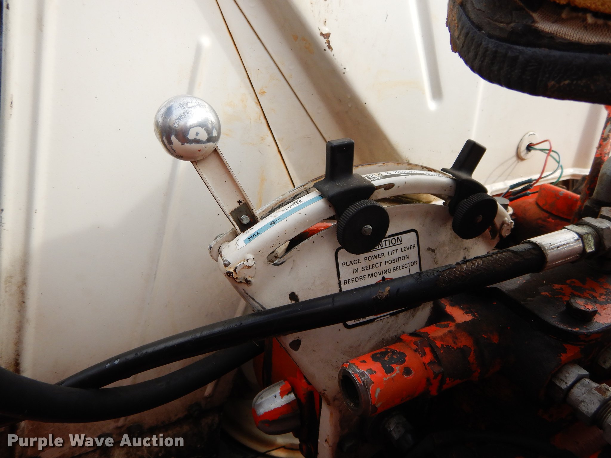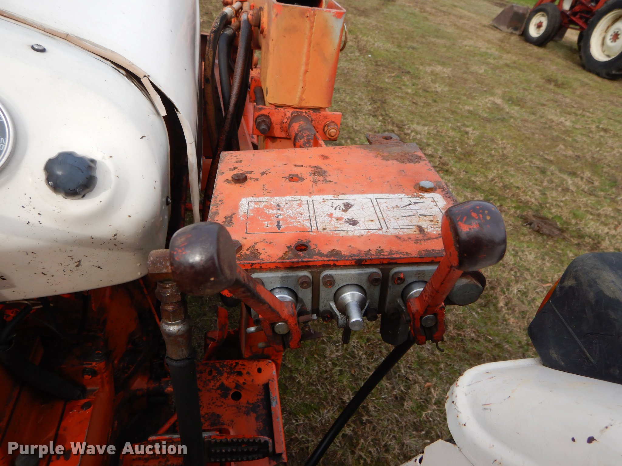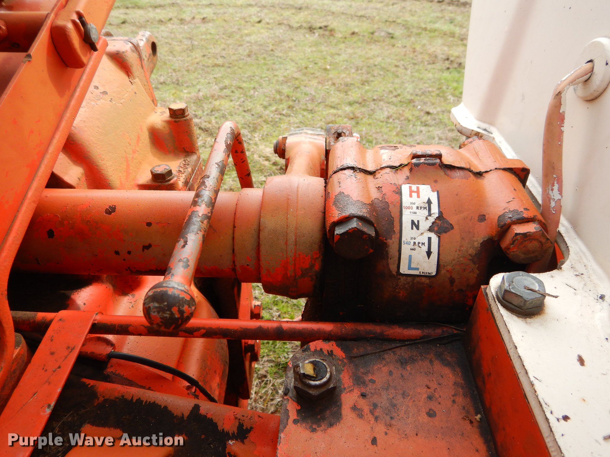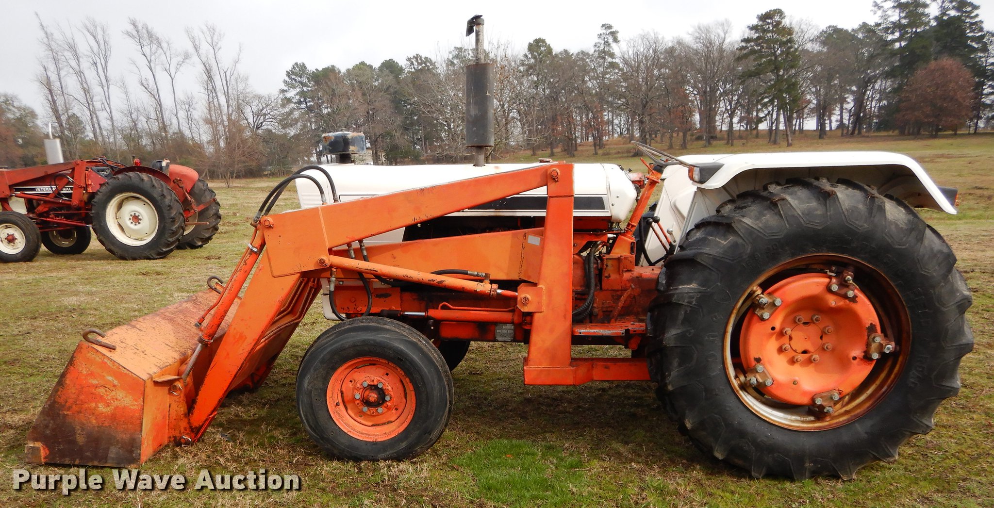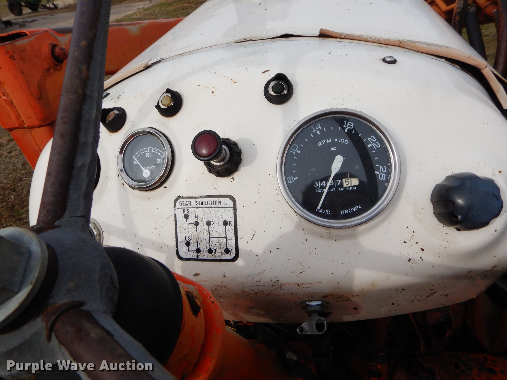 Purple Wave is selling a used Tractor in Texas. This item is a David Brown 995 tractor with the following: 3,438 hours on meter, David Brown four cylinder diesel engine, Serial 45507155059, Manual transmission, 3F-1R gears, Suspension seat, Three point, 540 PTO, Loader, 66"W bucket, Two lever controls, 7.50 x 16 fornt tires, 16.9 x 30 rear tires, Serial 99516984966