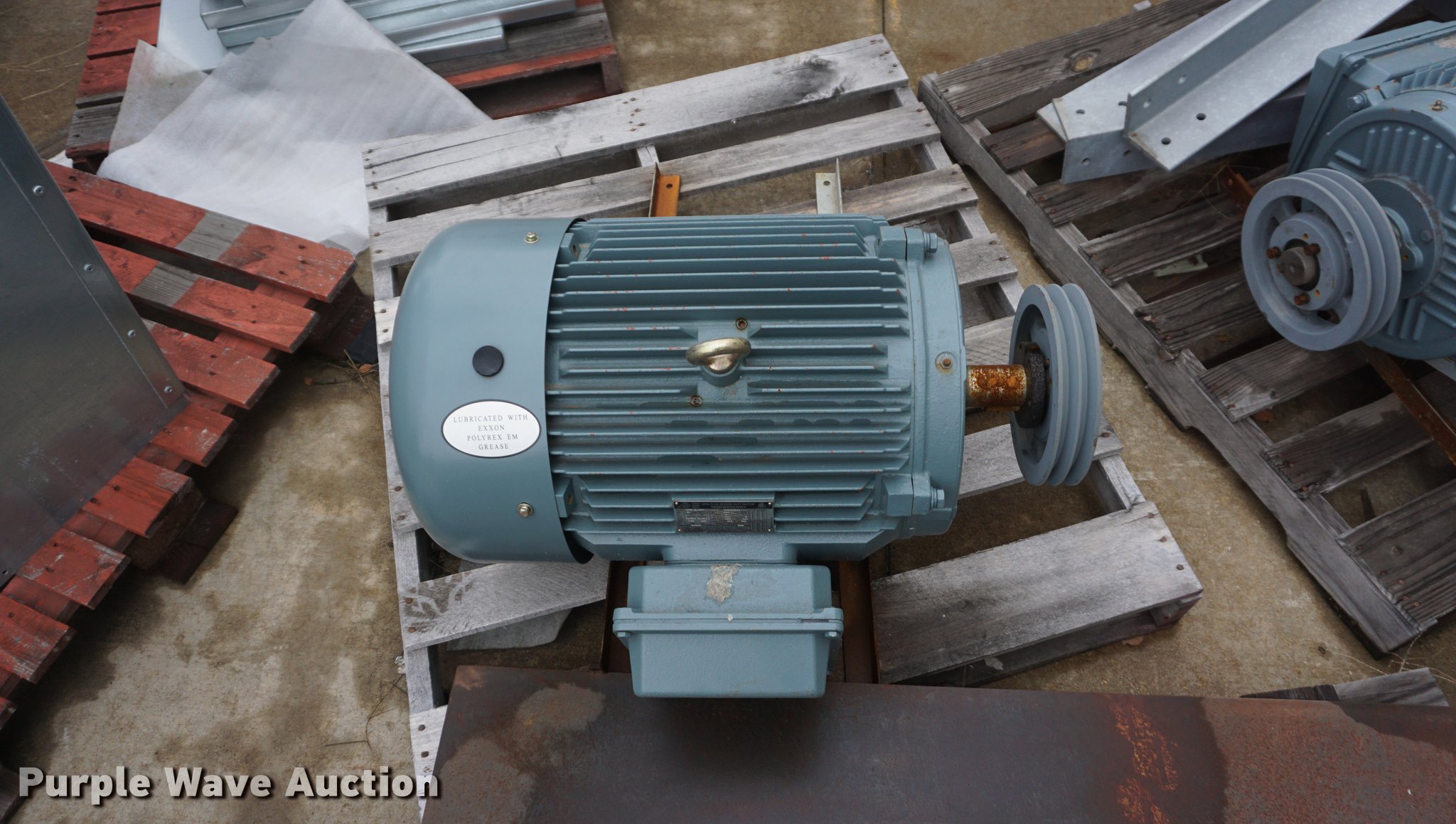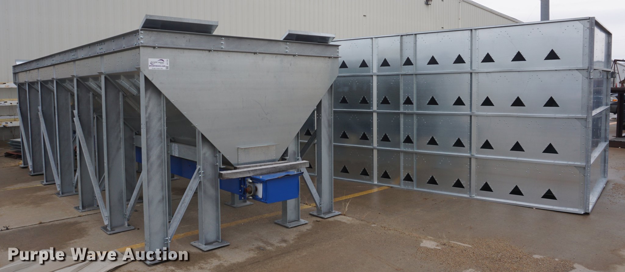 Purple Wave is selling a used Other Grain or Fertilizer Handling in Kansas. This item is a Grain dryer with the following: 24'L x 102"W, Approximately 8'H sections, (2) blower fans, (2) Eprc Plus motors, 25 HP, 30 HP, Ingersoll Rand air compressor, 80 gallon tank, (2) grain tier sections, Top distribution section, Ladder, Platform, No burners included, Unit disassembled, Unused