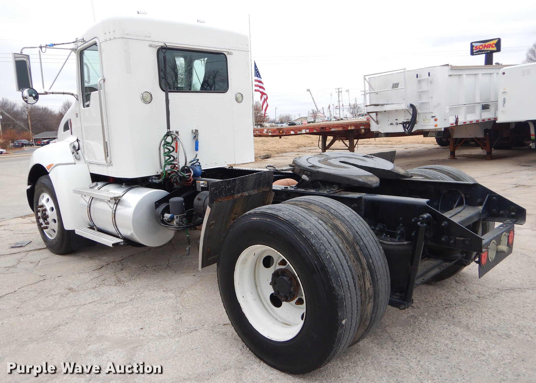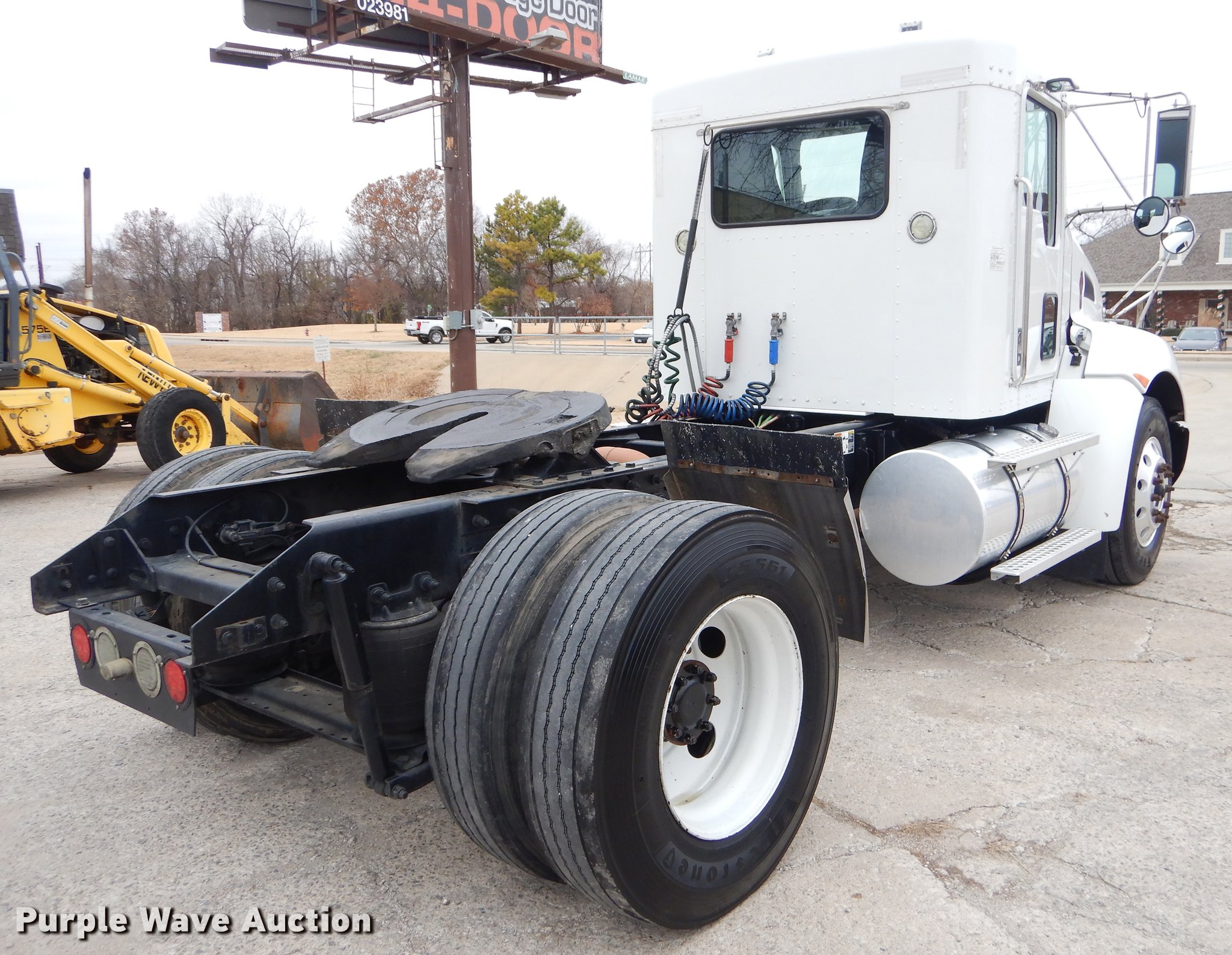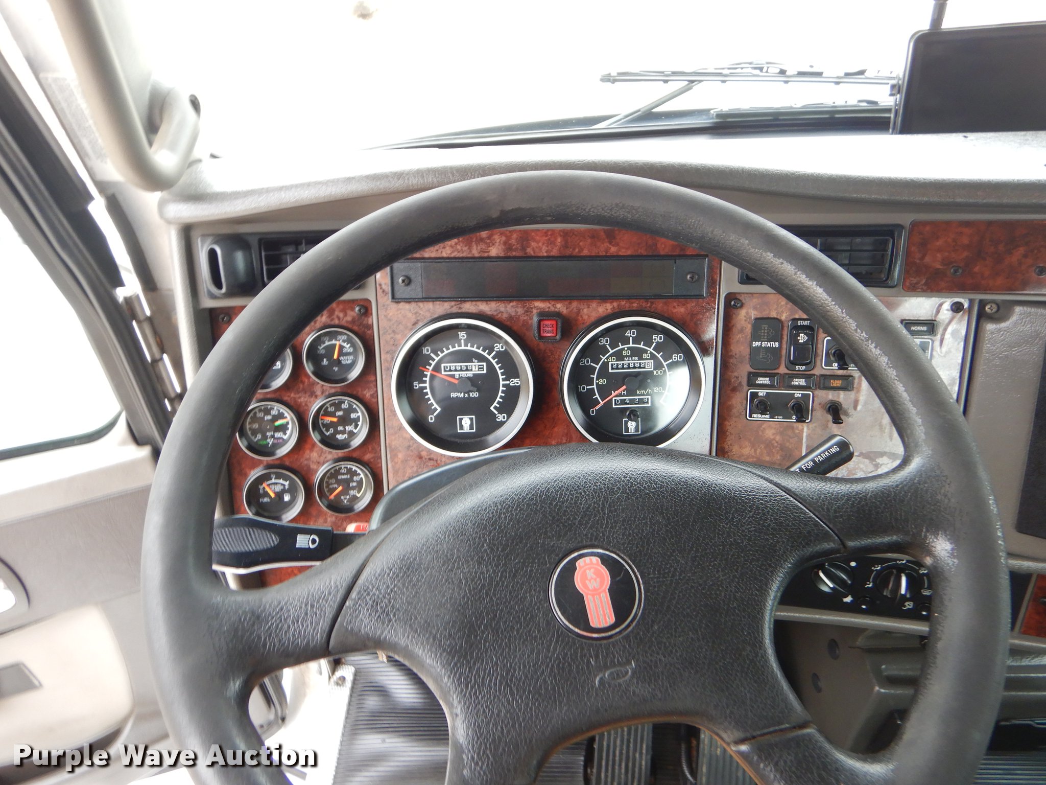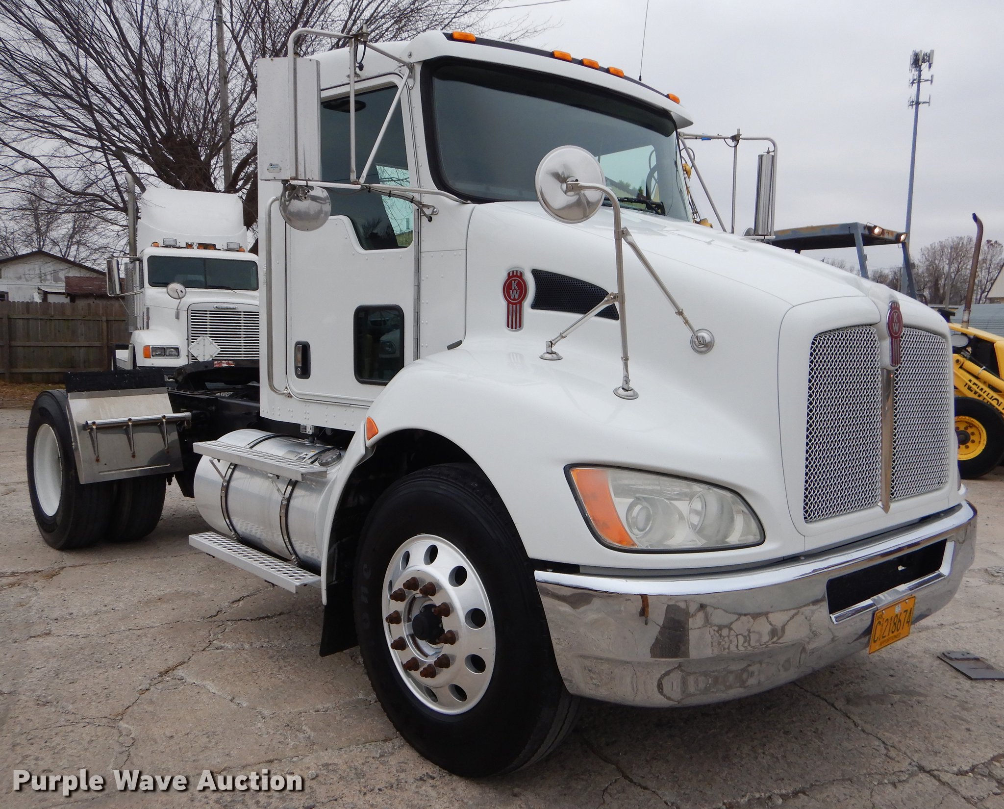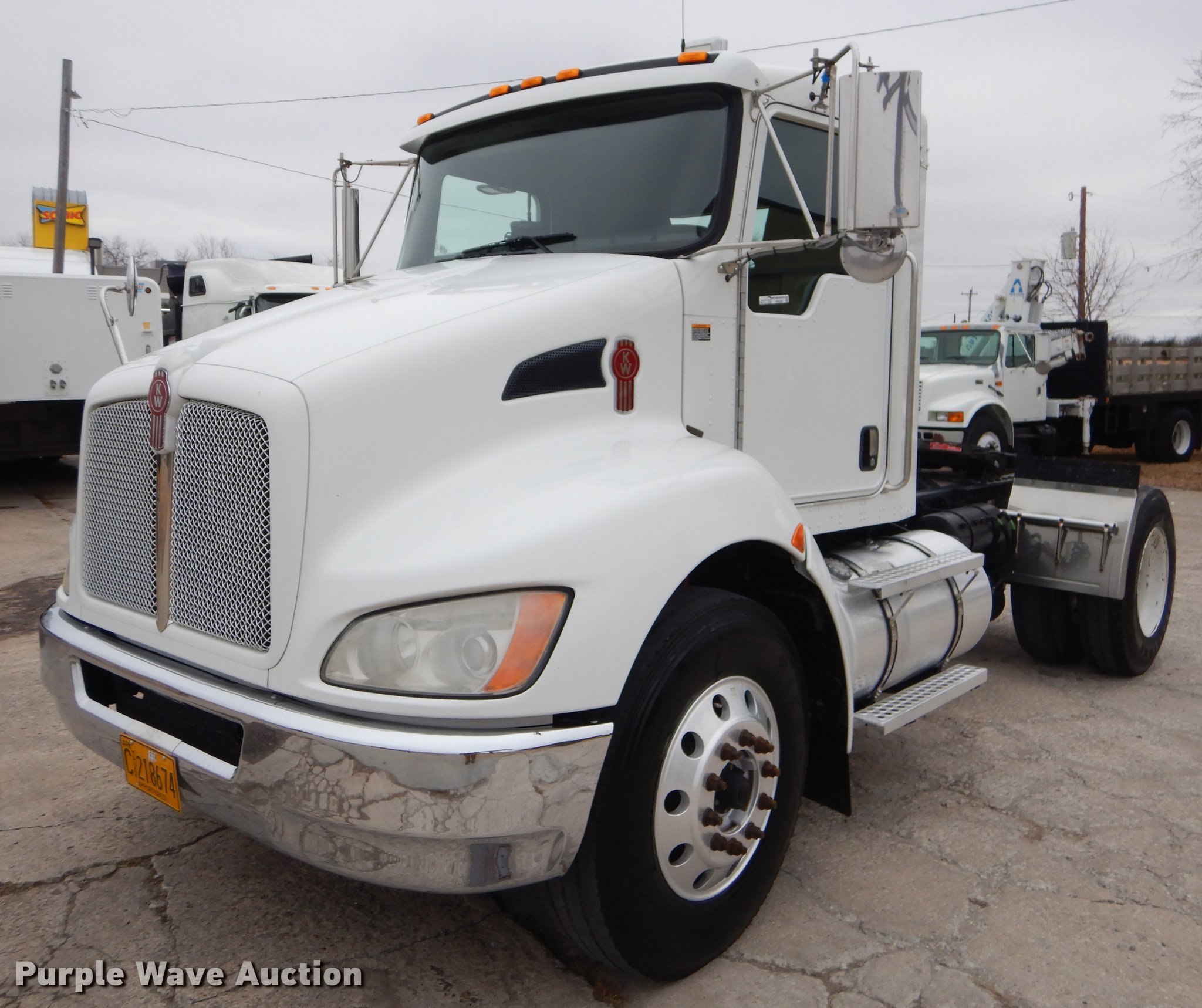 Purple Wave is selling a used Truck Tractor in Oklahoma. This item is a 2009 Kenworth T370 semi truck with the following: 222,882 miles on odometer, 8,657 hours on meter, Paccar PX-8 8.3L L6 turbo diesel engine, Automatic transmission, Single axle, AC and heat, Tilt, Telescoping steering wheel, Cruise, AM/FM/CD, Power windows, locks, and mirrors, Air suspension seat, Block heater, PTO, Exterior visor, Fixed fifth wheel plate, Dual fuel tanks, Stainless steel quarter fenders, Air suspension, Air brakes, Engine brake, 152" wheelbase, 11R22.5 tires, GVWR 35,000 lbs, Chipped windshield