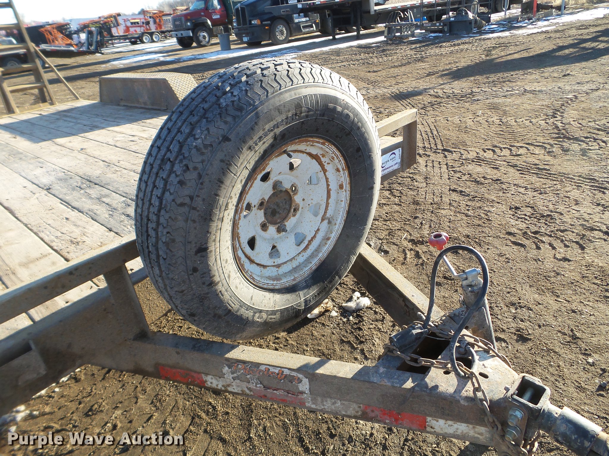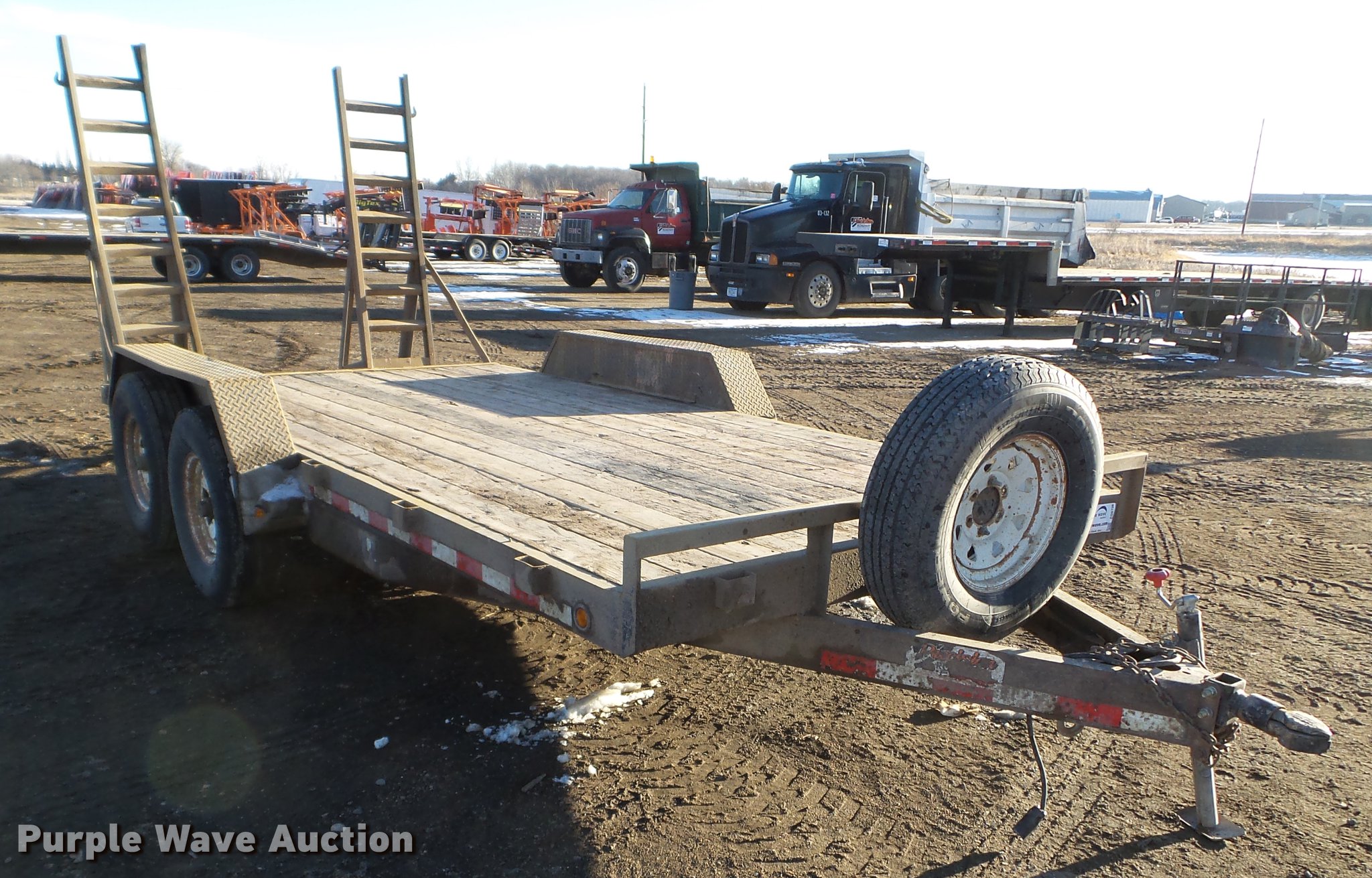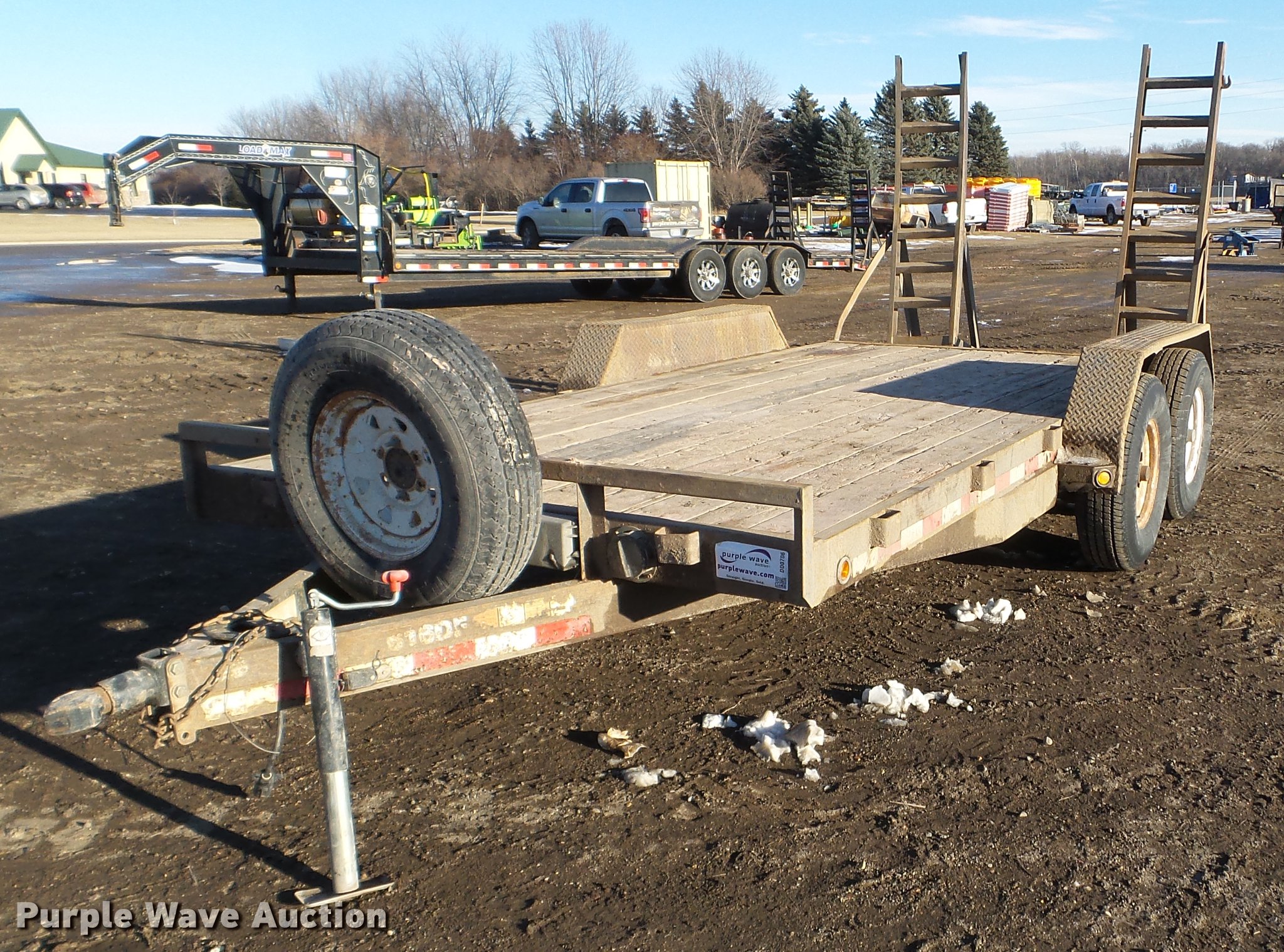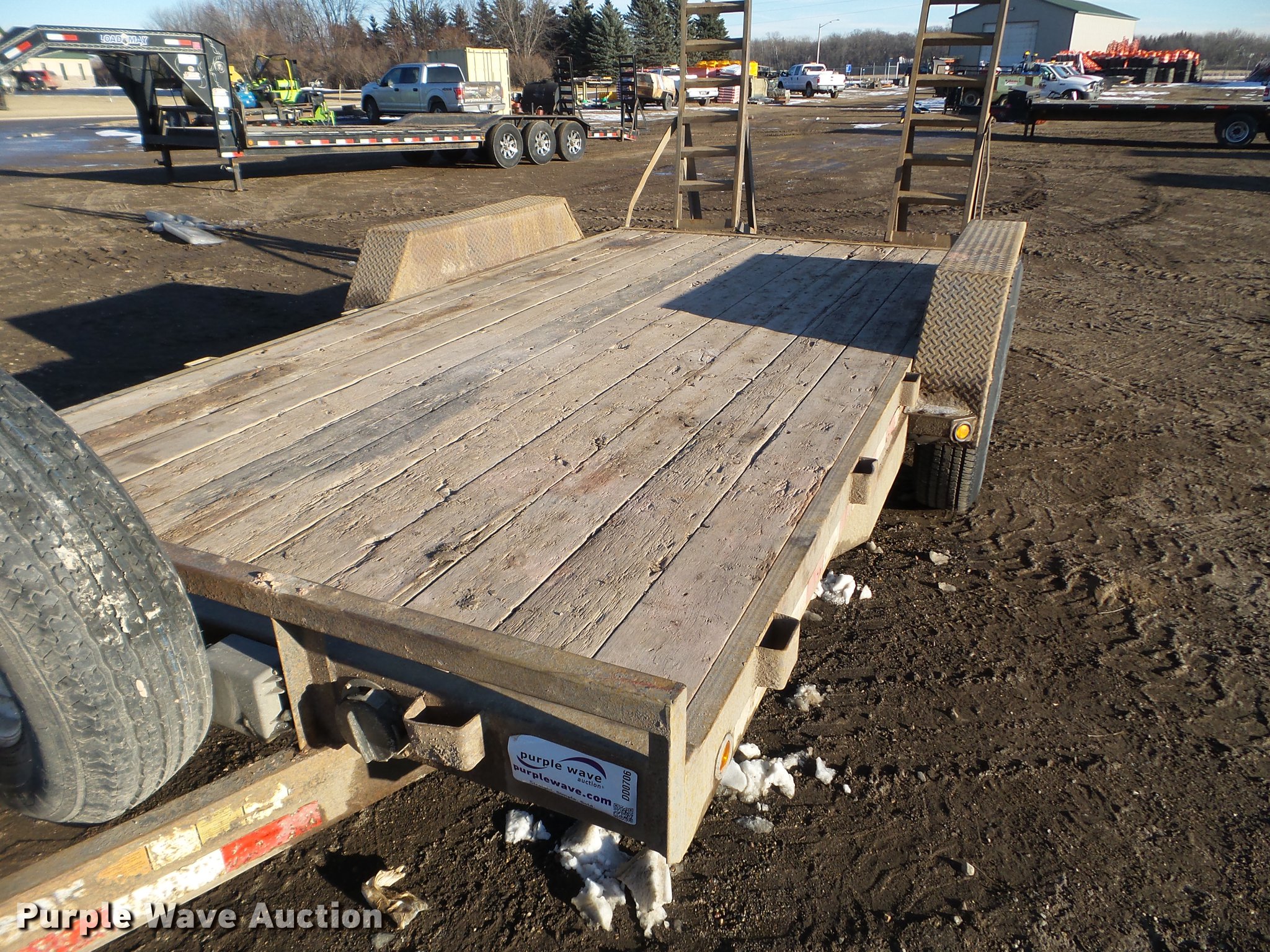 Purple Wave is selling a used Car or Utility Trailer in Minnesota. This item is a 2003 PJ utility trailer with the following: 20' overall length, 14'L x 83"W wood deck, 36" floor height, 24"L dovetail, 6'L ramps, Wood deck, Stake side pockets, 2 5/16" ball hitch, Jack stand, Spring suspension, Electric brakes, Tandem axle, Steel wheels, 235/85R16 tires