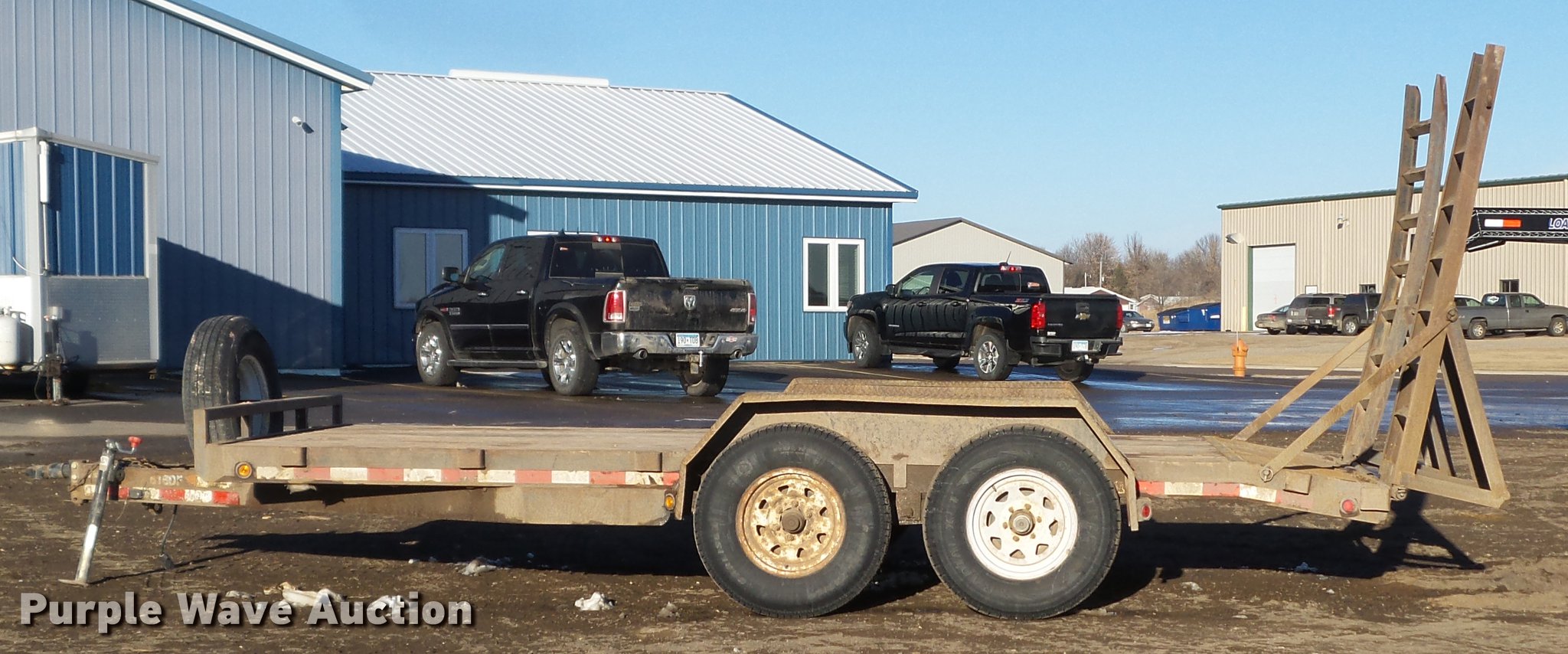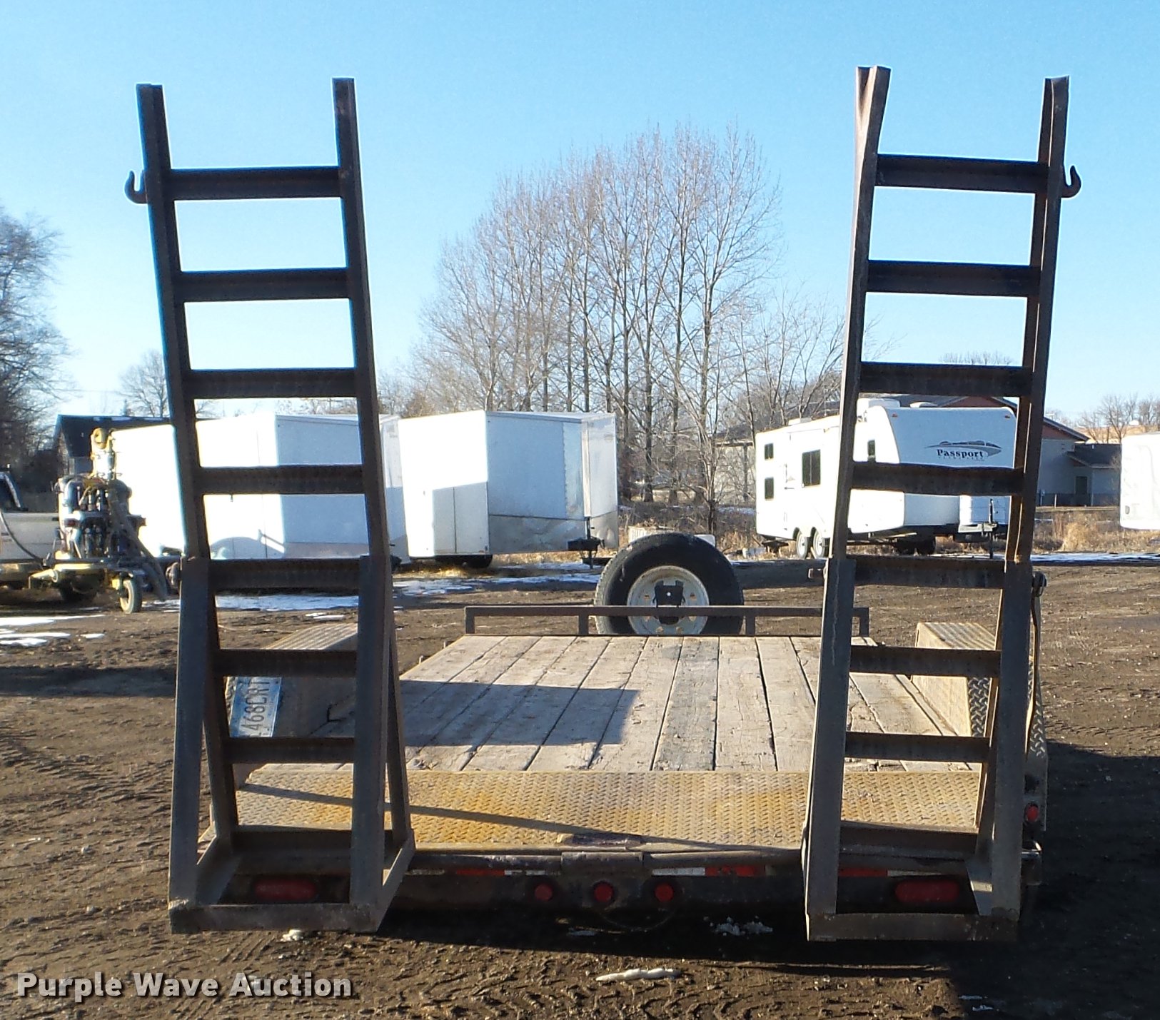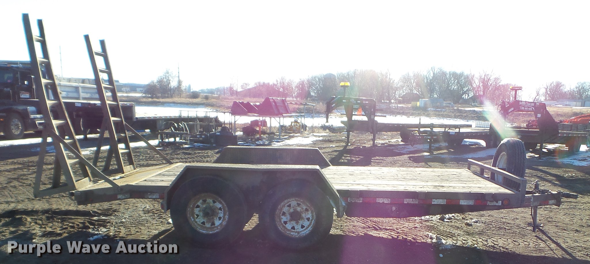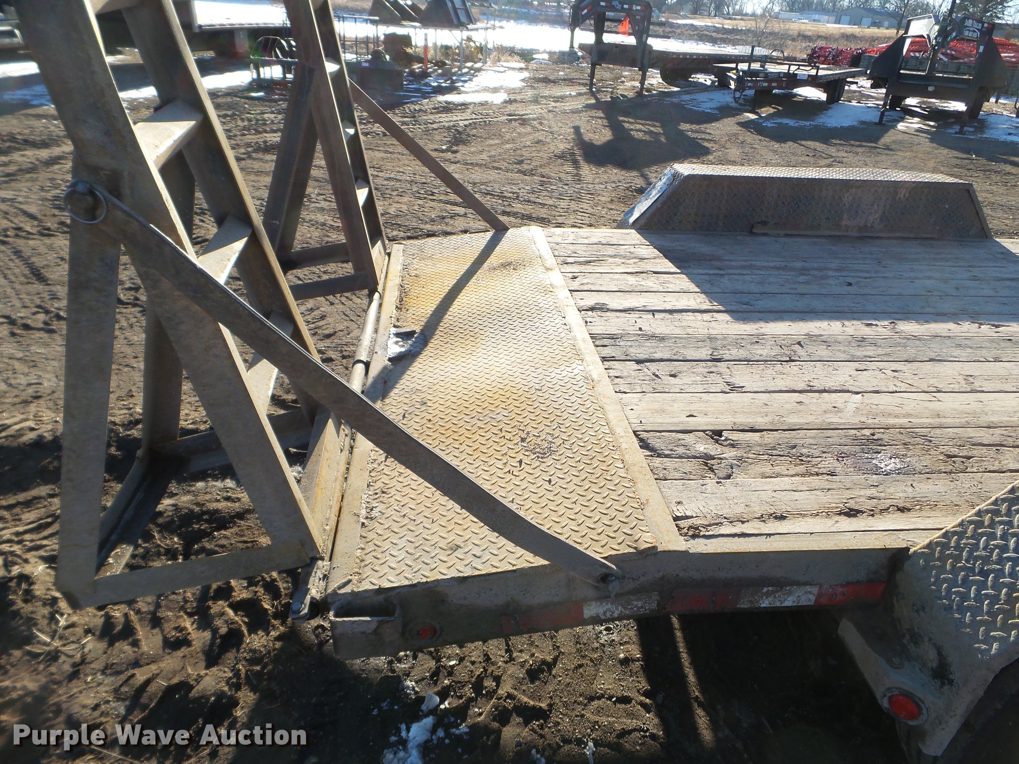Purple Wave is selling a used Car or Utility Trailer in Minnesota. This item is a 2003 PJ utility trailer with the following: 20' overall length, 14'L x 83"W wood deck, 36" floor height, 24"L dovetail, 6'L ramps, Wood deck, Stake side pockets, 2 5/16" ball hitch, Jack stand, Spring suspension, Electric brakes, Tandem axle, Steel wheels, 235/85R16 tires