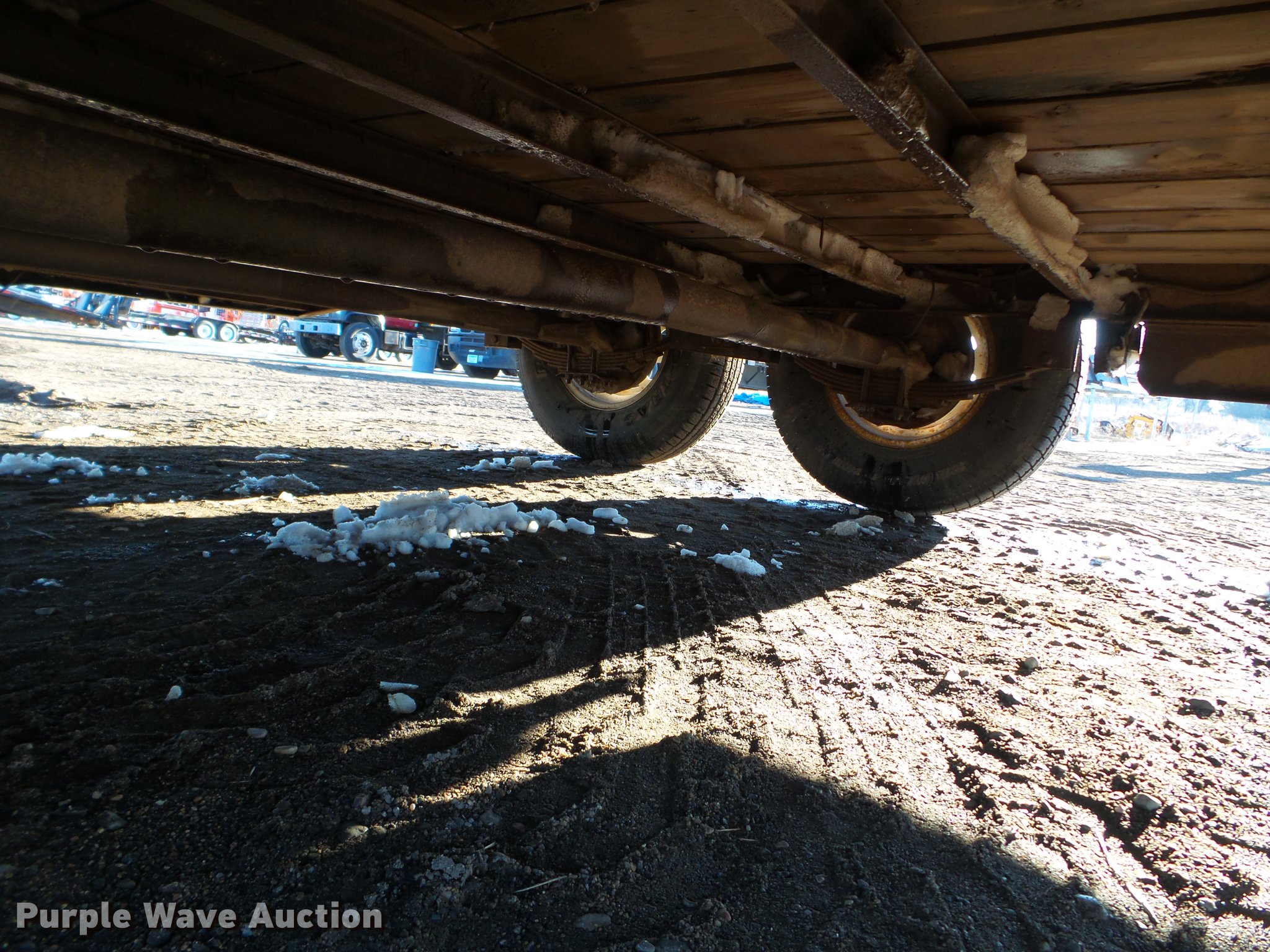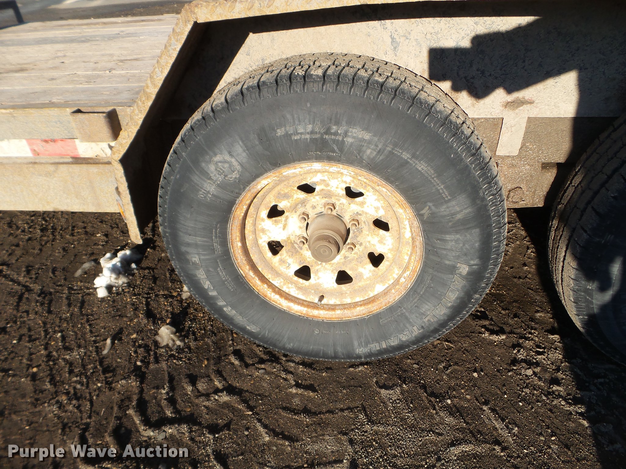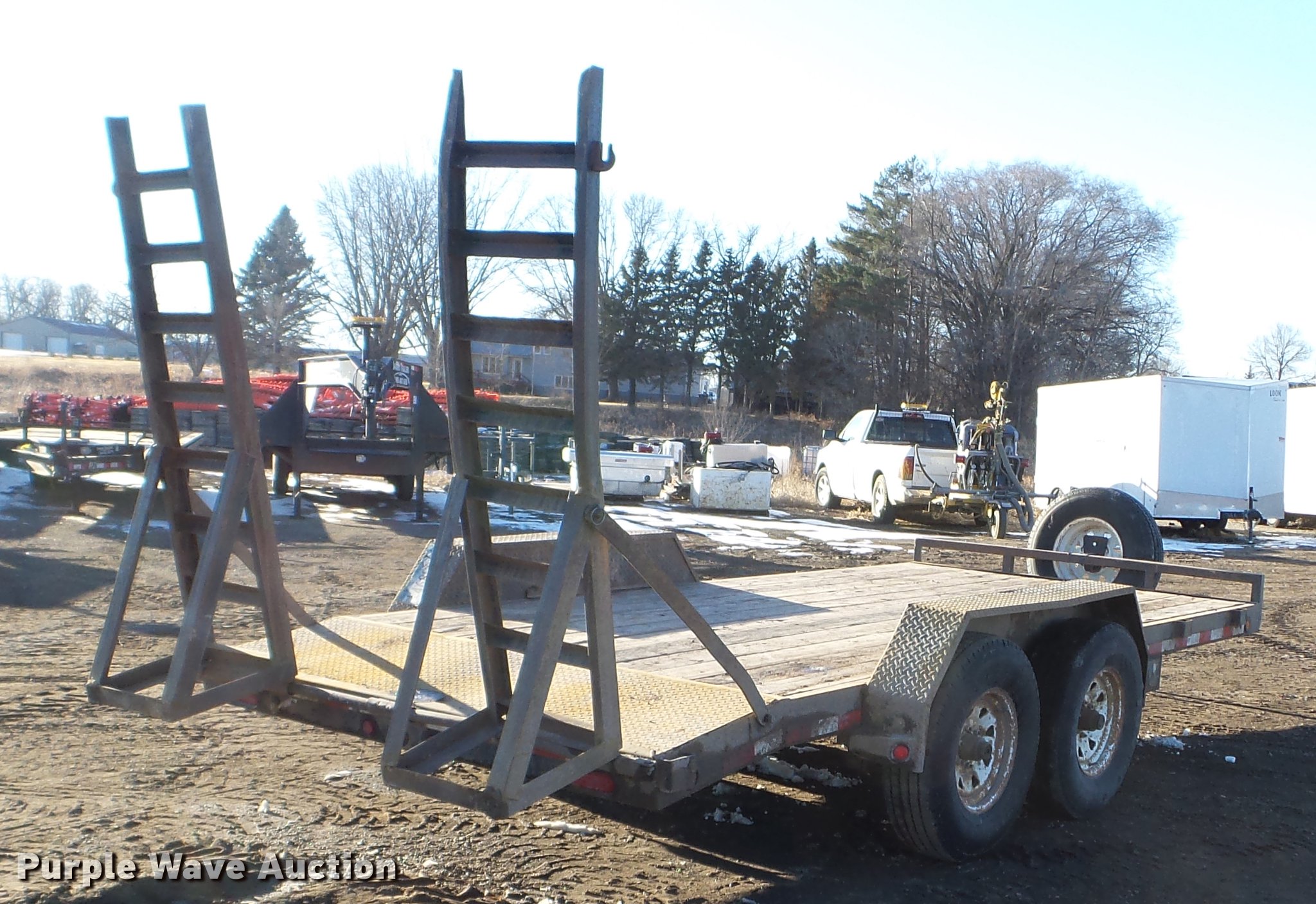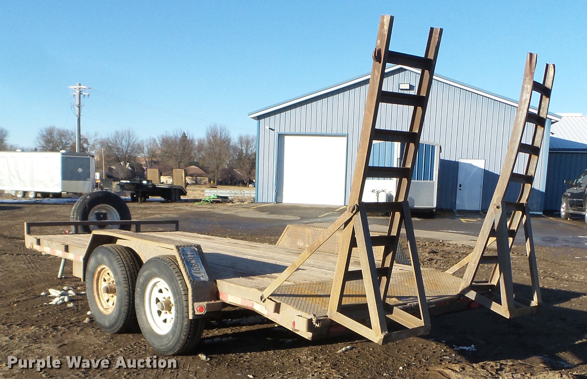 Purple Wave is selling a used Car or Utility Trailer in Minnesota. This item is a 2003 PJ utility trailer with the following: 20' overall length, 14'L x 83"W wood deck, 36" floor height, 24"L dovetail, 6'L ramps, Wood deck, Stake side pockets, 2 5/16" ball hitch, Jack stand, Spring suspension, Electric brakes, Tandem axle, Steel wheels, 235/85R16 tires