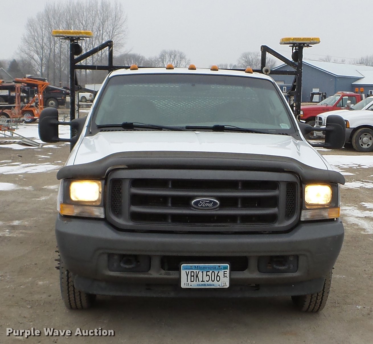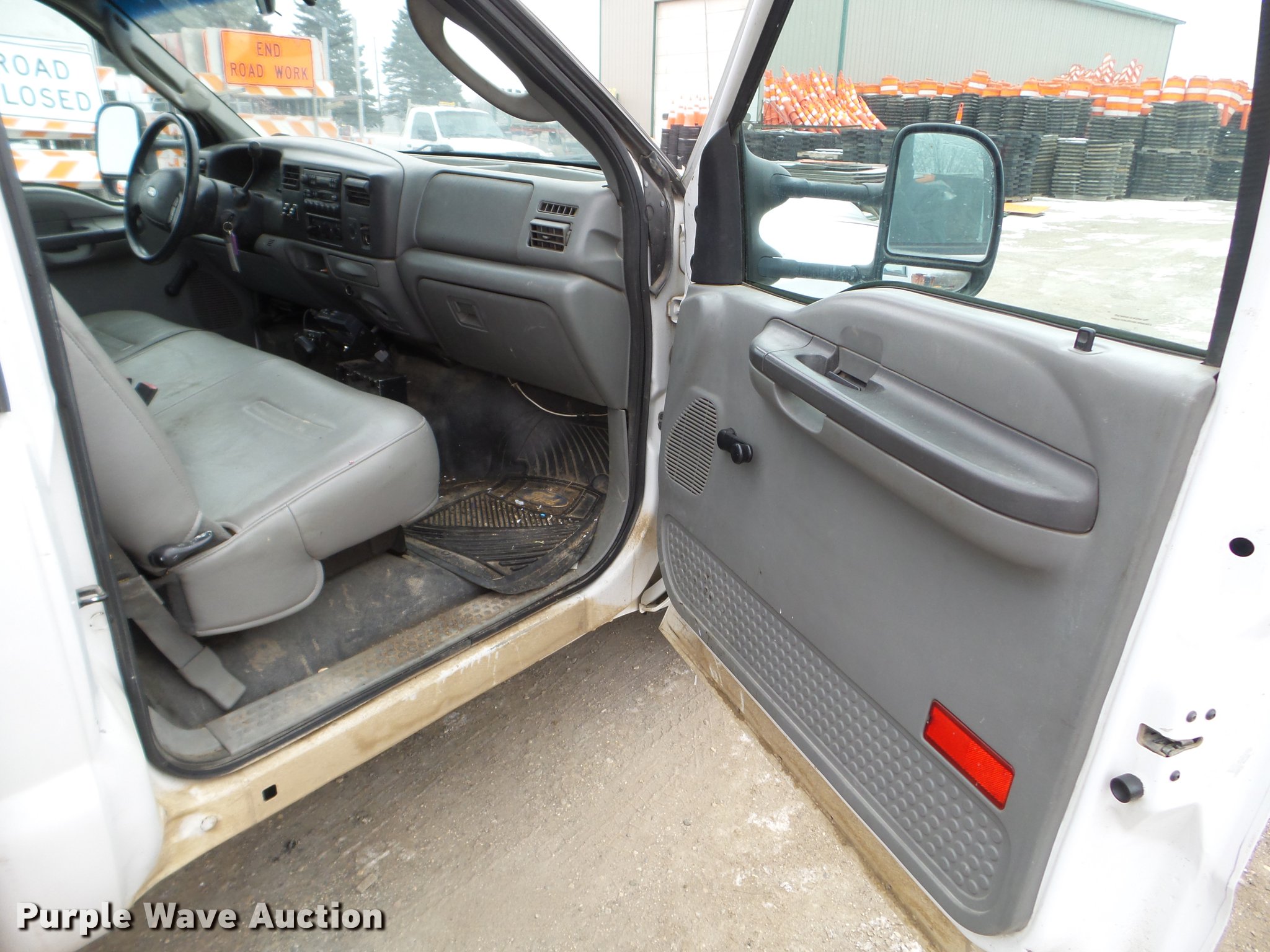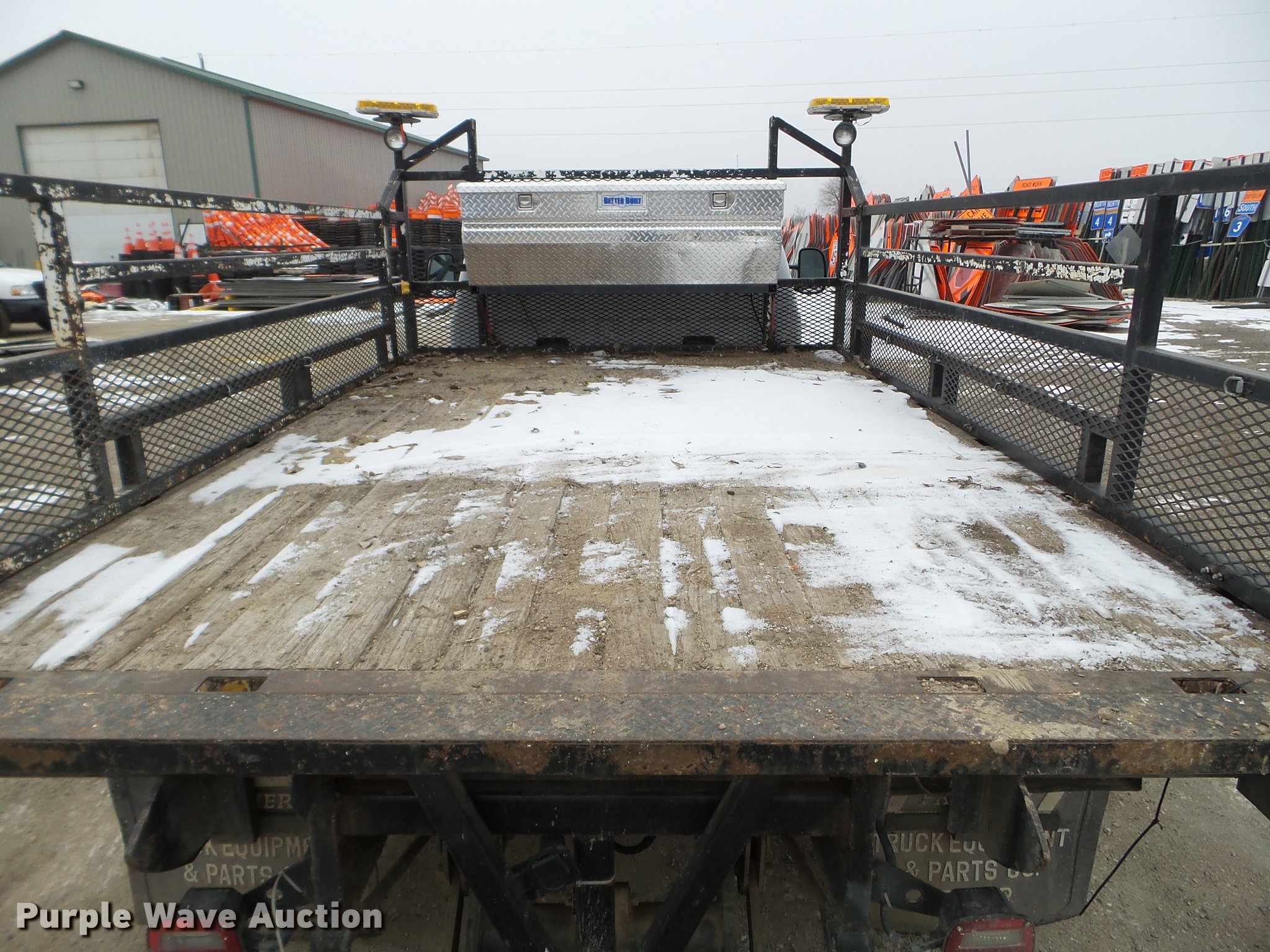 2004 Ford F350 Super Duty flatbed pickup truck. 109,200 miles on odometer, 6.0L V8 OHV 32V turbo diesel engine, Automatic transmission, AC and heat, Tilt, Cruise, Vinyl interior, Front tow hook, 12.5'L x 94"W flatbed 30" side height, Walco 90"W end gate lift, 215/85R16 tires, Unit# 03-113. Minnesota title. Title has a lien that will be released following the close of the auction. Title distribution may be delayed up to 30 days from verification of funds. 1FDWF36P44EC86714. Precision Roadway Services. 602 3rd Ave E. Osakis, MN 56360