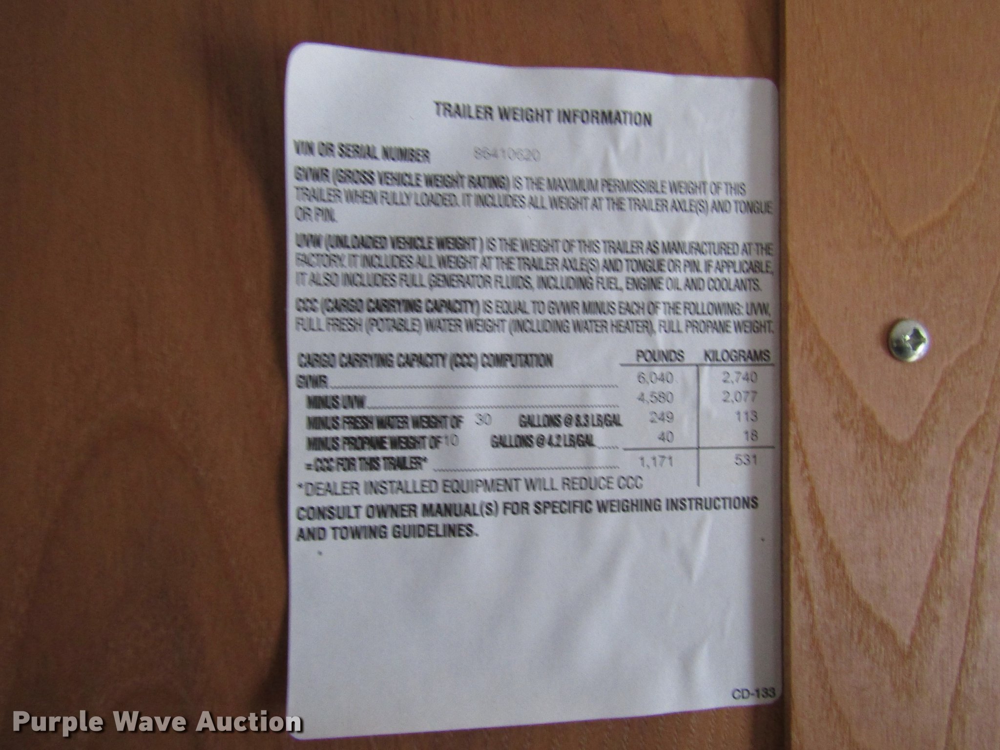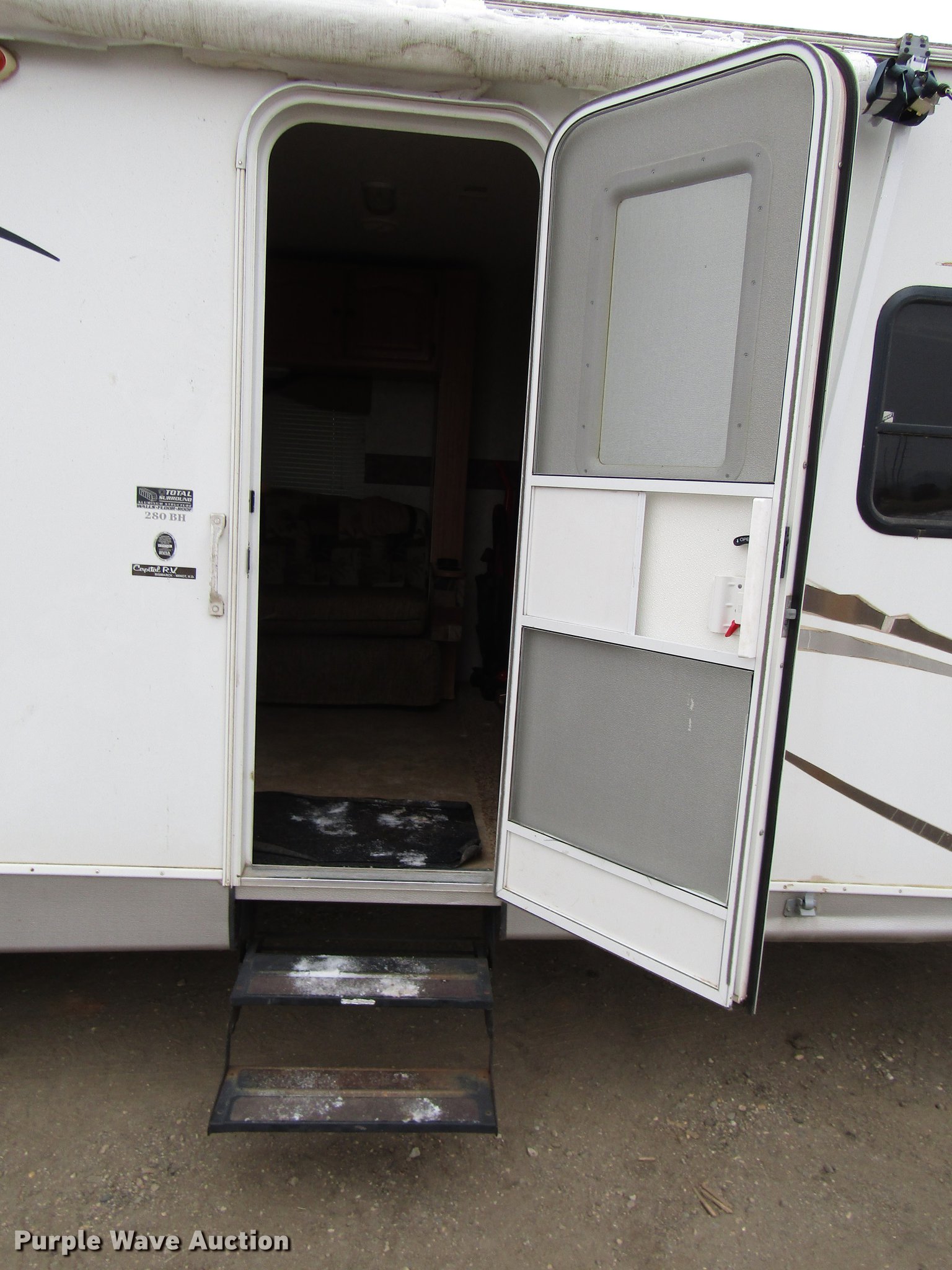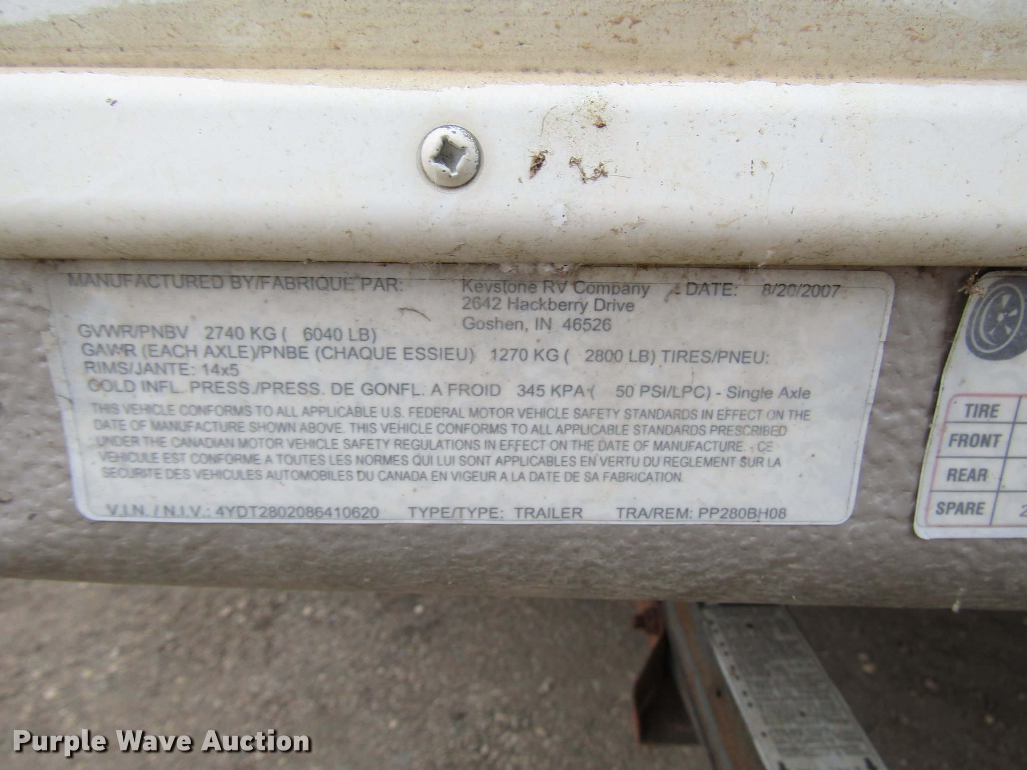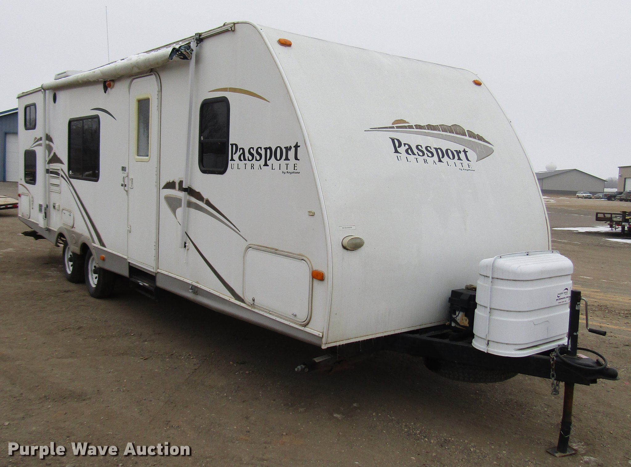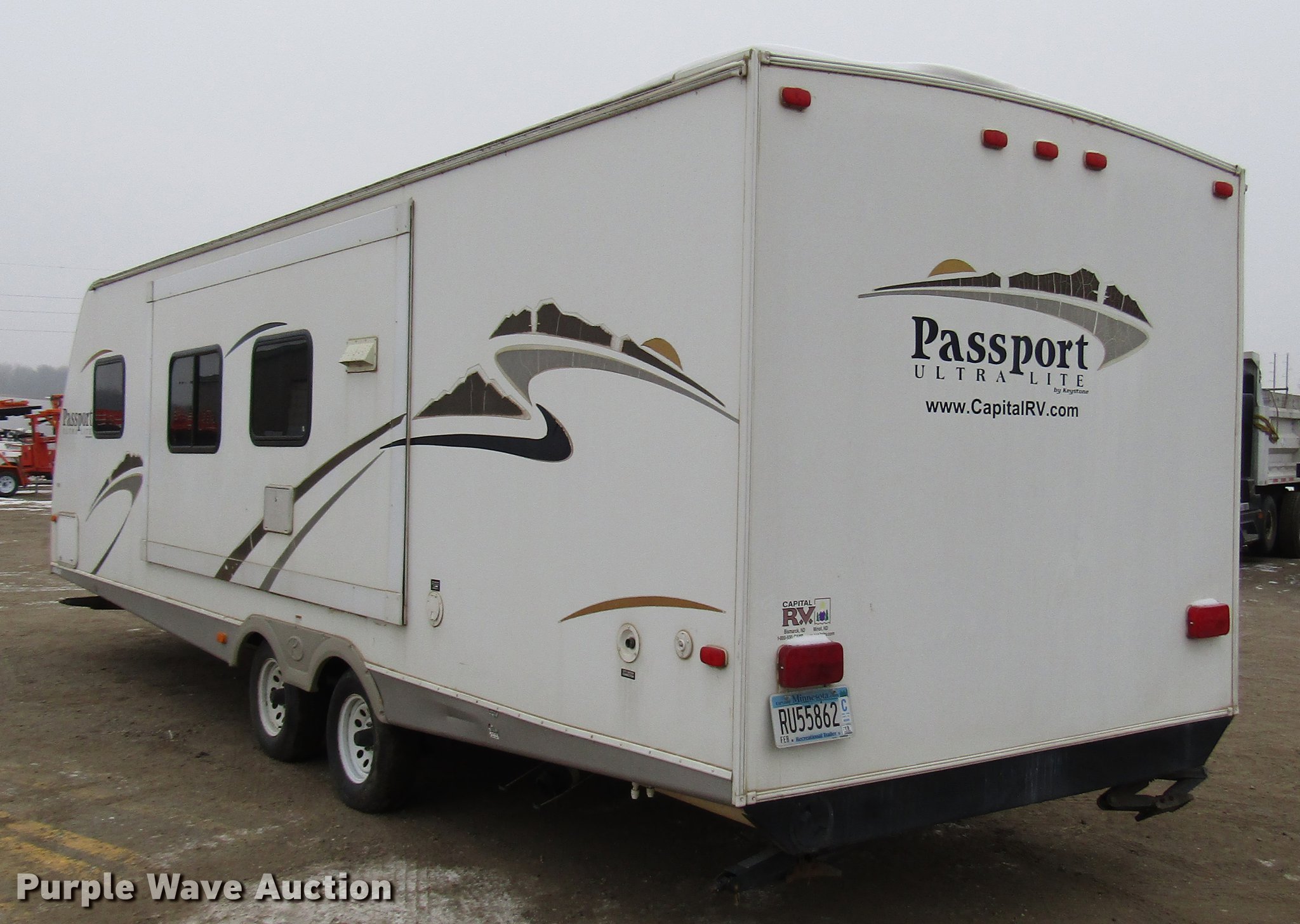 Purple Wave is selling a used RV in Minnesota. This item is a 2008 Keystone Passport Ultra Lite 280BH camper with the following: 26'L, Electric slide-out, Awning, Entrance door, Kitchen, Sink, Refrigerator/freezer, Microwave, Oven, Stove, Table, Bathroom, Queen bed, Central AC and heat unit, Storage compartments, 2 5/16" ball hitch, Single leg landing gear, Spring suspension, Electric brakes, 205/75D14 tires