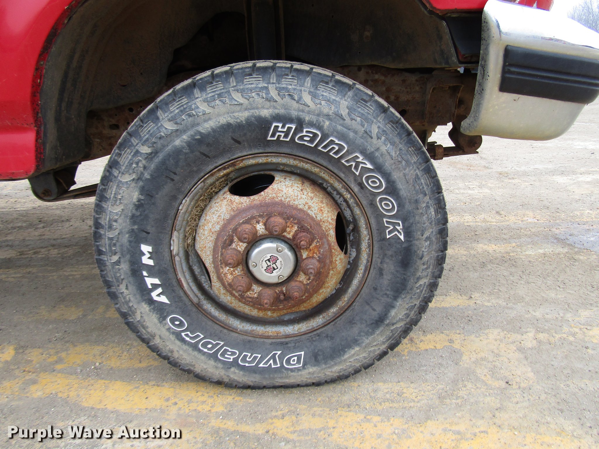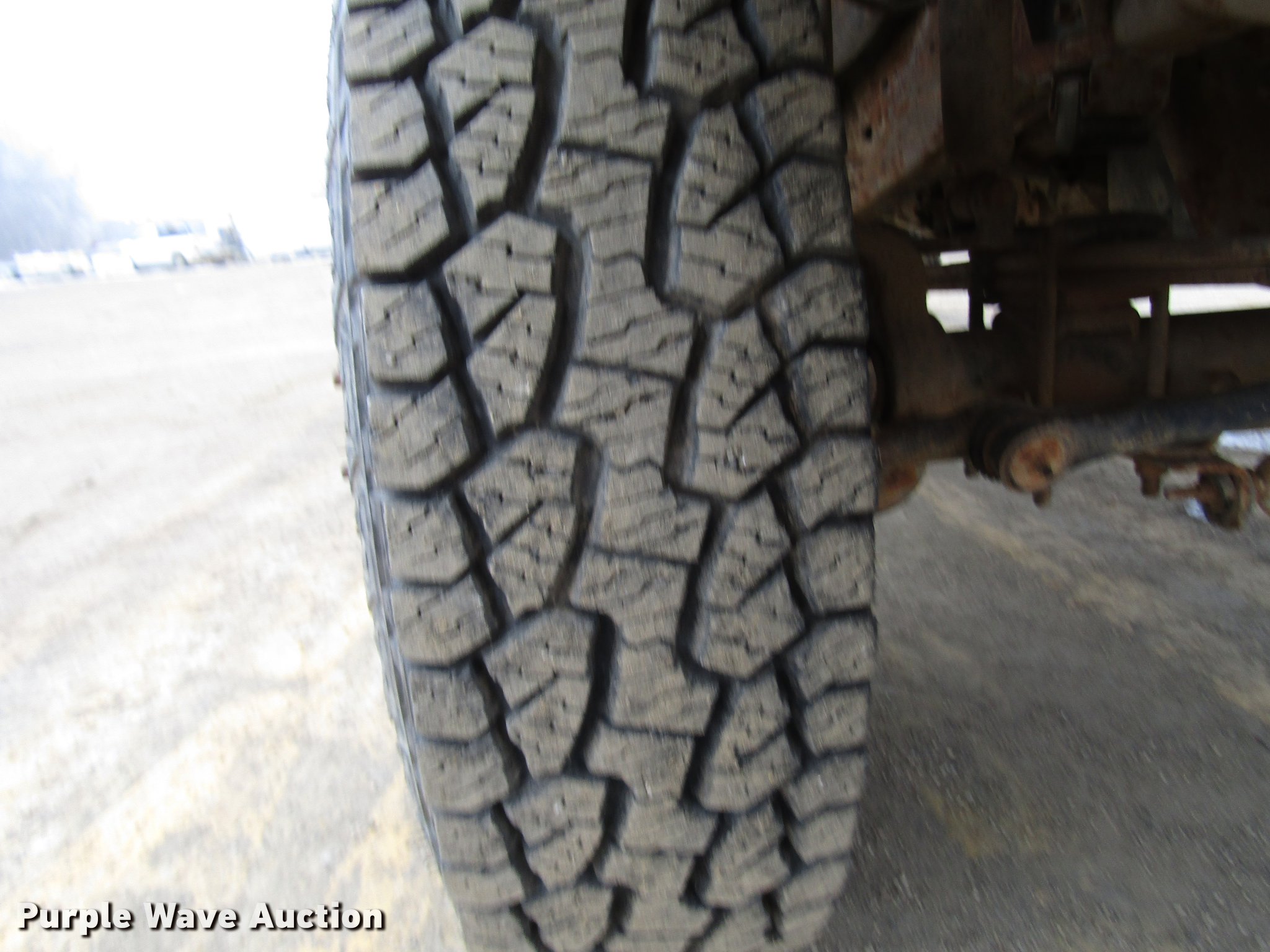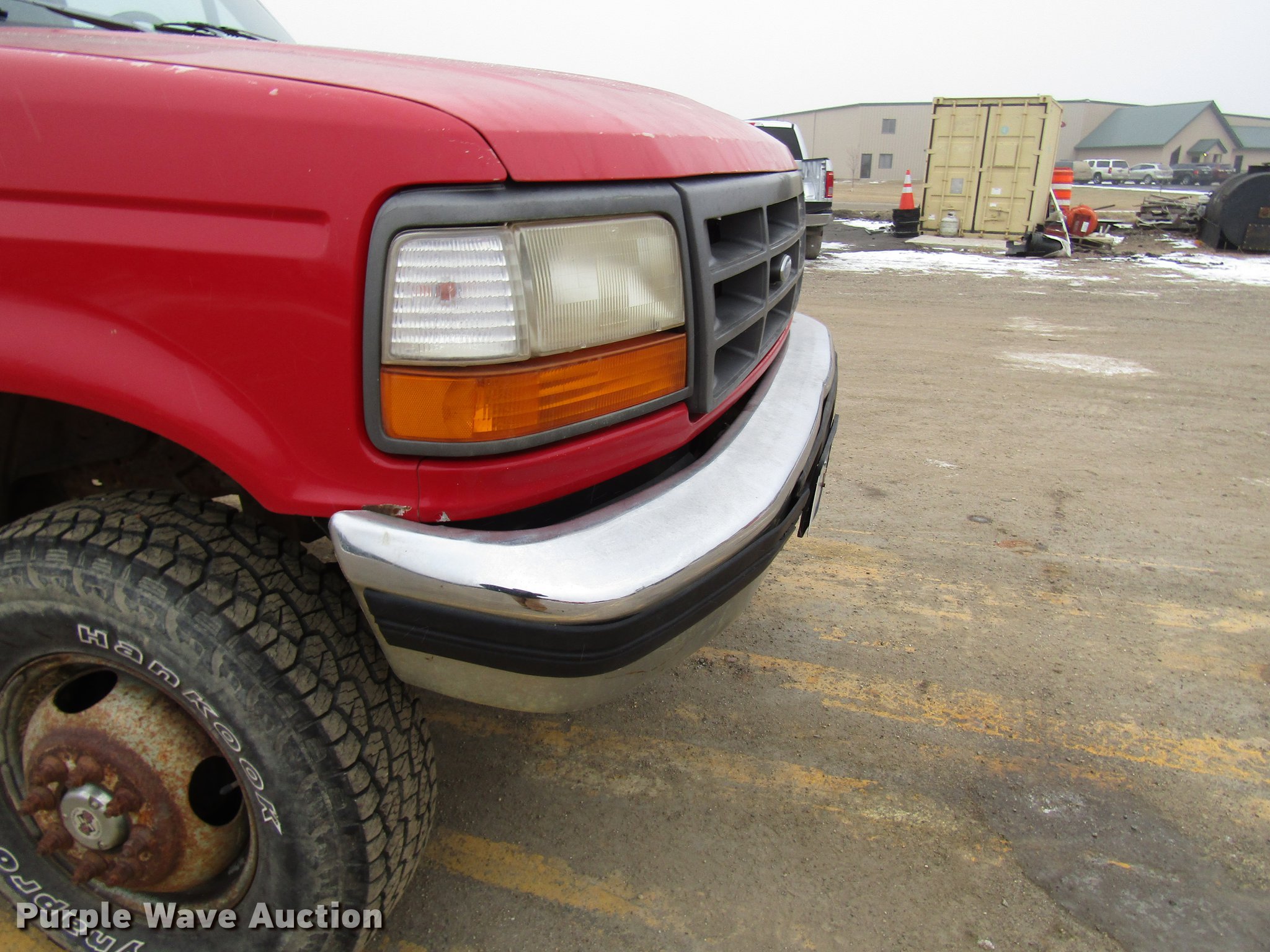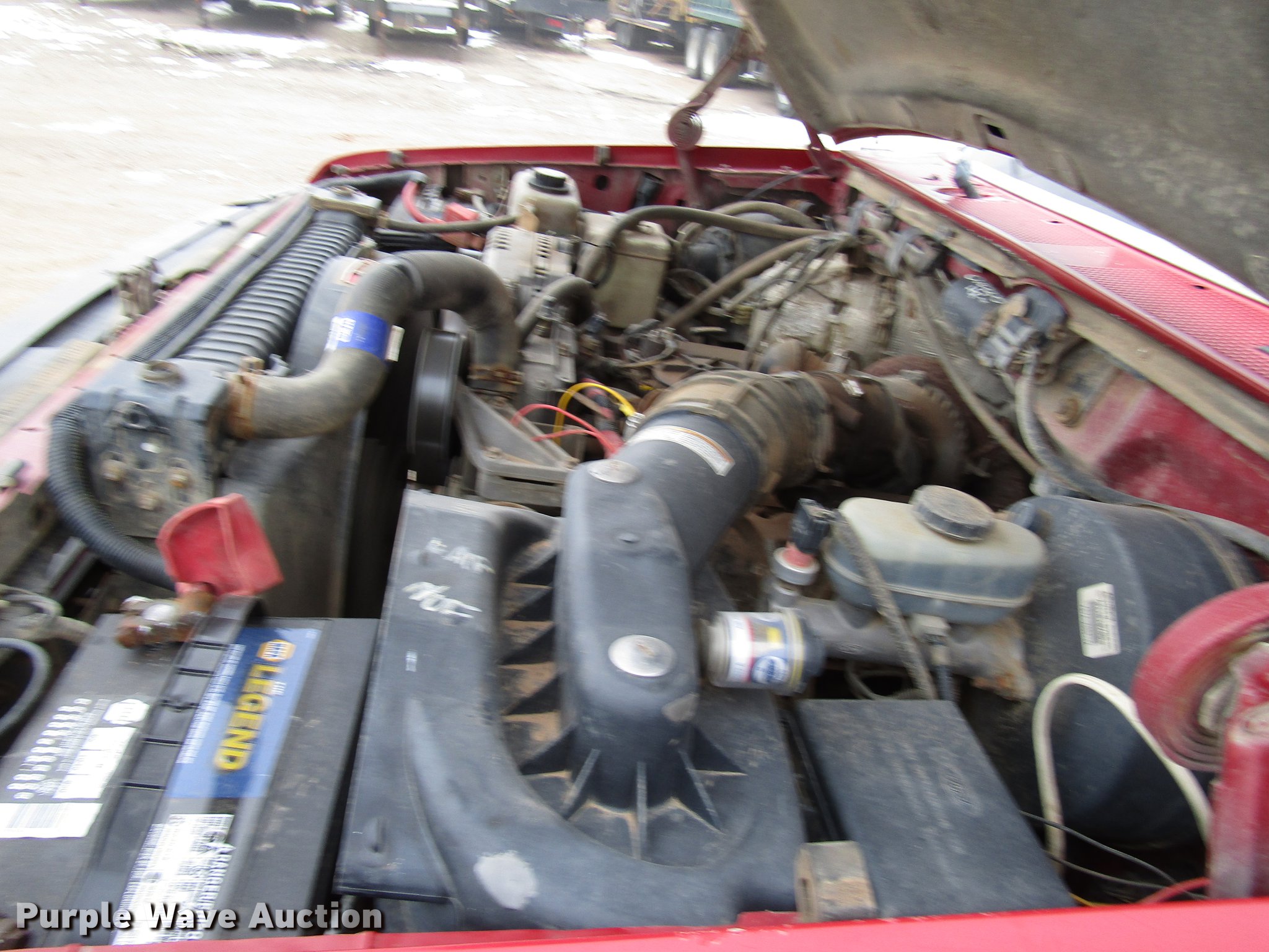 Purple Wave is selling a used 3/4 or 1 Ton Pickup or Van in Minnesota. This item is a 1997 Ford F350 flatbed pickup truck with the following: 276,680 miles on odometer, 7.3L V8 OHV 16V diesel engine, Five speed manual transmission, Four wheel drive, AC and heat, Tilt, Cruise, Cloth interior, Front tow hooks, 11'L x 94"W flatbed, Toolbox, Gooseneck ball, Receiver hitch, Trailer wiring, 235/85R16 tires, Cracked windshield, Unit# 03-103