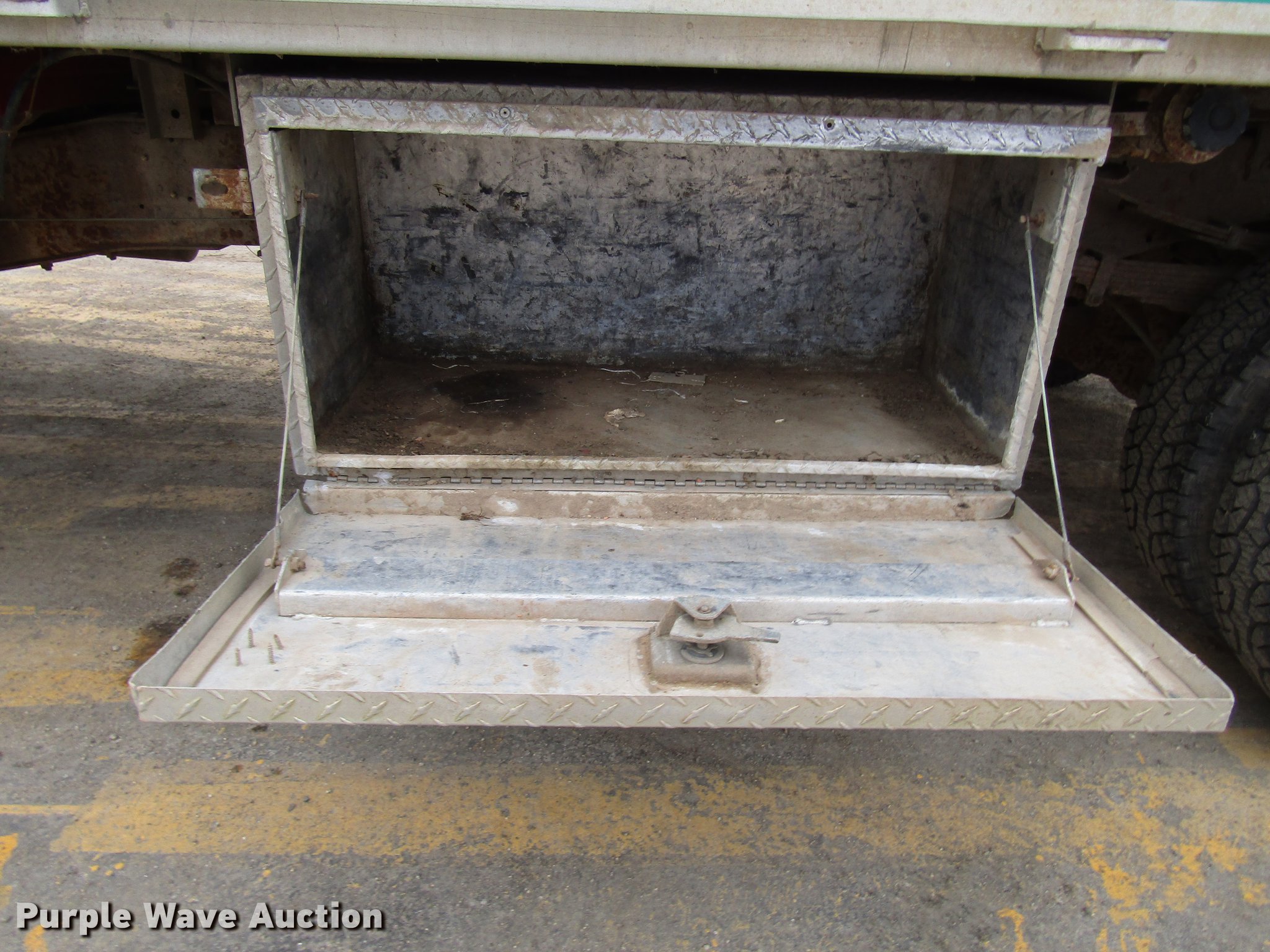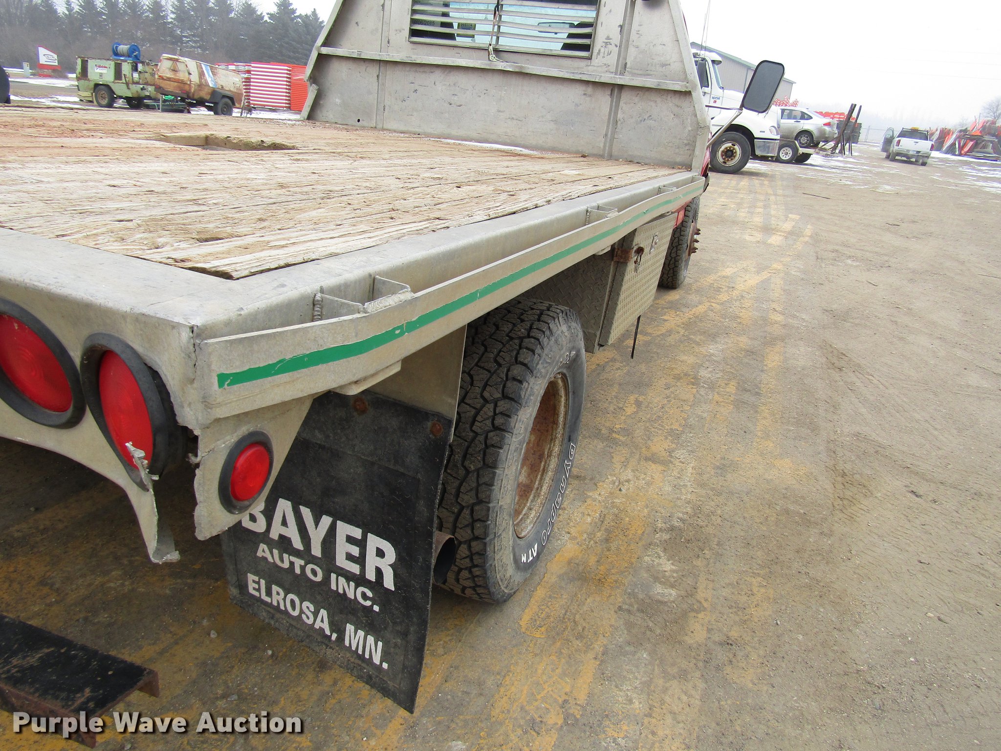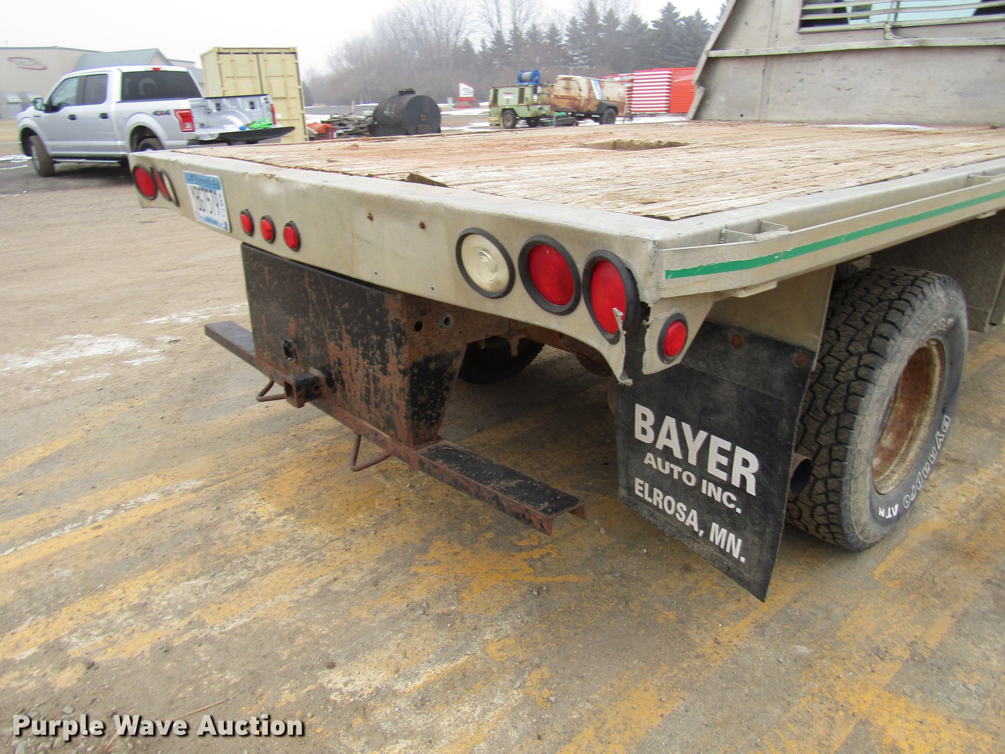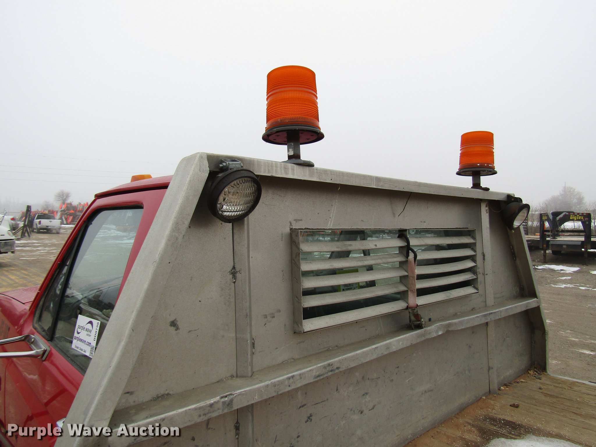 1997 Ford F350 flatbed pickup truck. 276,680 miles on odometer, 7.3L V8 OHV 16V diesel engine, Five speed manual transmission, Four wheel drive, AC and heat, Tilt, Cruise, Cloth interior, Front tow hooks, 11'L x 94"W flatbed Toolbox, Gooseneck ball, Receiver hitch, Trailer wiring, 235/85R16 tires, Cracked windshield, Unit# 03-103. Minnesota title. 1FDKF38F5VED02567. Precision Roadway Services. 602 3rd Ave E. Osakis, MN 56360