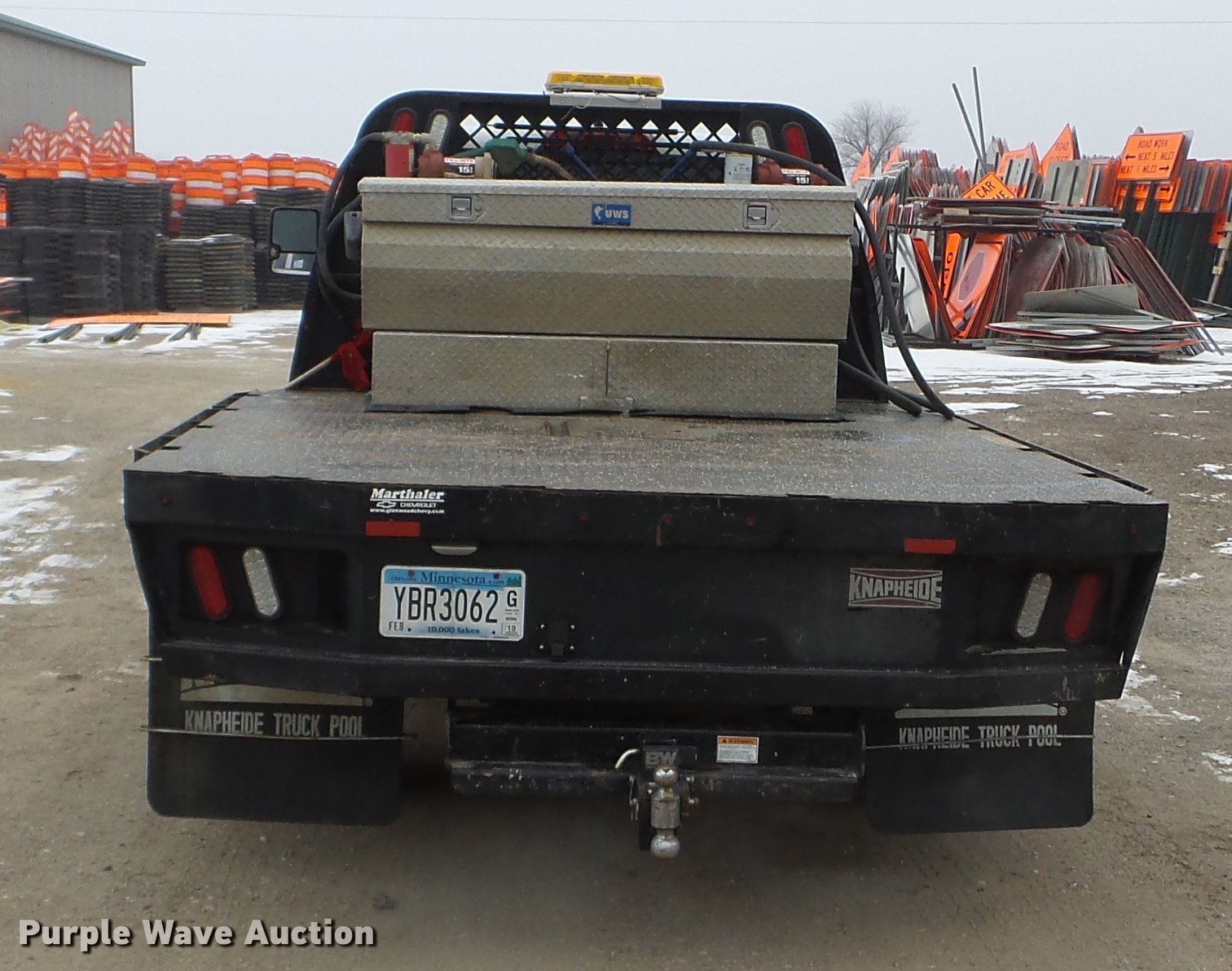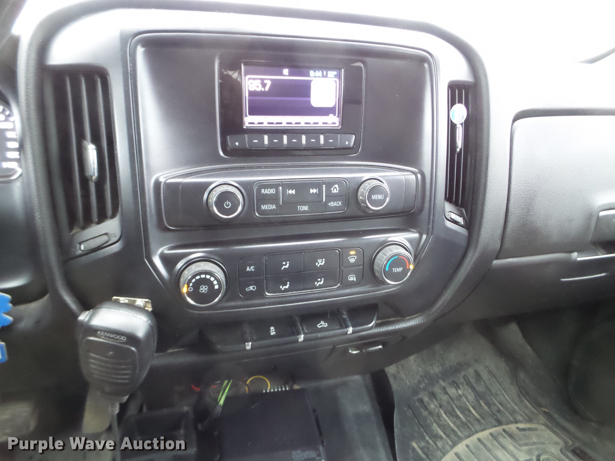 2015 Chevrolet Silverado 3500HD Crew Cab flatbed pickup truck. 82,741 miles on odometer, 6.0L V8 OHV 16V FFV gas engine, Automatic transmission, Four wheel drive, AC and heat, Tilt, Cruise, AM/FM/CD, Power windows, locks, and mirrors, Cloth interior, Running boards, Front tow hook, Knapheide flatbed 9.5'L x 96"W, Toolbox, Auxiliary two compartment fuel tank Pump, Hose, Gooseneck hitch, Receiver hitch, Trailer wiring, 235/80R17 tires, Unit# 03-126. Minnesota title. Title distribution may be delayed up to 30 days from verification of funds. 1GB4KYCG7FF532973. Precision Roadway Services. 602 3rd Ave E. Osakis, MN 56360