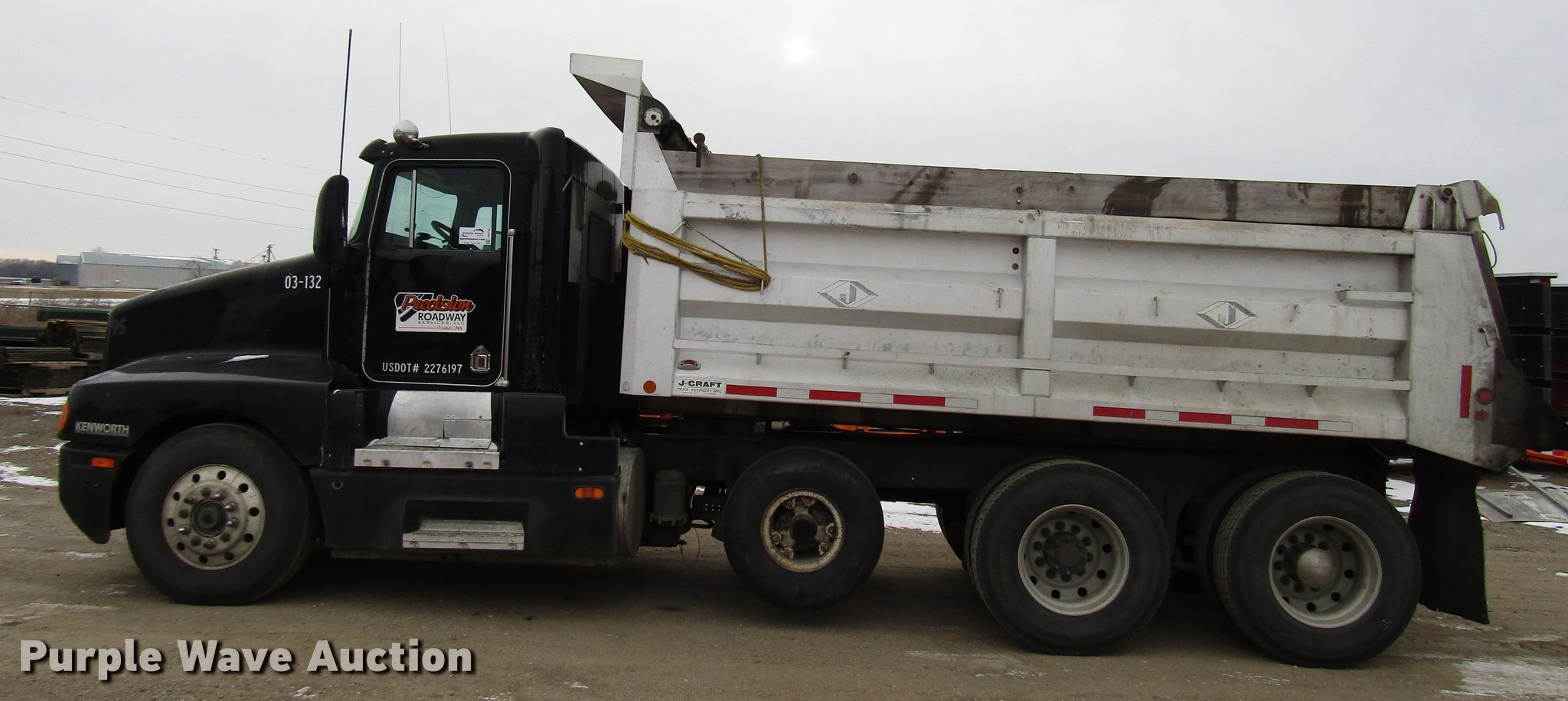 Purple Wave is selling a used Construction Dump Truck in Minnesota. This item is a 1995 Kenworth T600 dump truck with the following: 322,452 miles on odometer, Cummins N14 14.0L L6 turbo diesel engine, 13 speed manual transmission, Tandem axle, Tag lift axle, Inter-axle differential lock, AC and heat, Tilt, Cruise, AM/FM/cassette, Power windows, Power and heated mirrors, Suspension seat, PTO, J-Craft aluminum dump bed, 15.5'L x 96"W, 44" side height, Single ram hoist, Air operated end gate, Dual fuel tanks, Pintle hitch, Air suspension, Air brakes, Engine brake, 218" wheelbase, 11R22.5 tires, Unit# 03-132