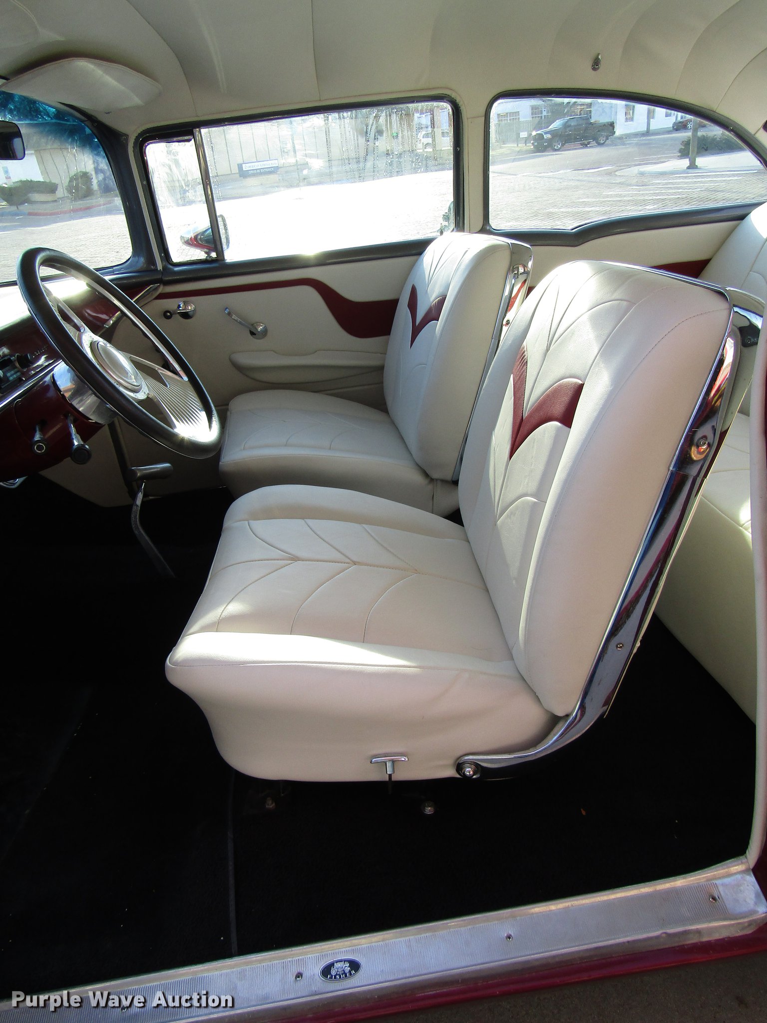 Purple Wave is selling a used Passenger Vehicle in Nebraska. This item is a 1957 Chevrolet 150 sedan with the following: 8,423 miles on odometer, 350 cid. V8 gas engine, Roller cam and lifters, Four speed manual transmission, Heat, Tilt, AM/FM, Leather interior, 235/60R15 tires
