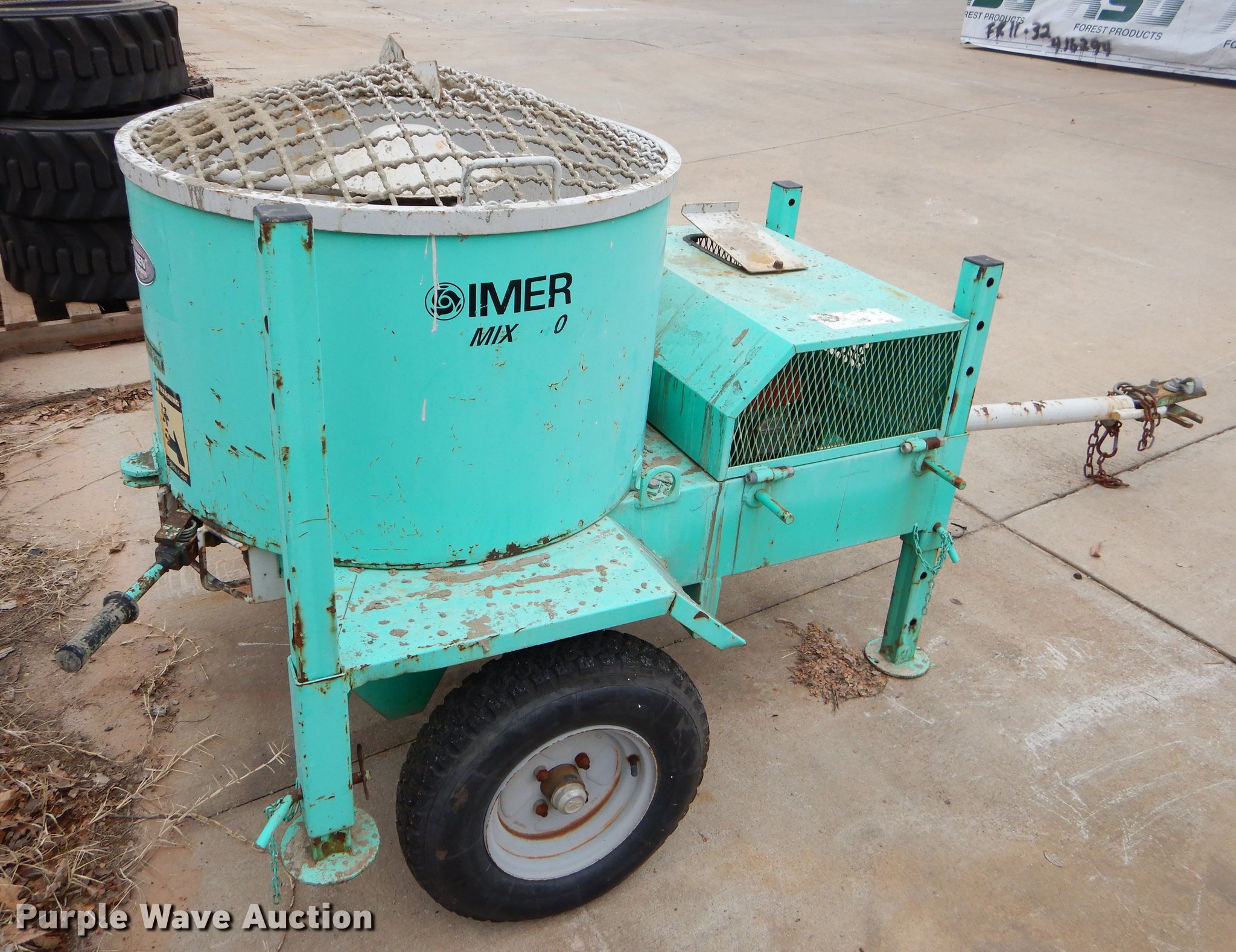 Purple Wave is selling a used Concrete Dispenser in Oklahoma. This item is a Imer Mix 40 concrete mixer with the following: Honda gas engine, 32" diameter drum, Ball hitch, Dual stabilizers, 4.50-10 tires