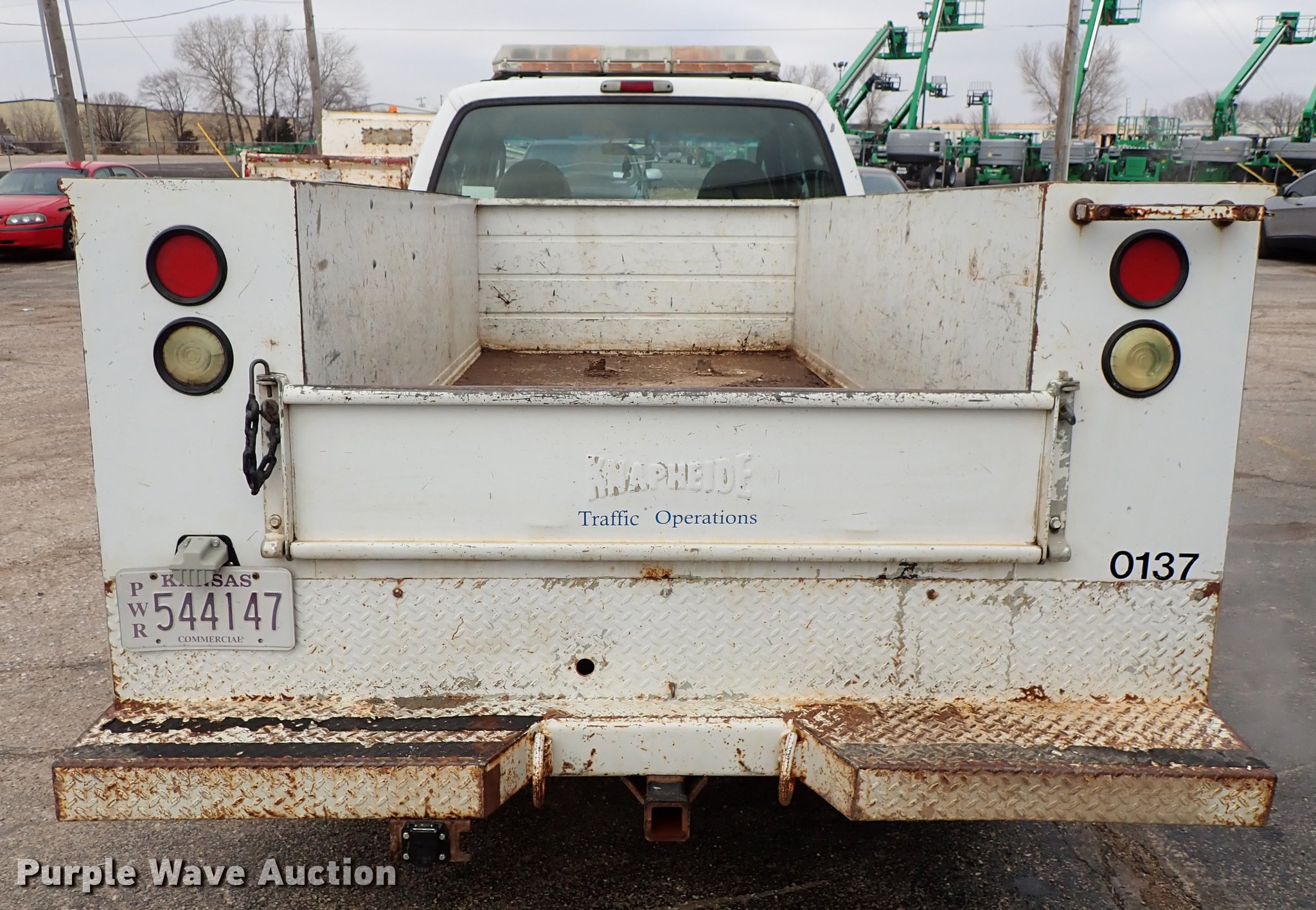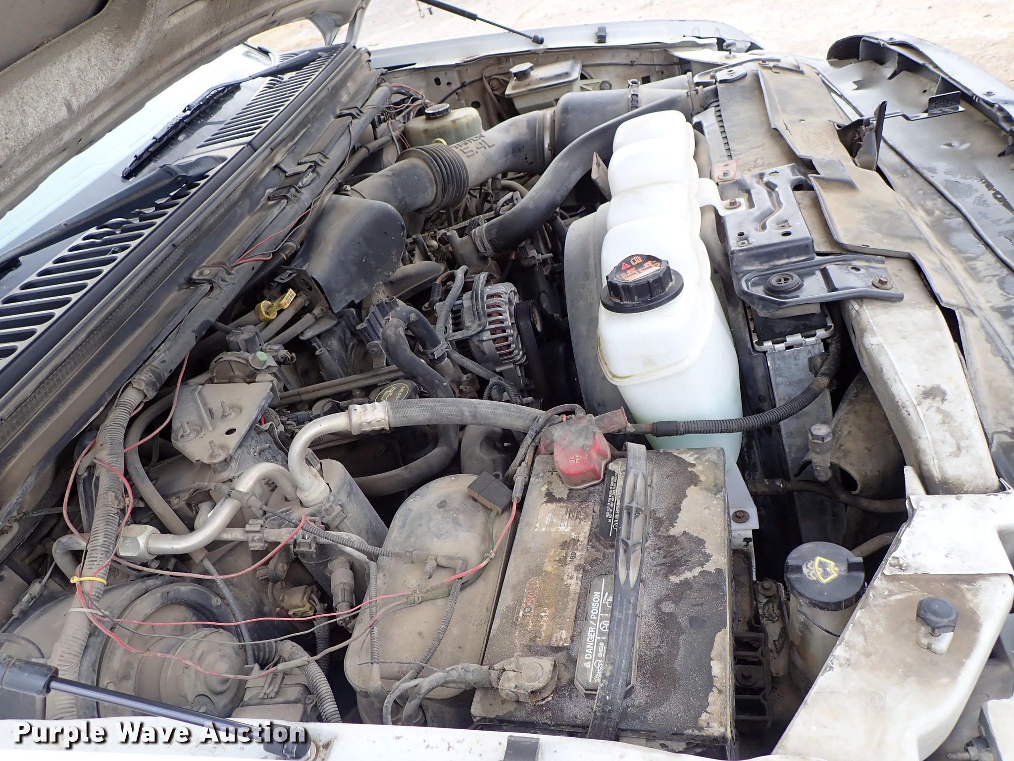 Purple Wave is selling a used 3/4 or 1 Ton Pickup or Van in Kansas. This item is a 2003 Ford F250 Super Duty SuperCab utility bed pickup truck with the following: 210,818 miles on odometer, 5.4L V8 SOHC 16V gas engine, Automatic transmission, AC and heat, Tilt, Cruise, AM/FM/CD, Manual windows and locks, Vinyl inteiror, Beacon light, Front tow hooks, Running boards, 8'L x 79"W utility bed, Receiver hitch, Trailer wiring, 235/85R16 tires, Possible head gasket issue
