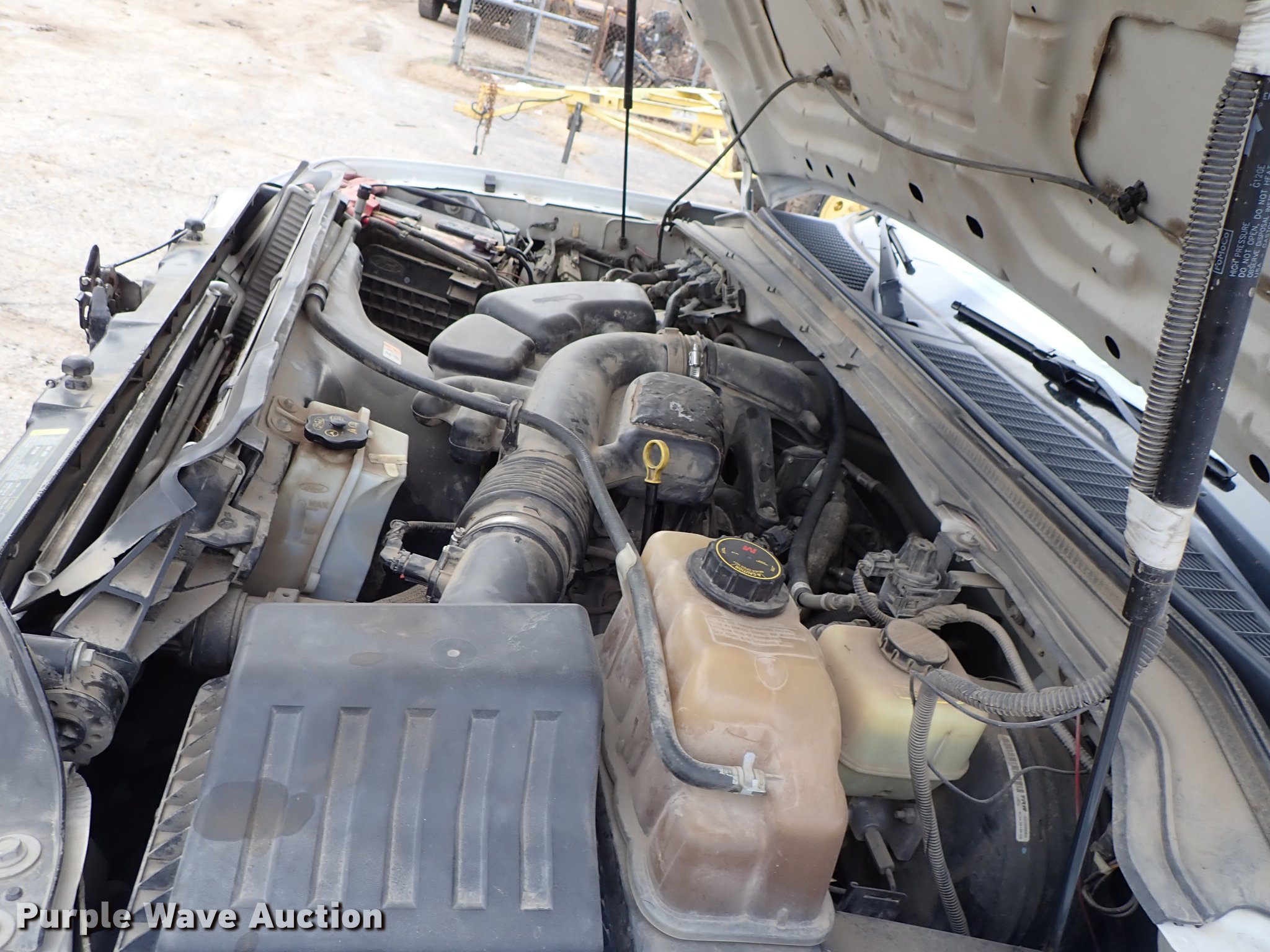 Purple Wave is selling a used 3/4 or 1 Ton Pickup or Van in Kansas. This item is a 2008 Ford F250 Super Duty Crew Cab utility bed pickup truck with the following: 220,634 miles on odometer, 5.4L V8 SOHC 16V gas engine, Automatic transmission, Four wheel drive, AC and heat, Tilt, Cruise, AM/FM/CD, Manual windows and locks, Cloth interior, Beacon light, Front tow hooks, 8'L x 77"W utility bed, Receiver hitch, Trailer wiring, 265/70R17 tires, Runs rough, Check engine light on