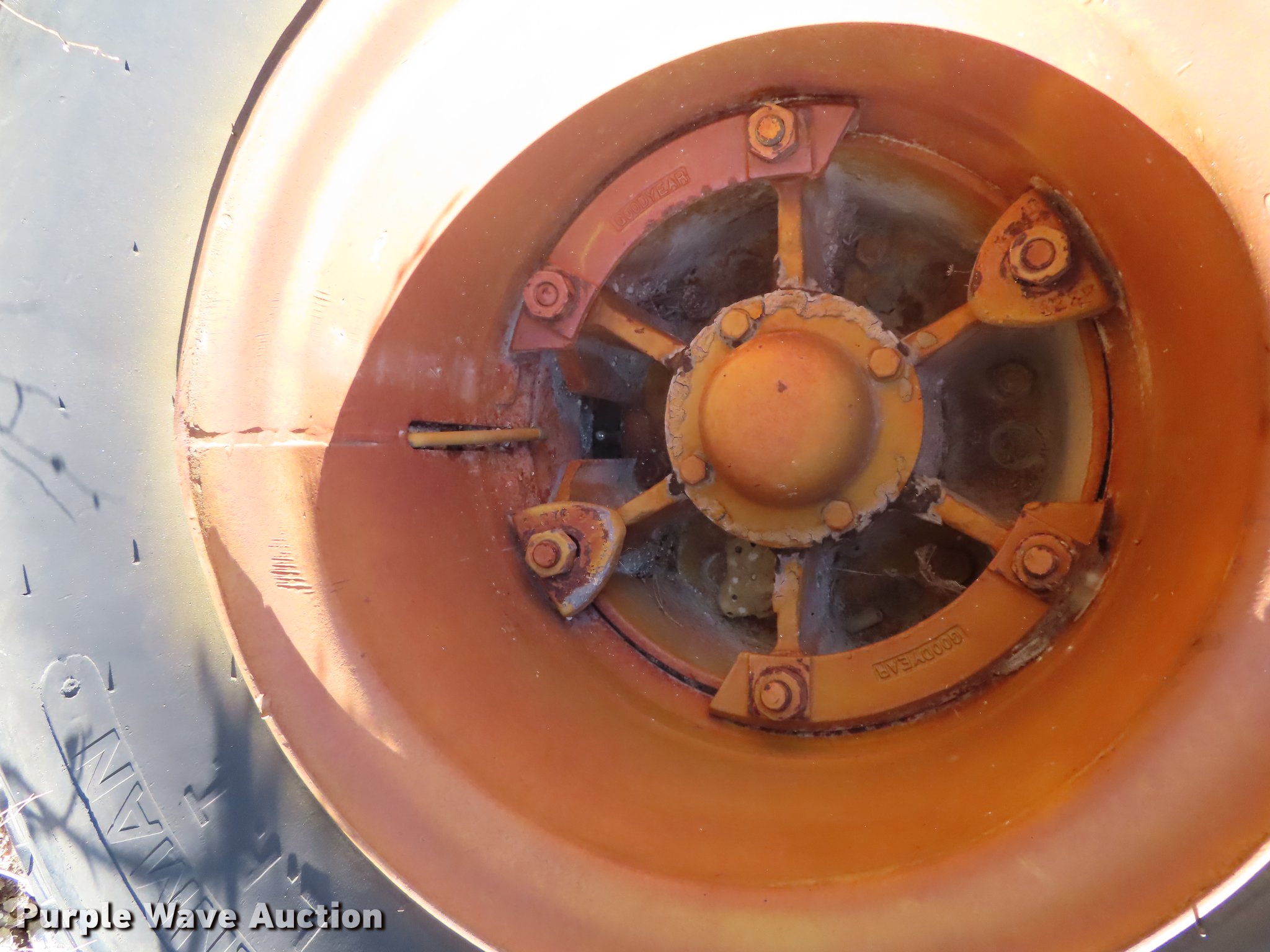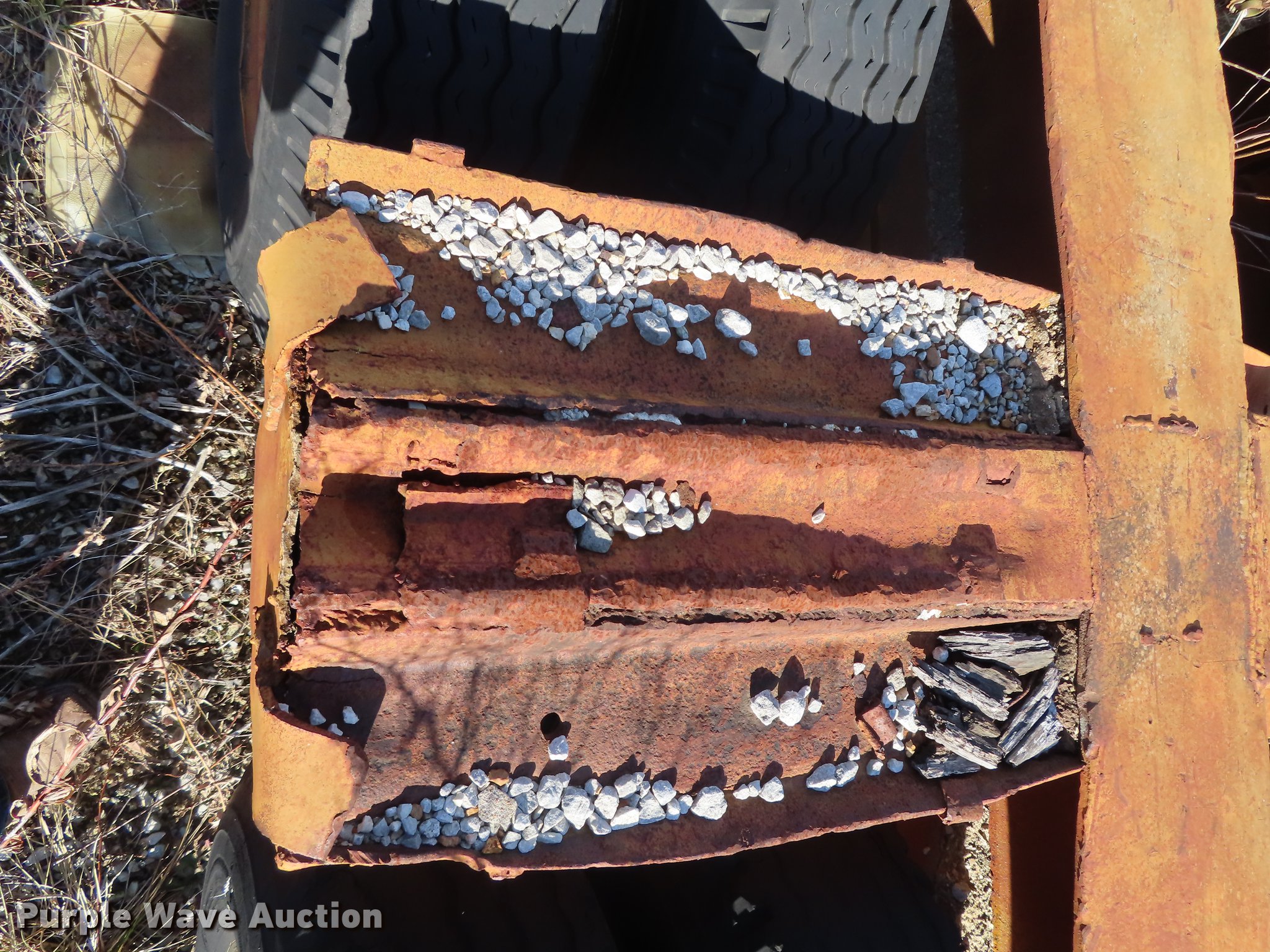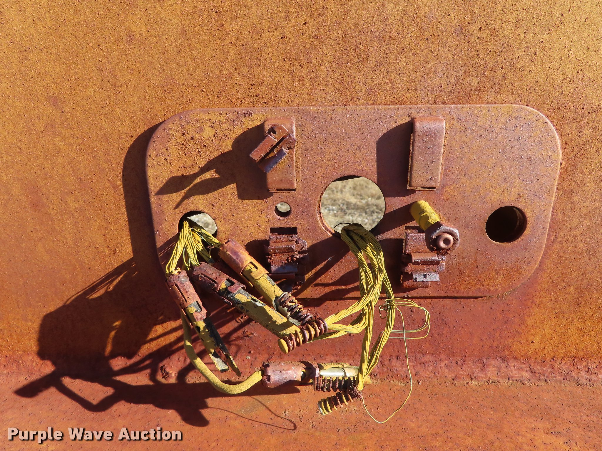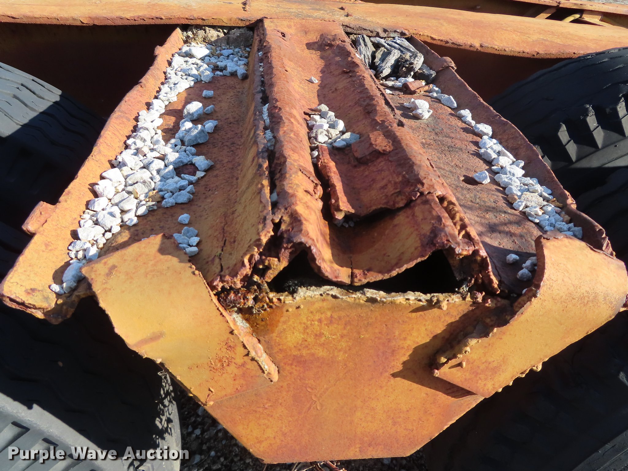 Purple Wave is selling a used Equip. Trailer in Missouri. This item is a 1955 Fruehauf equipment trailer with the following: 28'L x 96"W overall, 25'L wood deck, 3'L dove tail, D-ring tie downs, Dual leg landing gear, Fifth wheel plate, Tandem axle, Spring suspension, Air brakes, Steel wheels, 10.00-15 tires