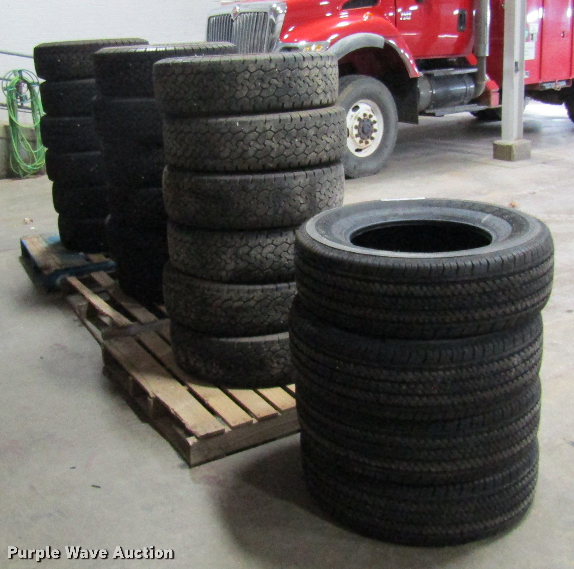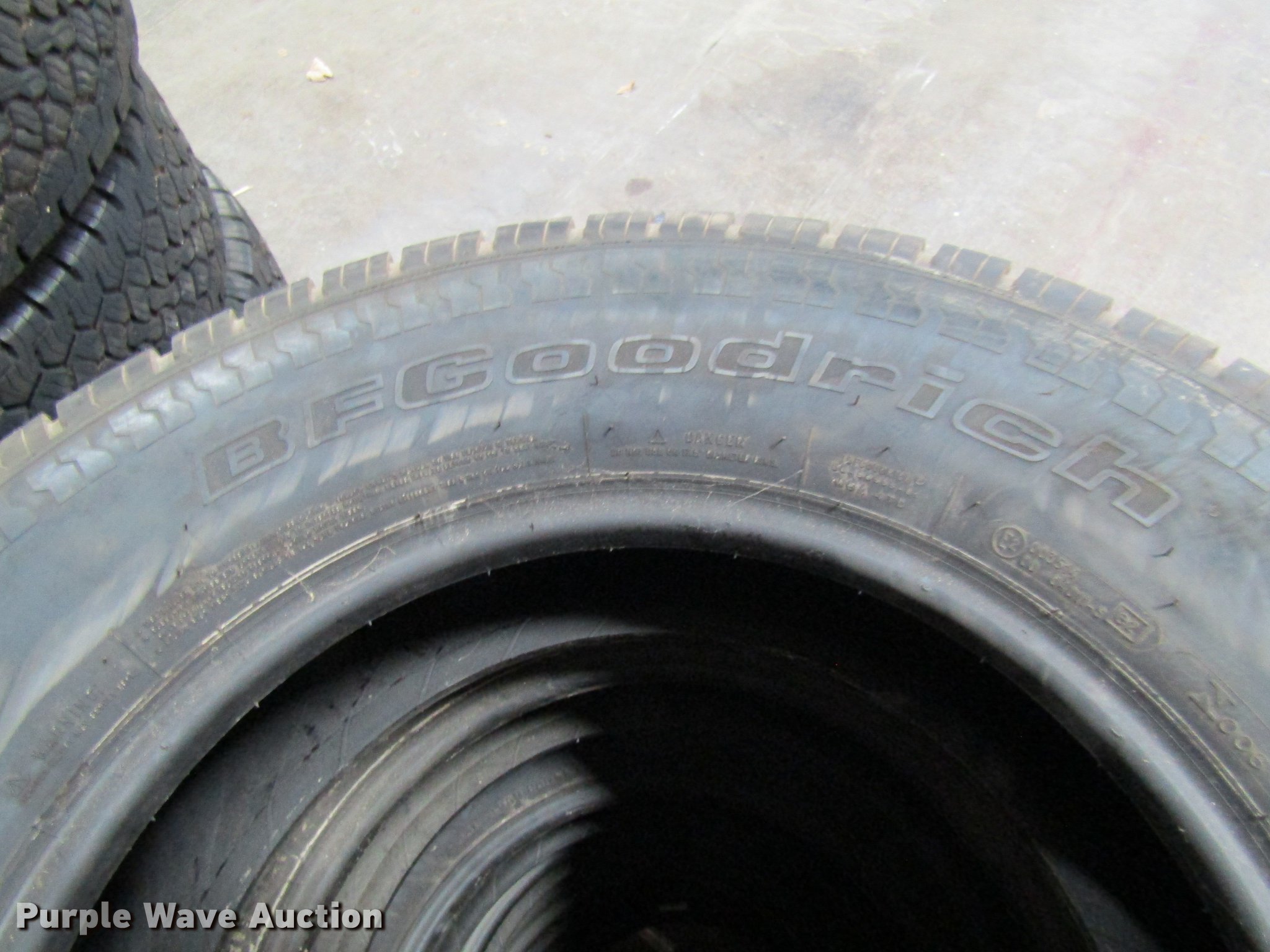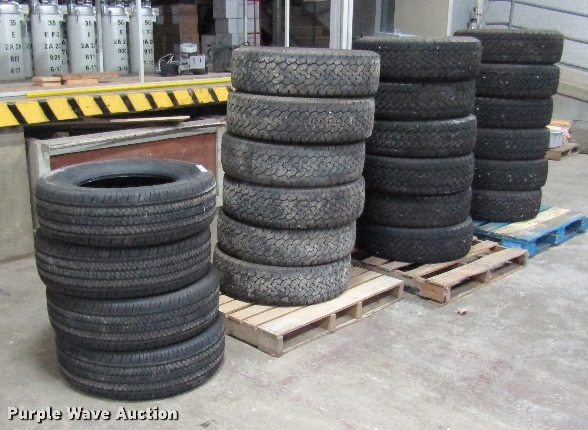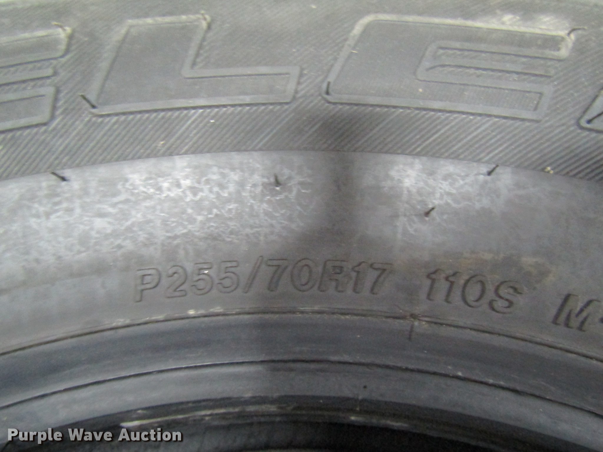 Purple Wave is selling a used Fleet Tires in Missouri. This item is a (22) tires with the following: (4) Bridgestone P255/70R17, (18) B.F. Goodrich LT245/75R17