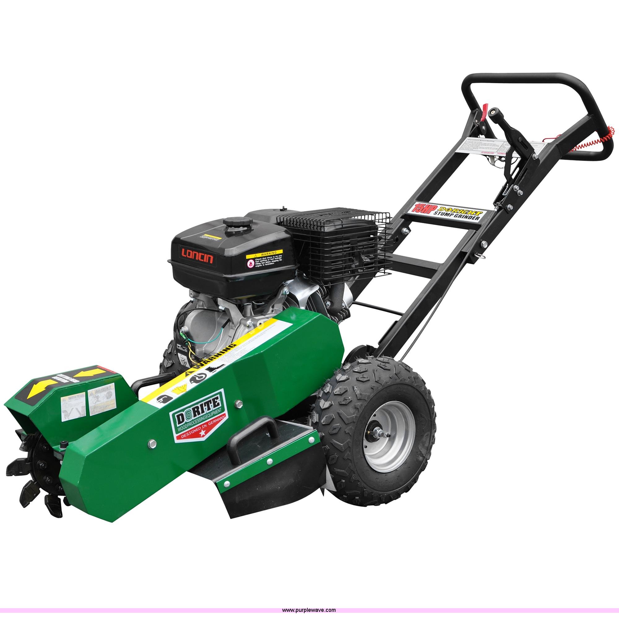 Purple Wave is selling a used Wood Chipper or Stump Grinder in Minnesota. This item is a Stump grinder with the following: Loncin 15 HP gas engine, 12" cutting depth, 3,600 RPM, Tungsten carbide blade with 12 saw teeth, Drum brake, 300 lbs shipping weight, Unused