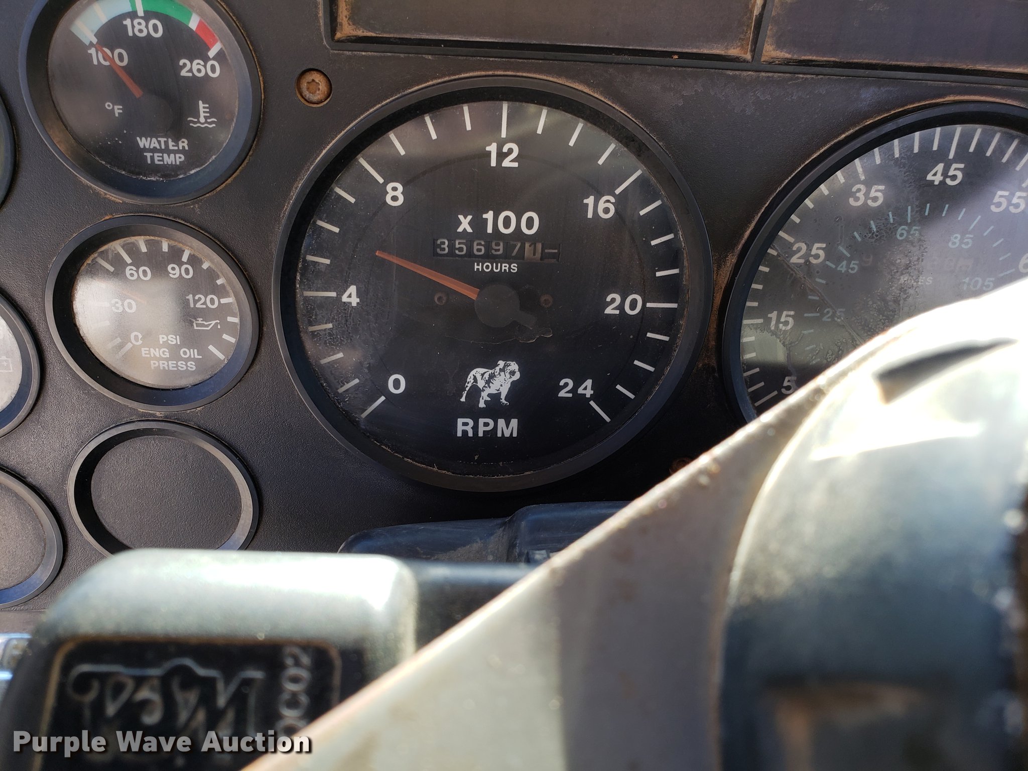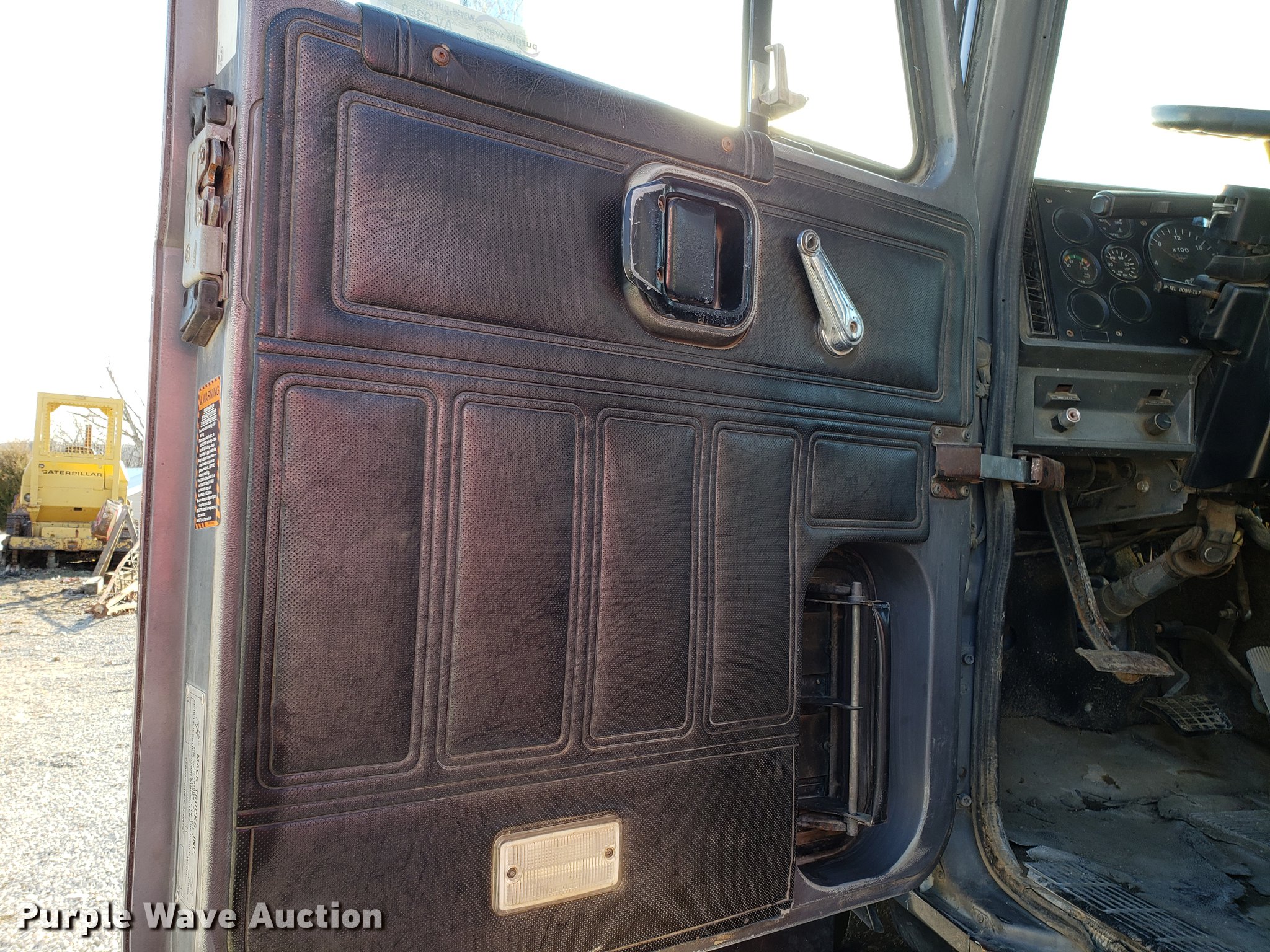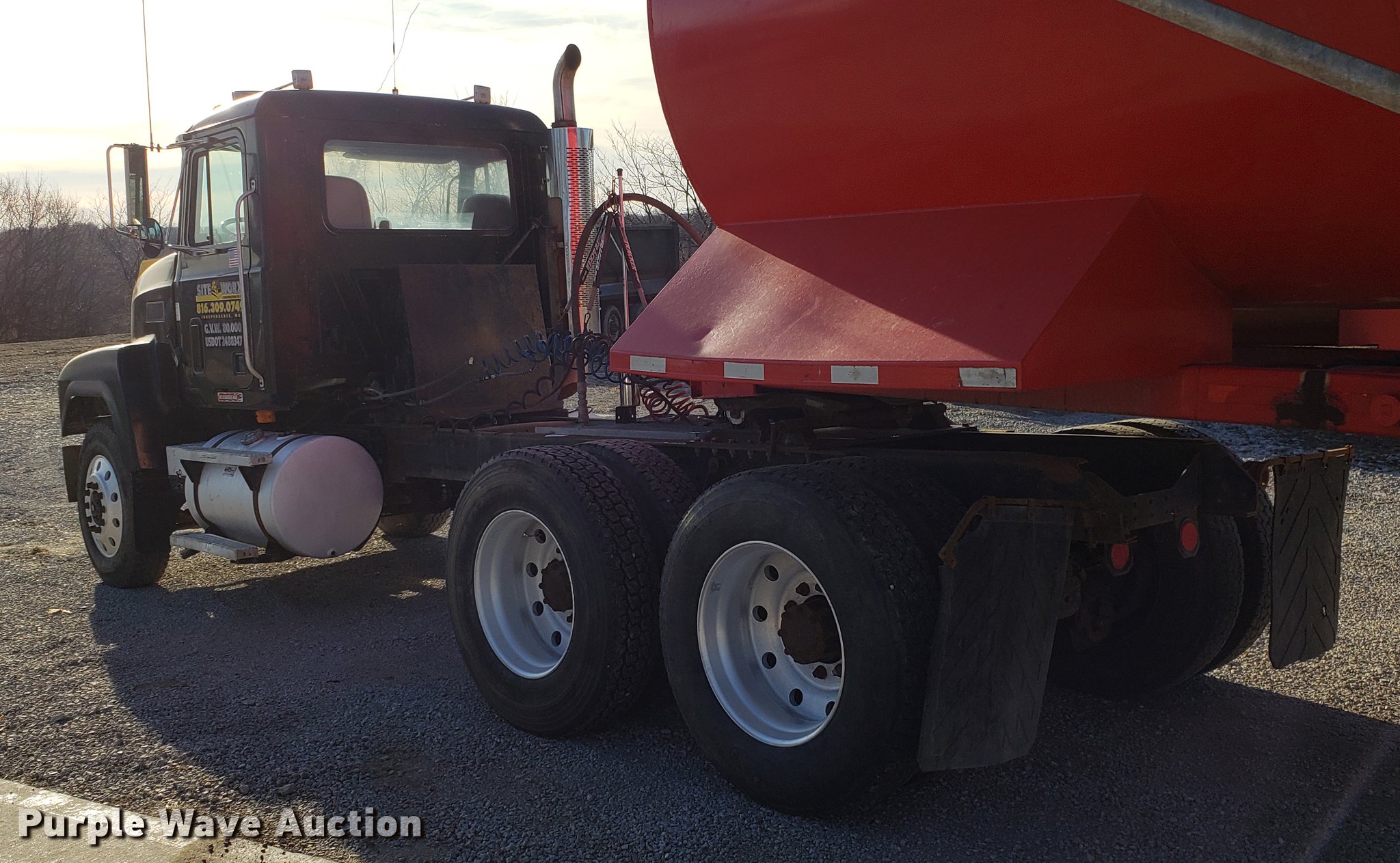 1995 Mack CH613 semi truck. 935,968 miles on odometer, 35,697 hours on meter, Mack 12.0L L6 turbo diesel engine, Eaton Fuller nine speed manual transmission, AC and heat, Air suspension seat, Wet kit, Single rear exhaust stack, Aluminum deck plate, Fixed fifth wheel plate, Dual fuel tanks, Quarter fenders, Camelback suspension, Air brakes, 11R24.5 tires. Missouri title. 1M2AA13Y4SW058116. Site Worx Construction. 19501 E Lippert Ln. Independence, MO 64056
