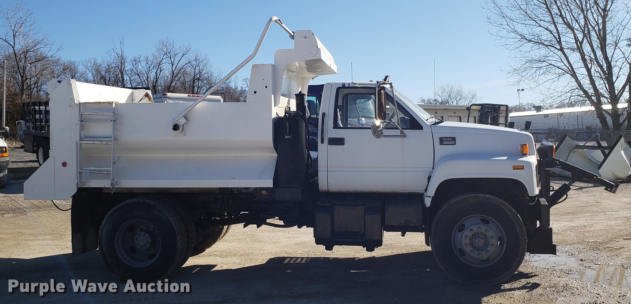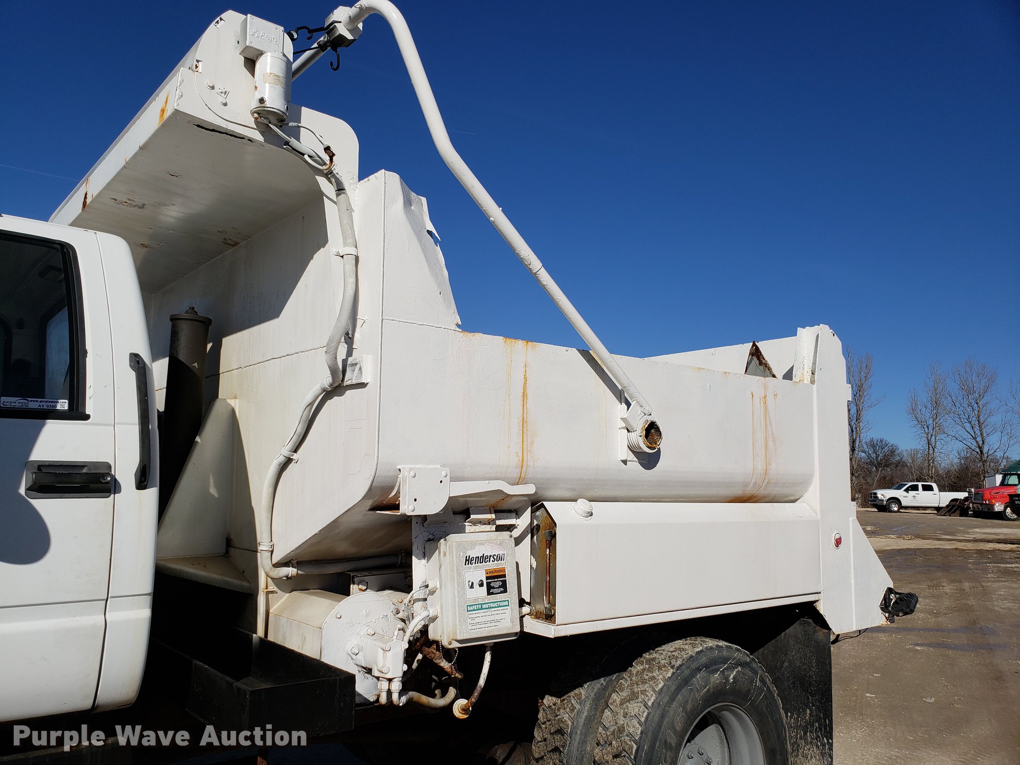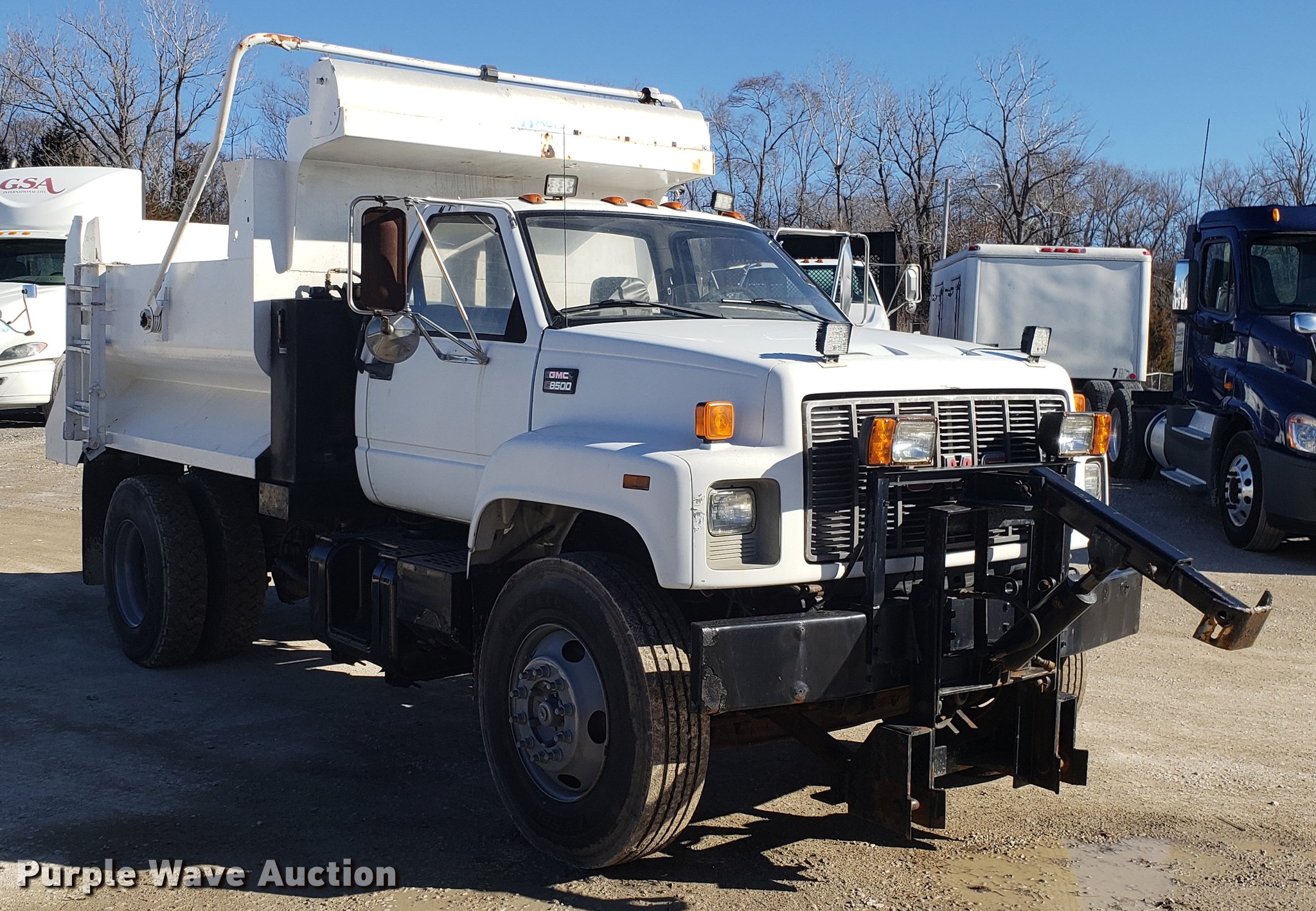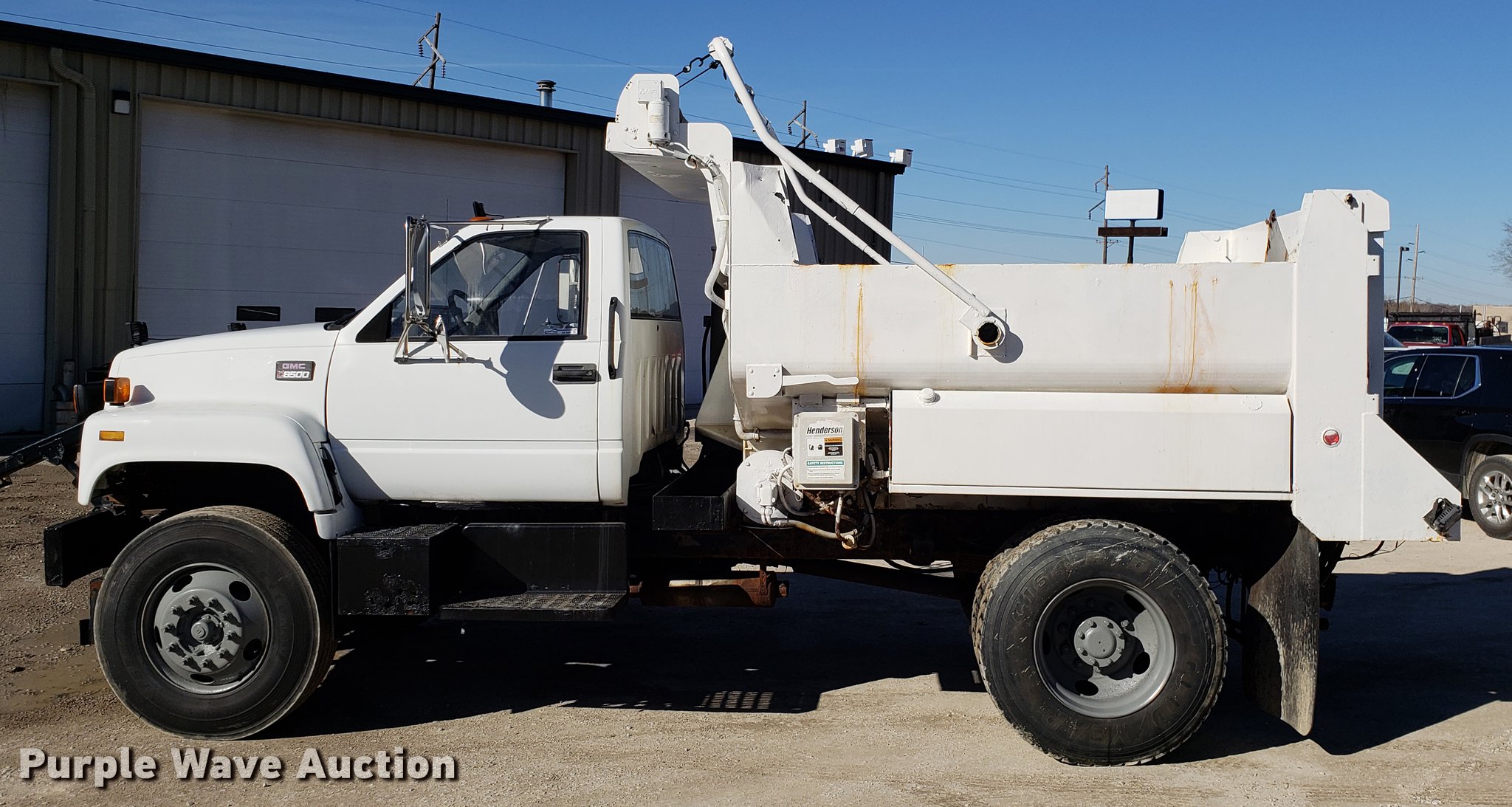 Purple Wave is selling a used Construction Dump Truck in Missouri. This item is a 2002 GMC C7500 dump truck with the following: 51,503 miles on odometer, Caterpillar 3126 7.2L L6 turbo diesel engine, Automatic transmission, AC and heat, AM/FM, Air suspension seat, Henderson steel dump bed, 9'L x 96"W, 36" side height, Single ram hoist, 24"W conveyor, Roll tarp, Snow plow bracket, Front and rear auxiliary hydraulics, Spring suspension, Air brakes, 11R22.5 tires, GVWR 35,000 lbs