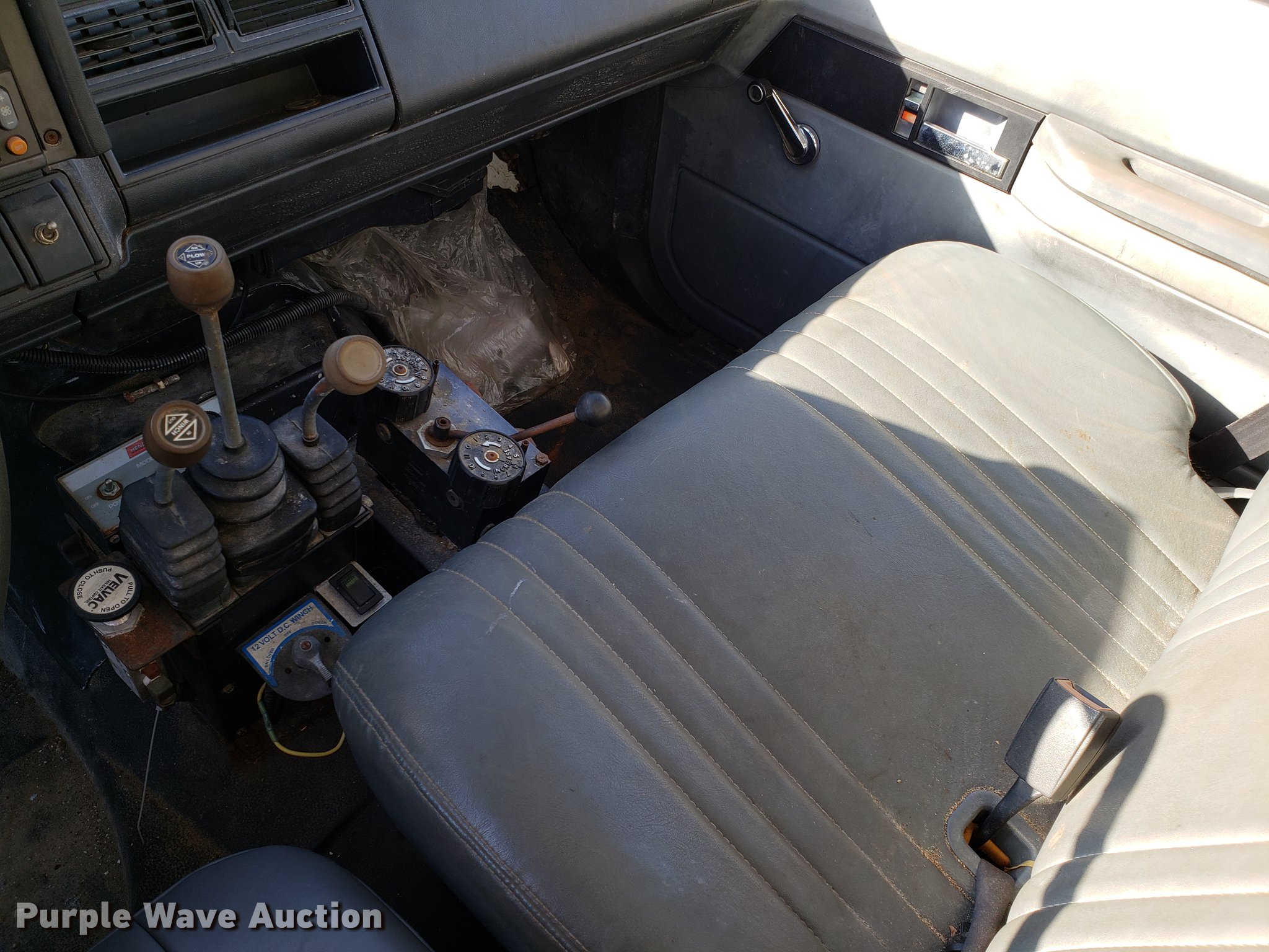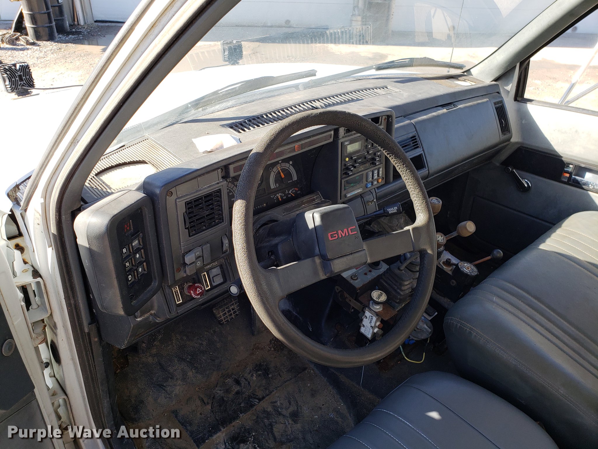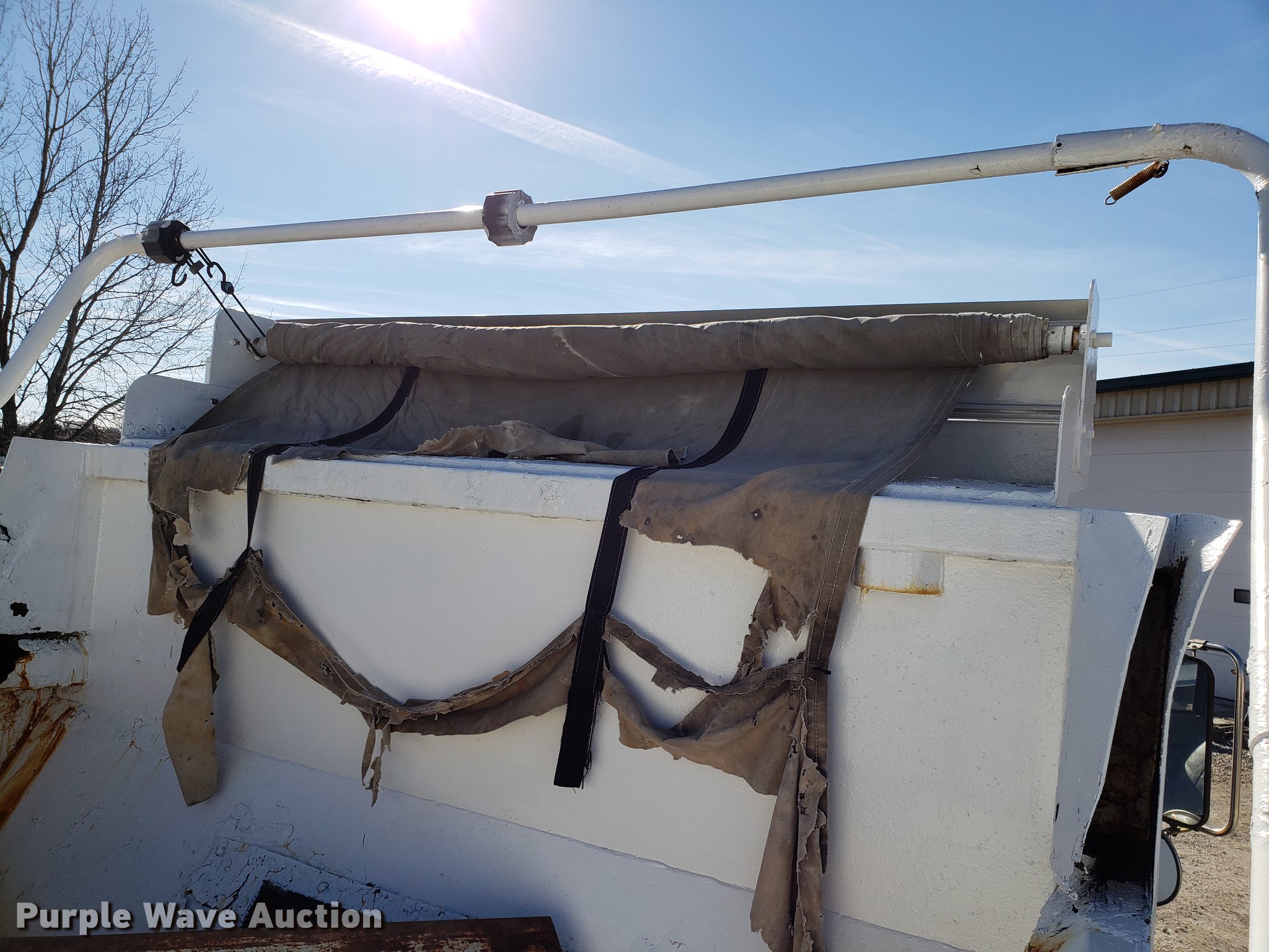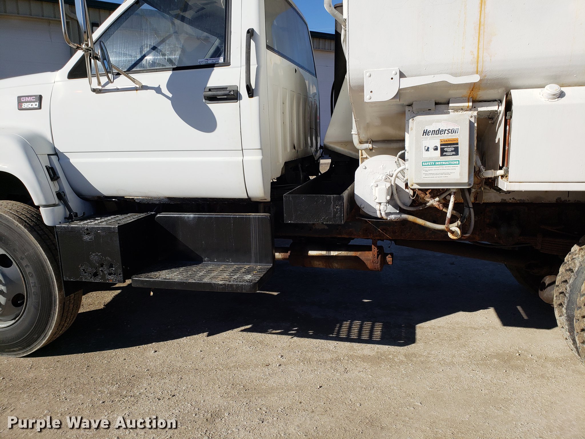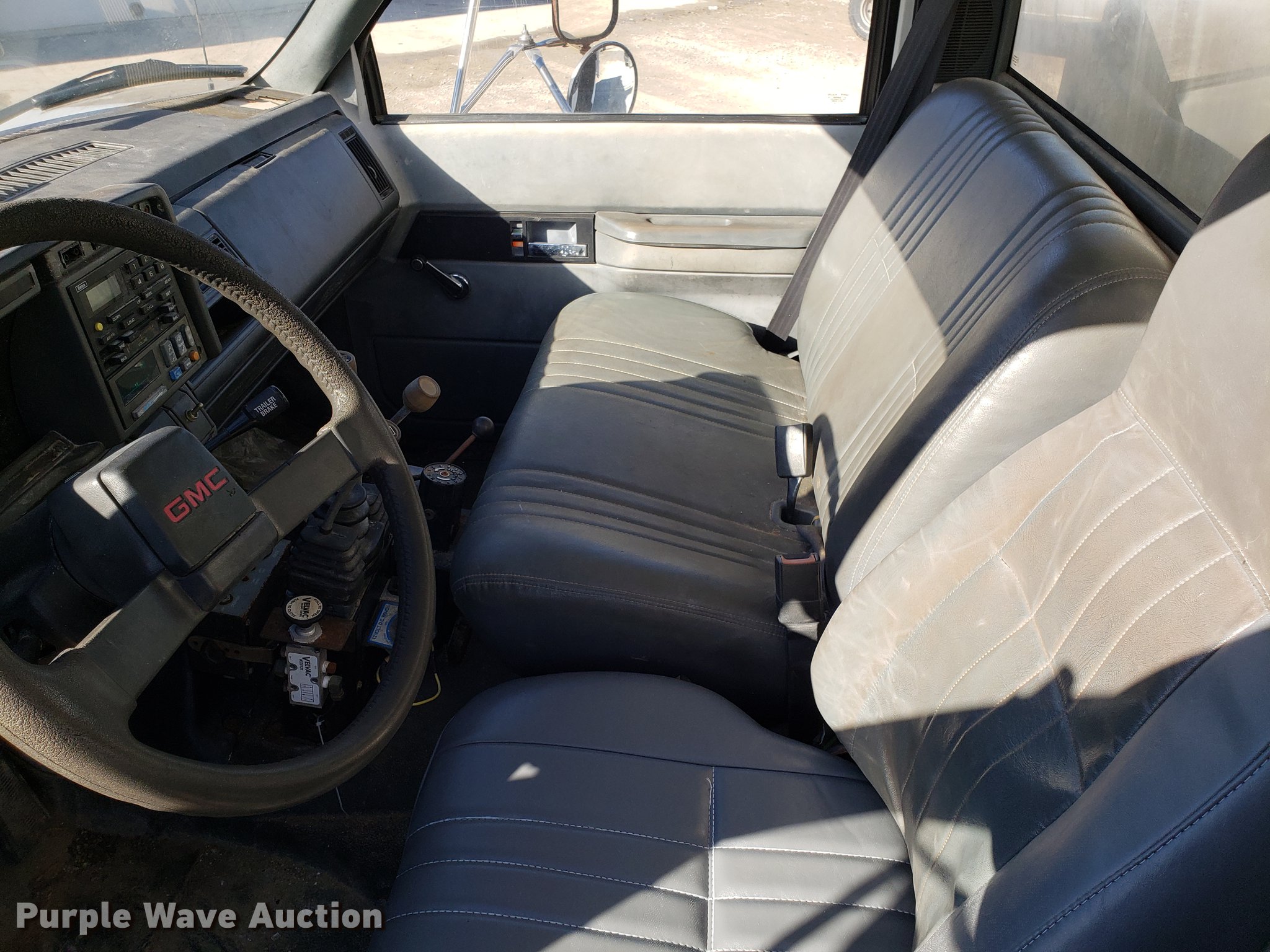 Purple Wave is selling a used Construction Dump Truck in Missouri. This item is a 2002 GMC C7500 dump truck with the following: 51,503 miles on odometer, Caterpillar 3126 7.2L L6 turbo diesel engine, Automatic transmission, AC and heat, AM/FM, Air suspension seat, Henderson steel dump bed, 9'L x 96"W, 36" side height, Single ram hoist, 24"W conveyor, Roll tarp, Snow plow bracket, Front and rear auxiliary hydraulics, Spring suspension, Air brakes, 11R22.5 tires, GVWR 35,000 lbs