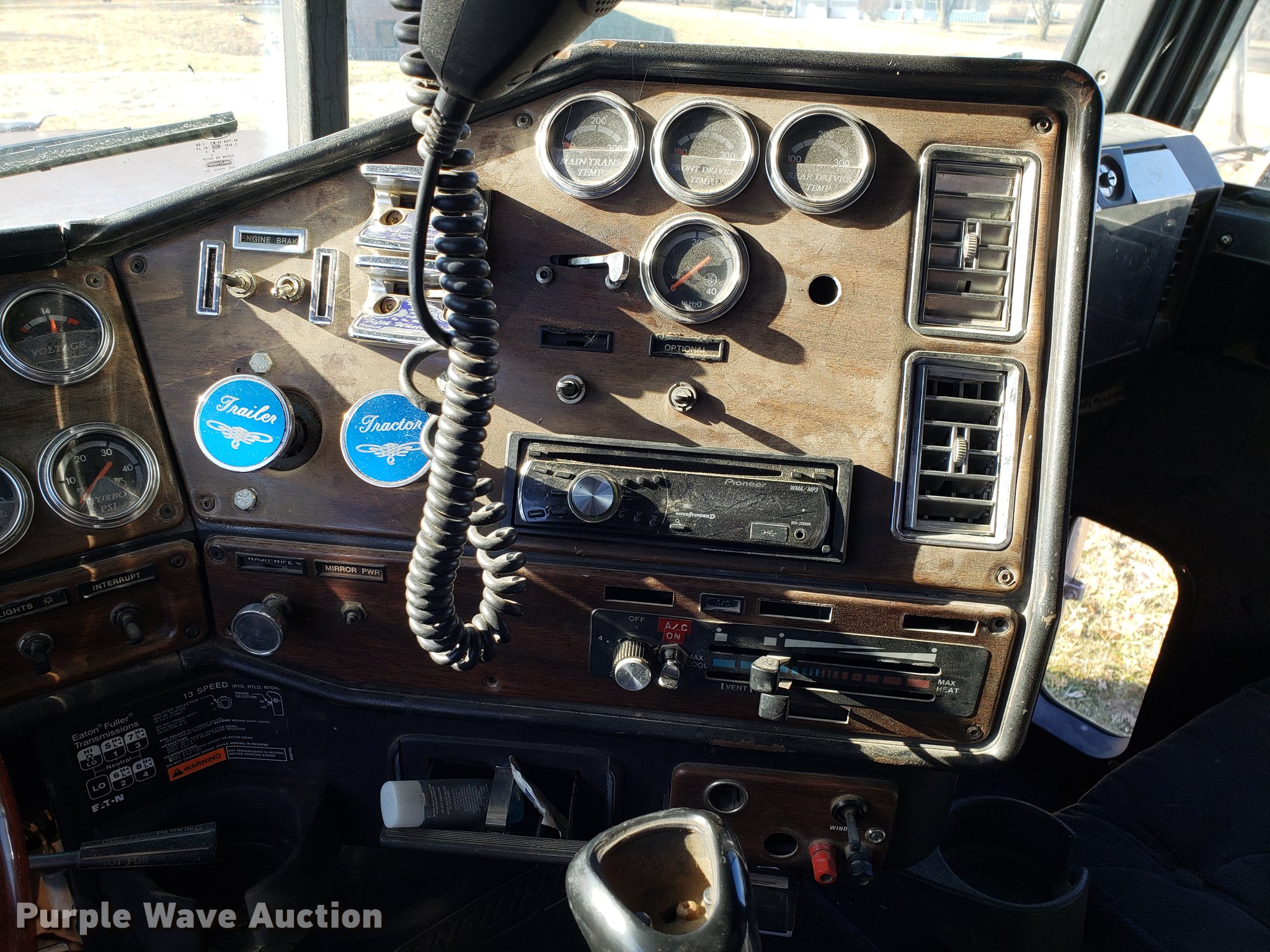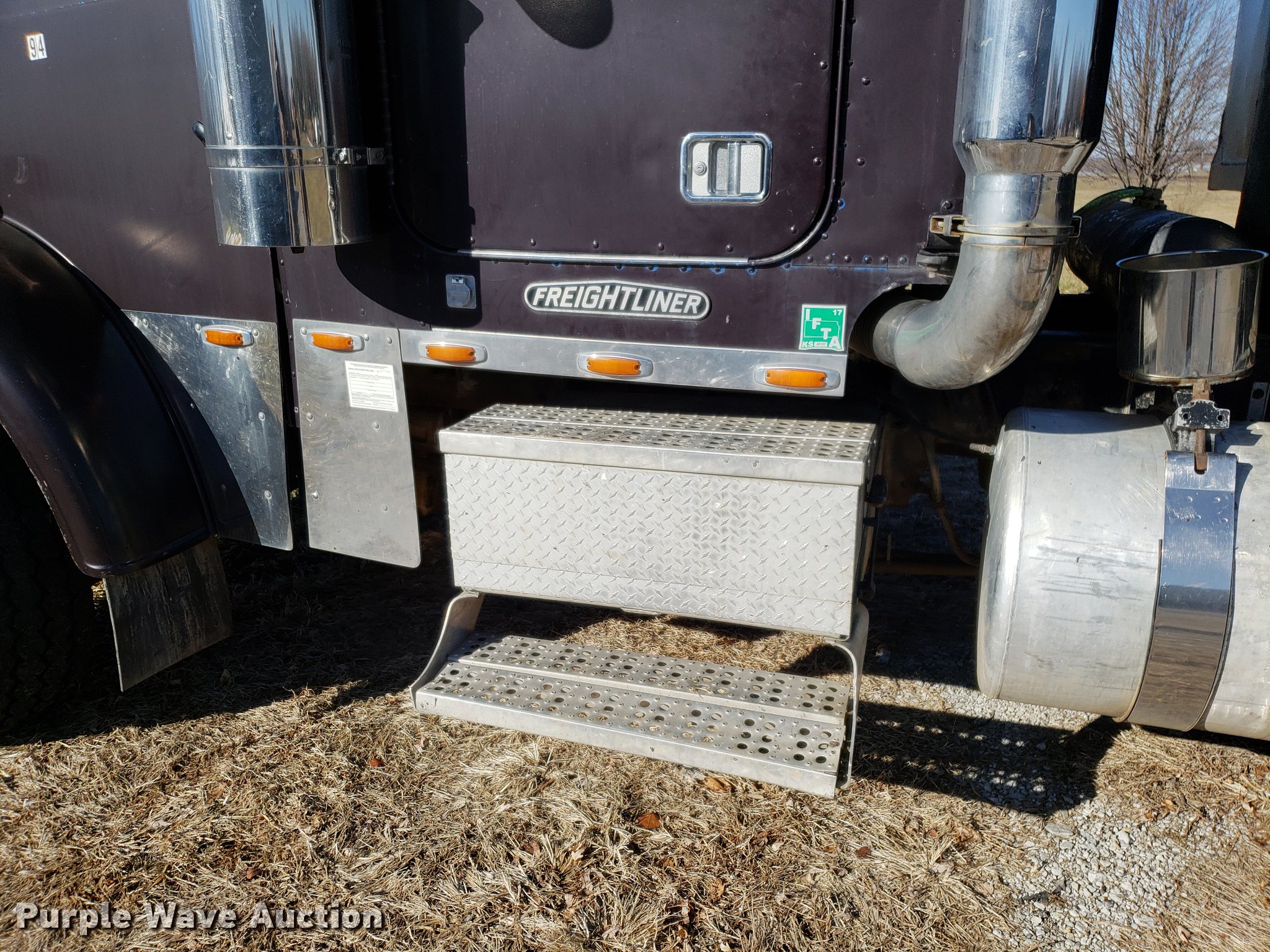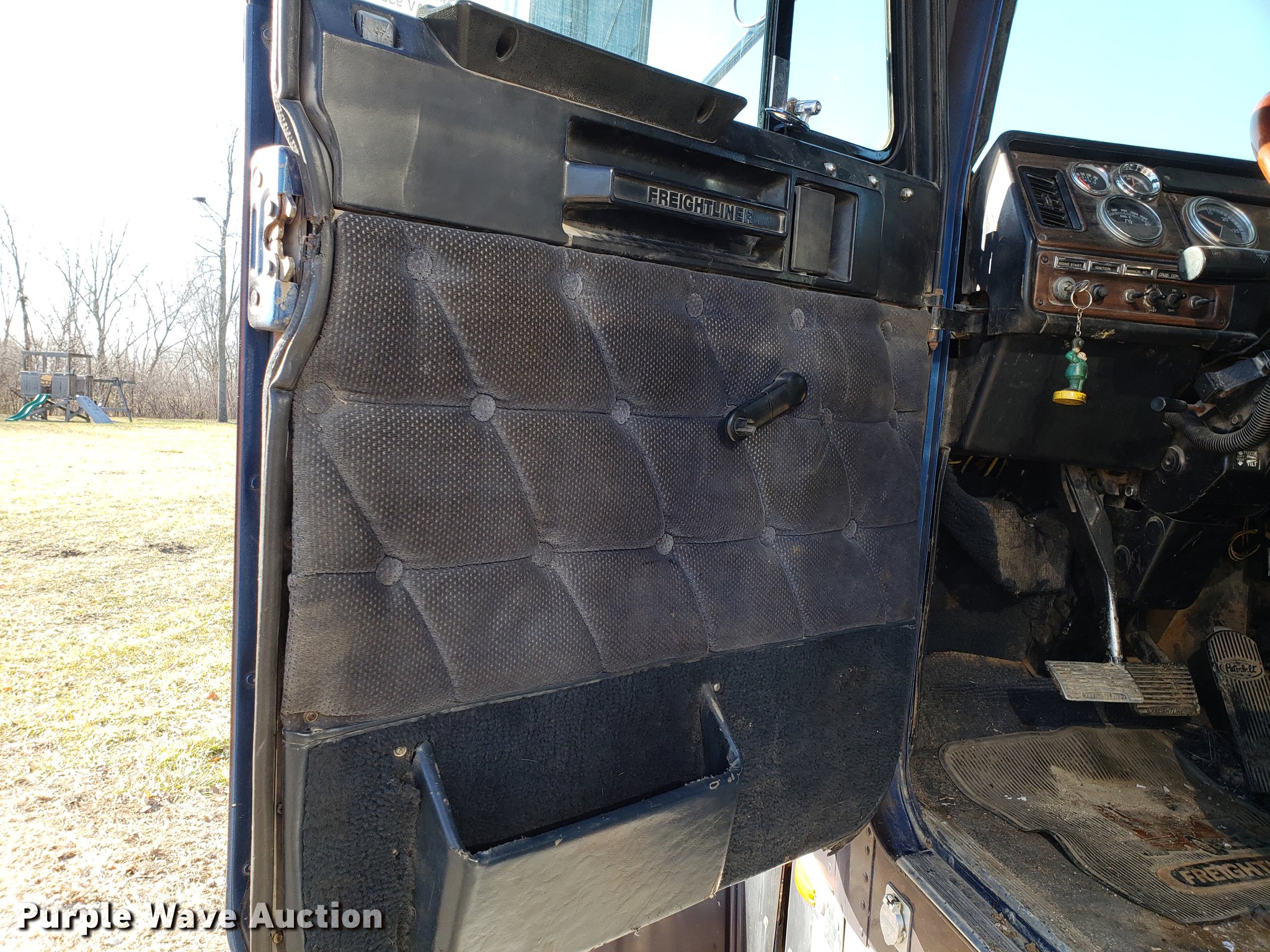 Purple Wave is selling a used Construction Dump Truck in Missouri. This item is a 1994 Freightliner FLD 120 Classic dump truck with the following: 327,759 miles on odometer, Caterpillar 3406B 14.6L L6 turbo diesel engine, 13 speed manual transmission, Triple axle, Pusher axle, AC and heat, AM/FM/CD, Air suspension seat, PTO, 16'L x 8'W dump bed, 34" side height, 23" side board height, Air operated end gate, Roll tarp, Dual fuel tanks, Dual rear exhaust stack, Air suspension, Air brakes, 315/80R22.5 front tires, 255/70R22.5 lift axle tires, 11R24.5 rear tires