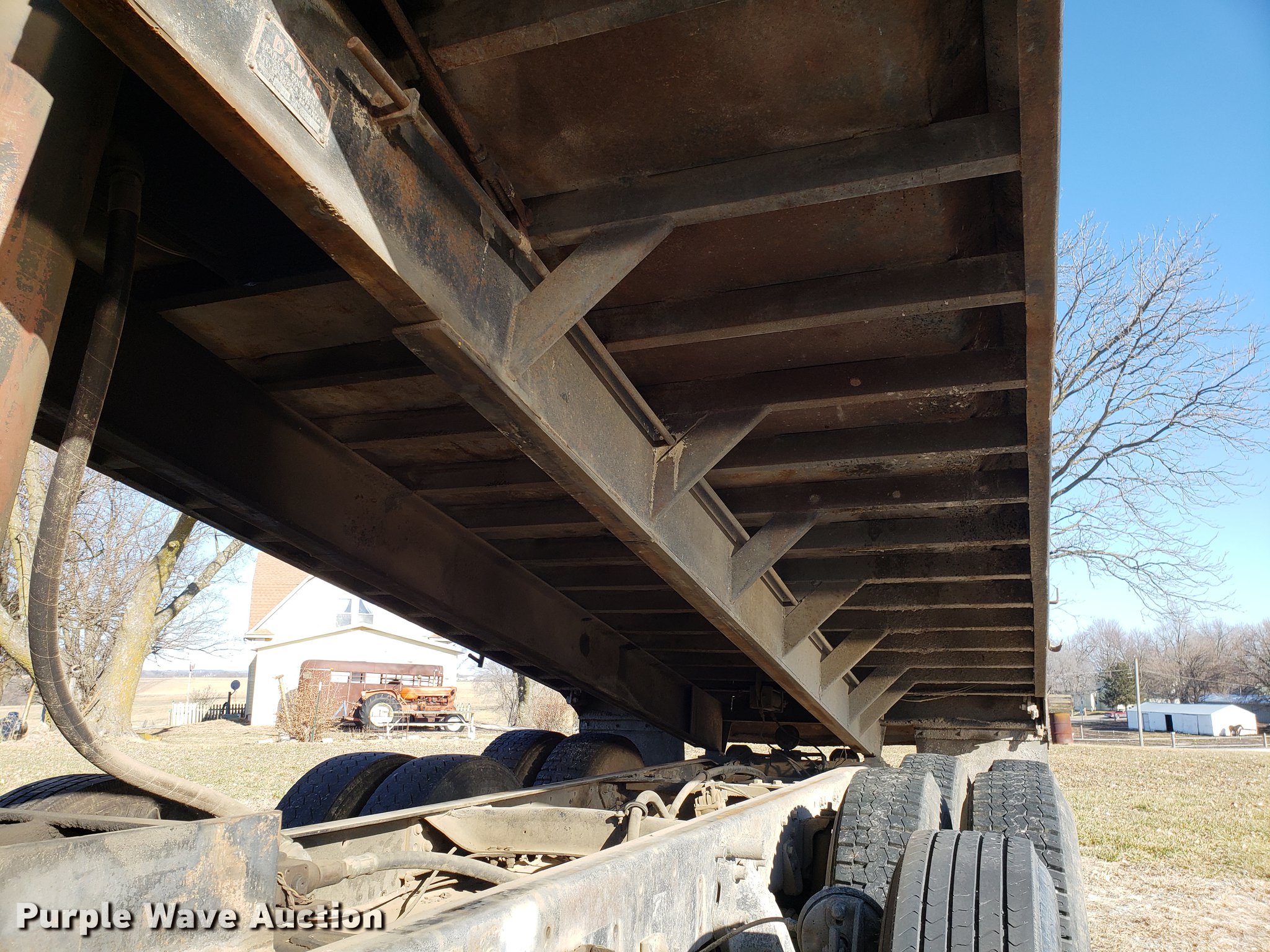 1994 Freightliner FLD 120 Classic dump truck. 327,759 miles on odometer, Caterpillar 3406B 14.6L L6 turbo diesel engine, 13 speed manual transmission, Triple axle Pusher axle, AC and heat, AM/FM/CD, Air suspension seat, PTO, 16'L x 8'W dump bed 34" side height, 23" side board height, Air operated end gate, Roll tarp, Dual fuel tanks, Dual rear exhaust stack, Air suspension, Air brakes, 315/80R22.5 front tires, 255/70R22.5 lift axle tires, 11R24.5 rear tires. Missouri title. 1FUPCXYB8RP456796. 3515 Gene Field Rd. Saint Joseph, MO 64506