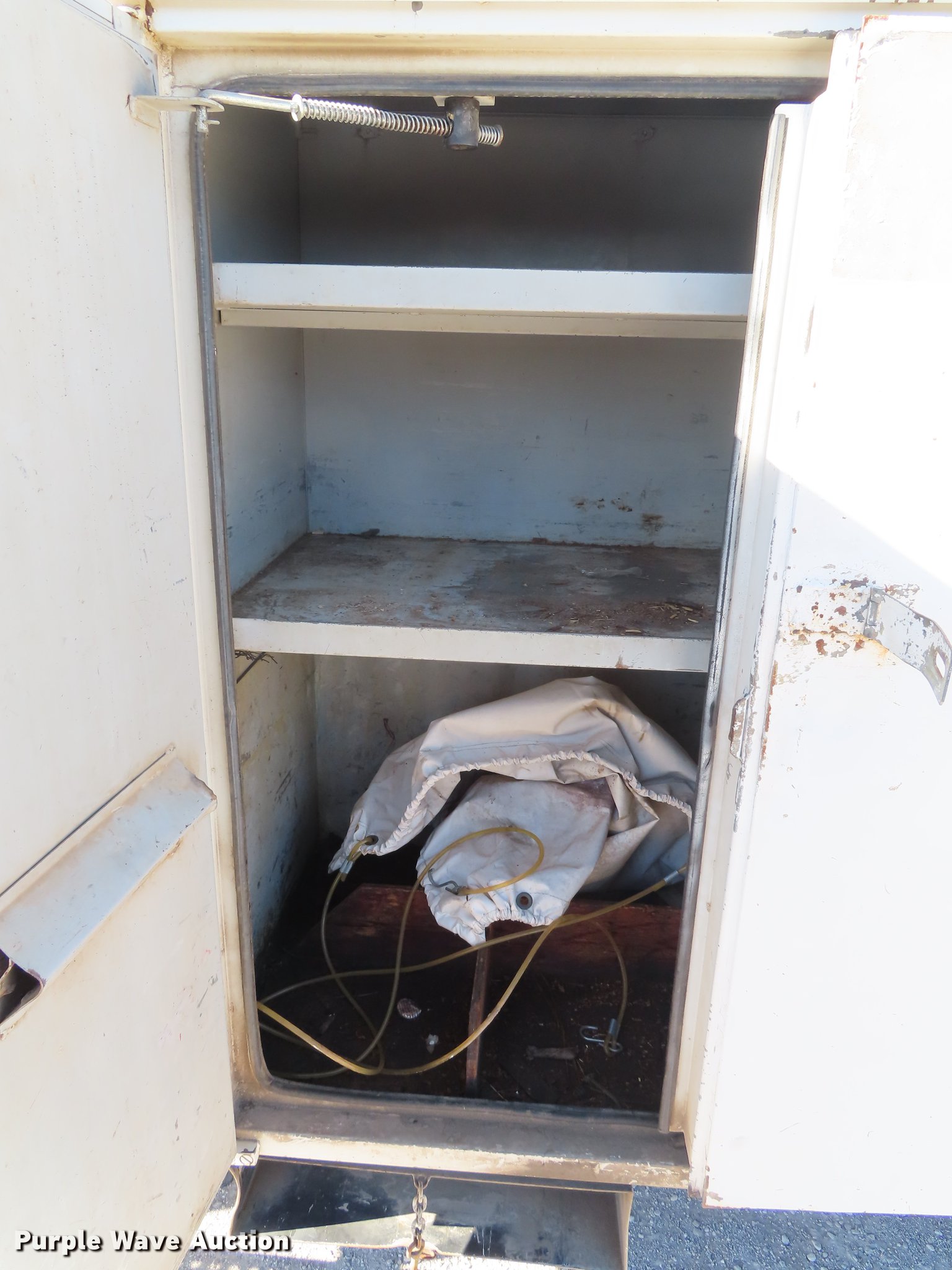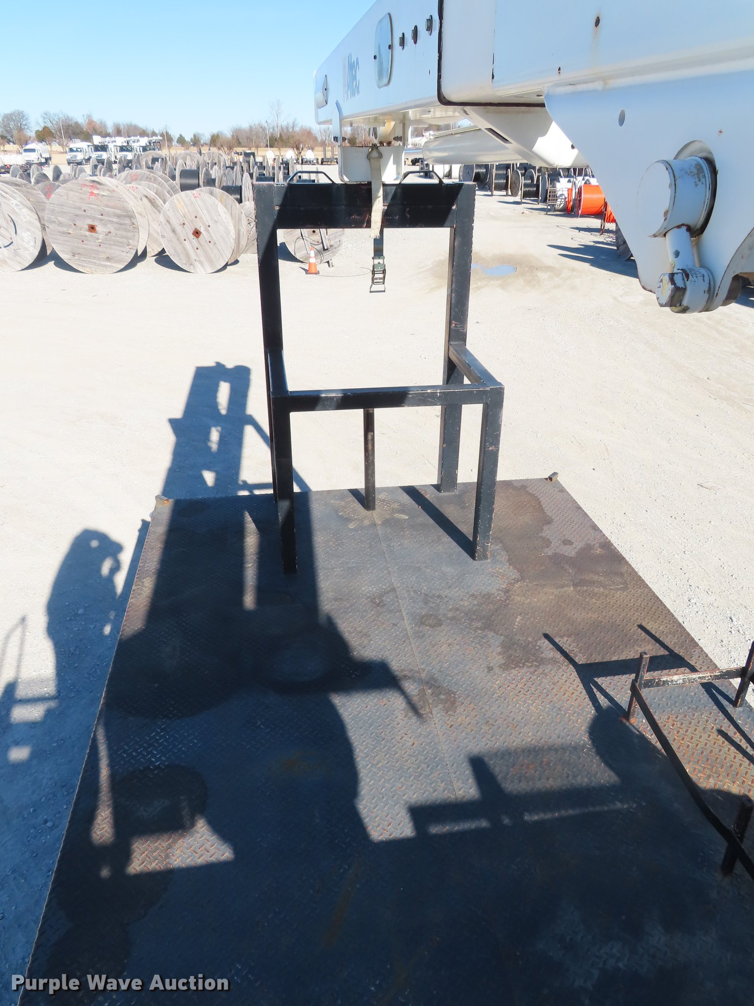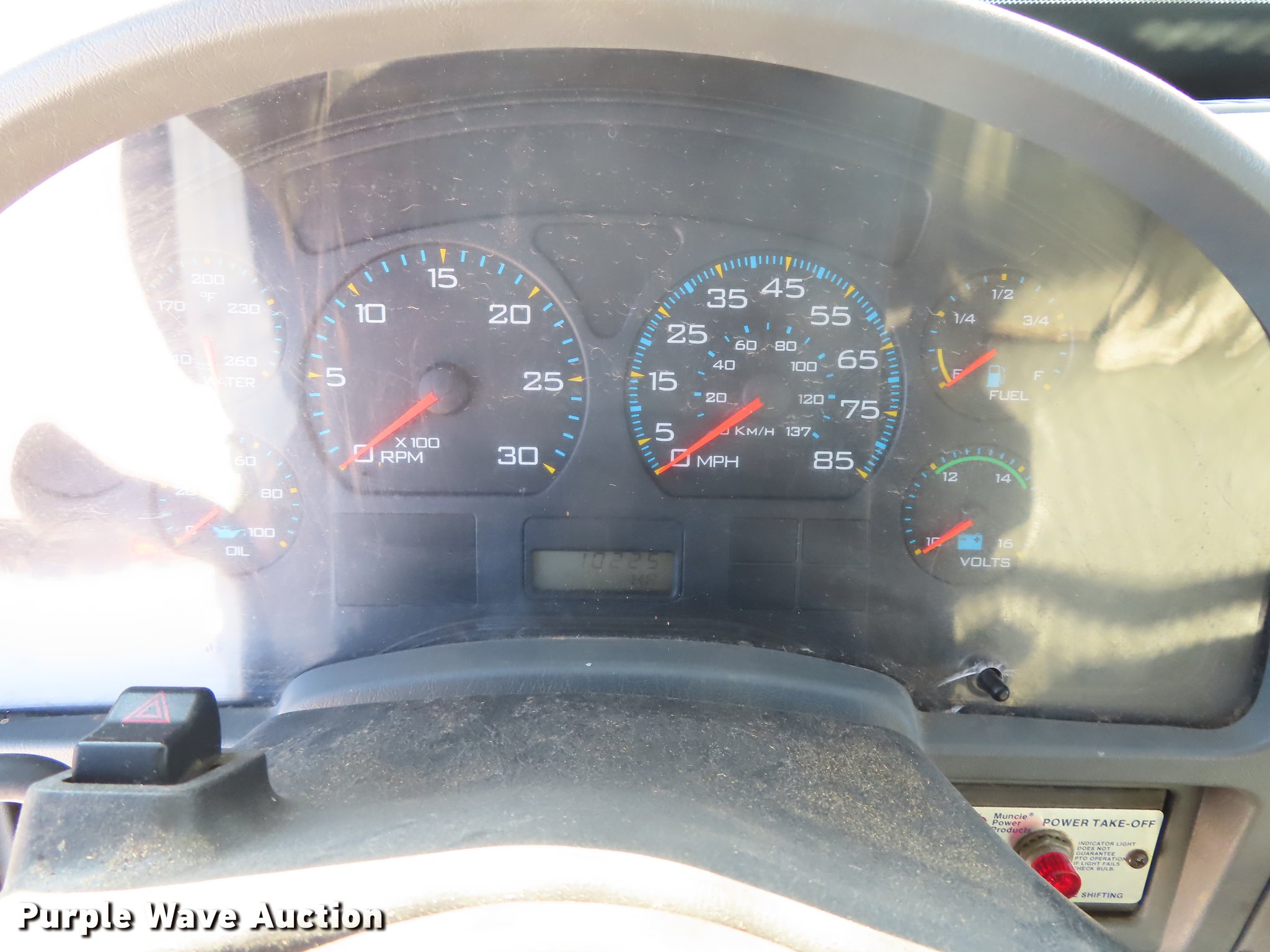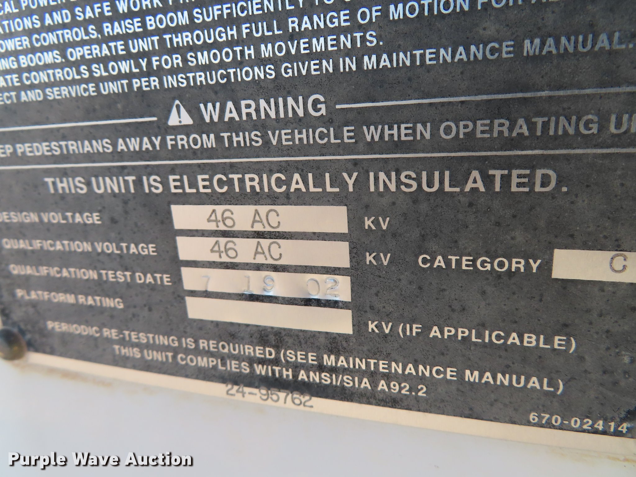 Purple Wave is selling a used Bucket Truck in Oklahoma. This item is a 2003 International 4300 bucket truck with the following: 56,768 miles on odometer, 10,224 hours on meter, International DT466 7.6L L6 turbo diesel engine, Eaton Fuller Synchro-6 six speed manual transmission, Single axle, AC and heat, AM/FM, Suspension seat, Block heater, Front tow hooks, PTO, Casco CFB flatbed, 11'L, Catwalk, Serial 02091763, Altec LRV58 boom, 58' max lift height, 350 lbs max lift capacity, Man basket, Boom rotation, Articulating and insulated boom, Serial 0602CV1537, Single fuel tank, Spring suspension, Air brakes, 11R22.5 tires, Unit# 274