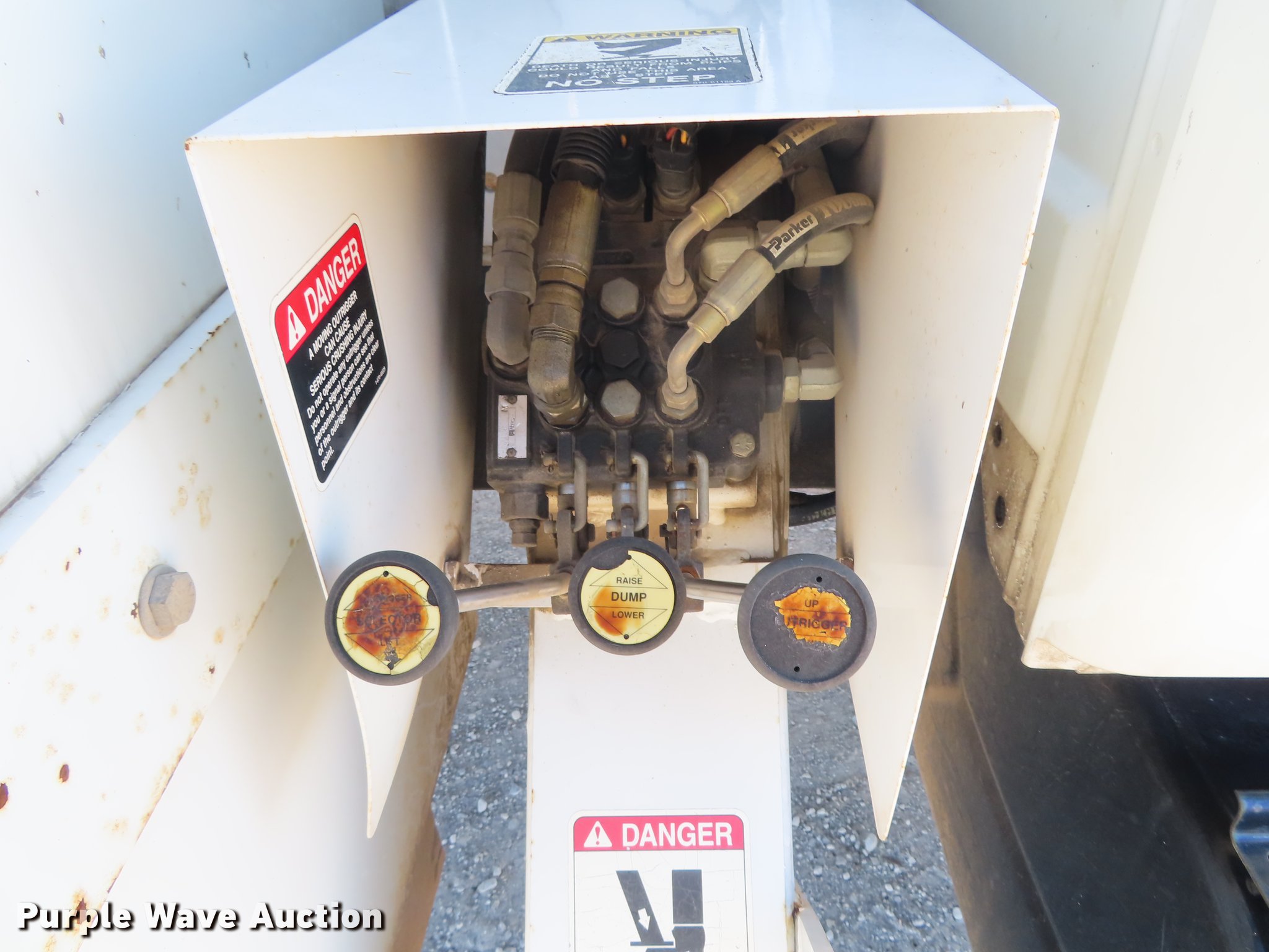 This 2003 International 4300 bucket truck will sell to the highest bidder regardless of price.