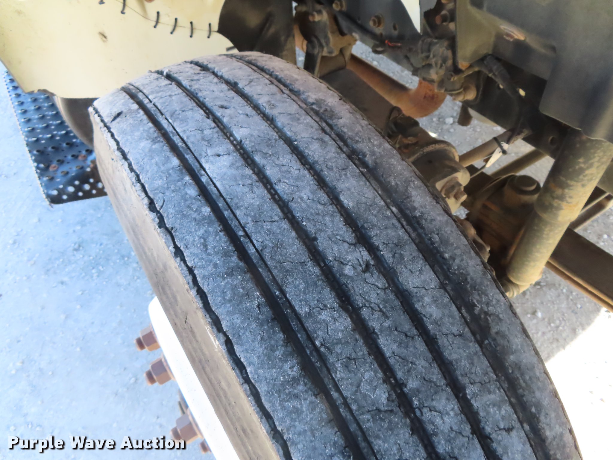 Purple Wave is selling a used Construction Dump Truck in Oklahoma. This item is a 2002 International 4300 chipper truck with the following: 46,266 miles on odometer, 8,106 hours on meter, International DT466 7.6L L6 turbo diesel engine, Eaton Fuller Synchro-6 six speed manual transmission, Single axle, AC and heat, Tilt, Cruise, AM/FM/Cassette, Air suspension seat, PTO, Arbortech steel chip bed, 11'L x 96"W, Hydraulic dump, Manual end gate, Pintle hitch, Trailer wiring, Spring suspension, Air brakes, 245/75R22.5 front tires, 11R22.5 rear tires, Unit# 277