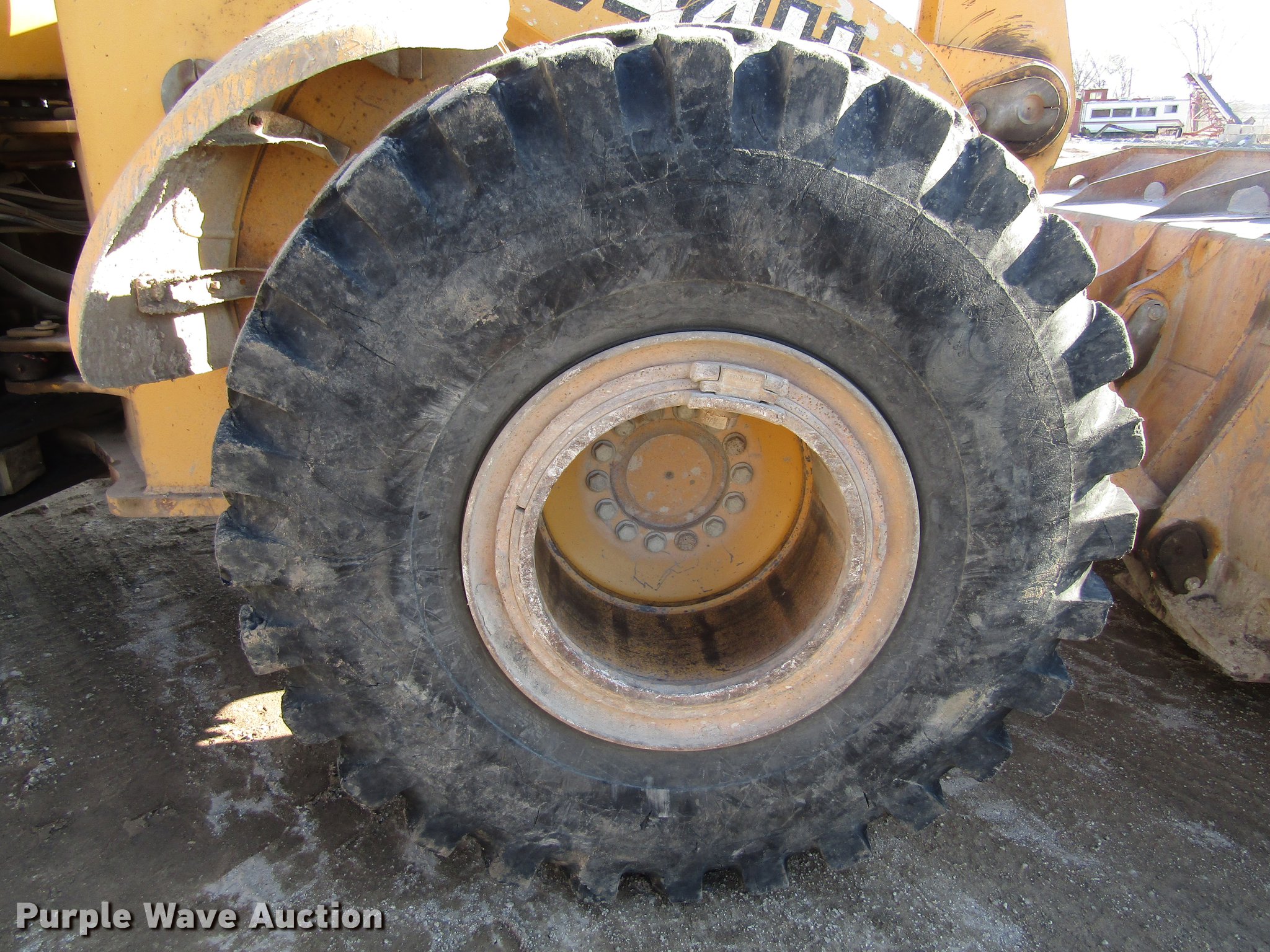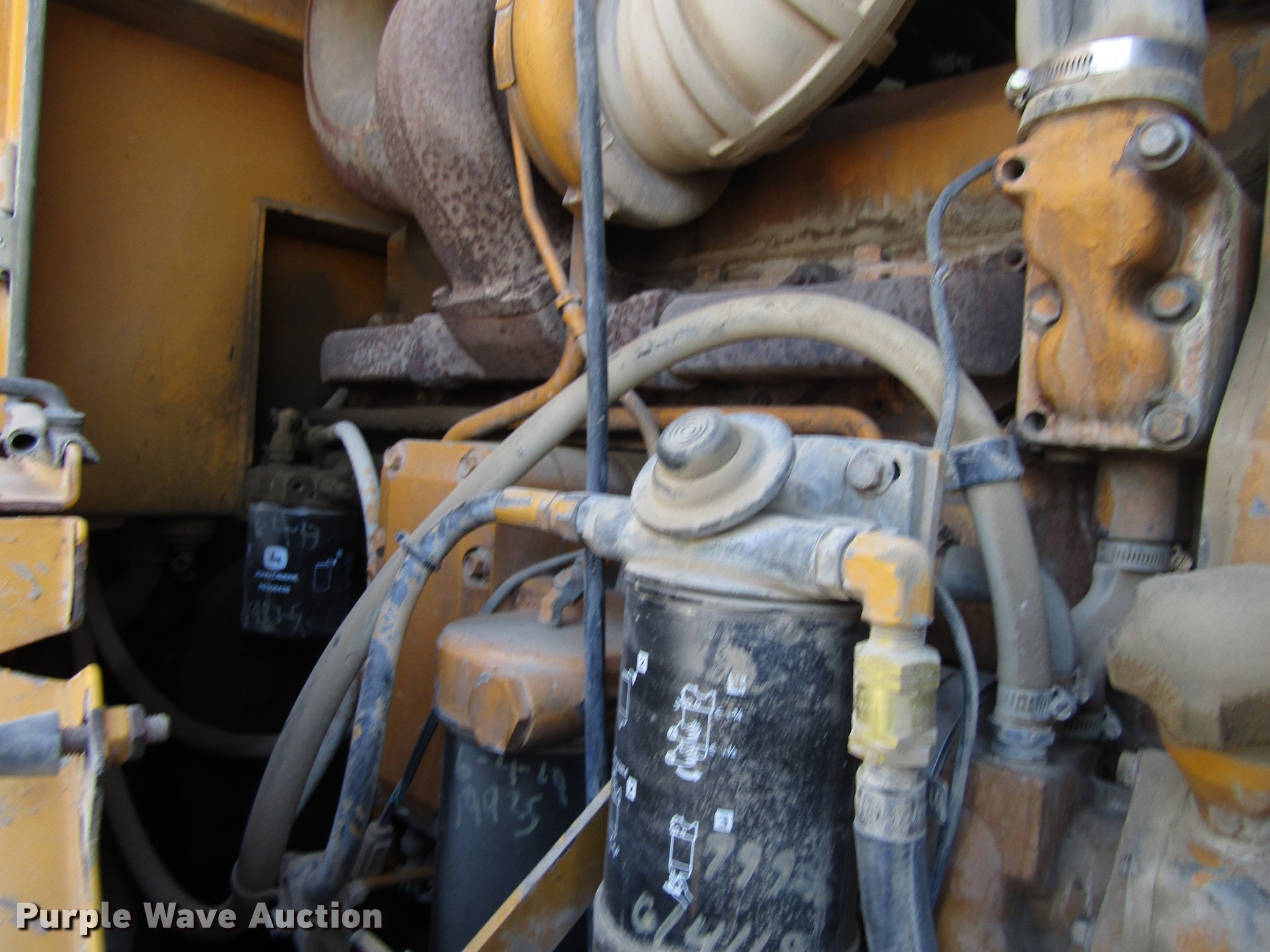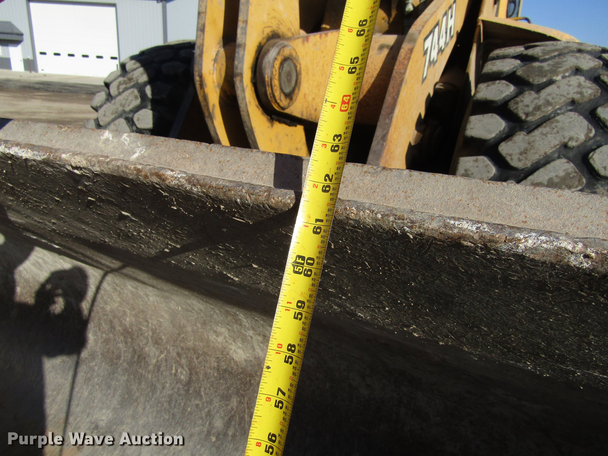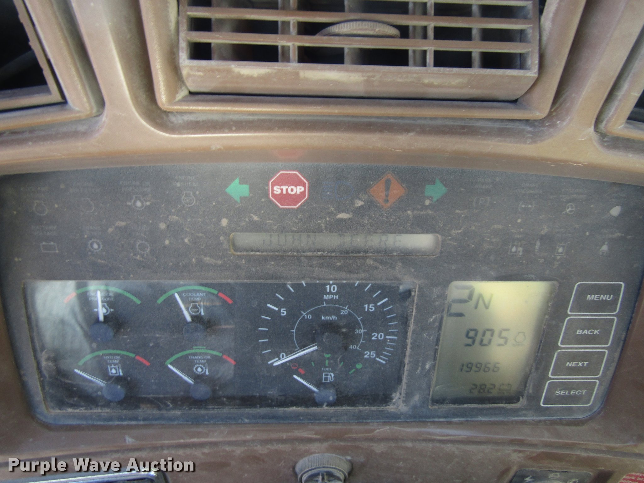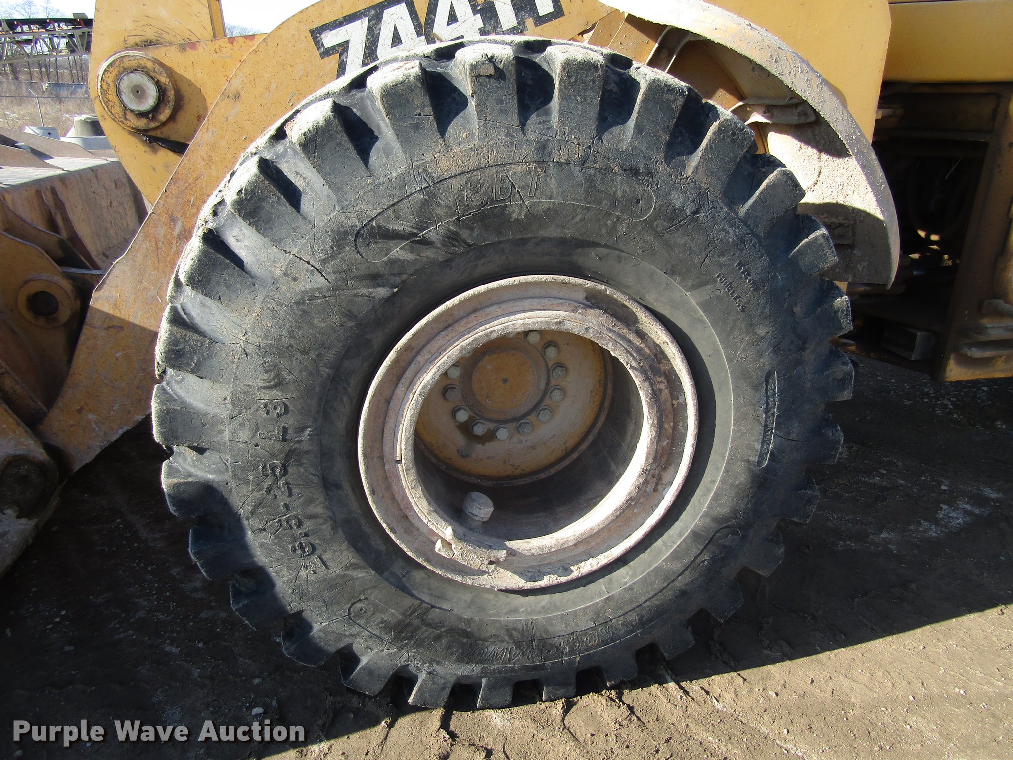 Purple Wave is selling a used Wheel Loader in Illinois. This item is a 1998 John Deere 744H wheel loader with the following: 19,966 hours on meter, John Deere 6125A six cylinder turbo diesel engine, Powershift transmission, 4F-3R gears, Enclosed cab, AC and heat, Joystick bucket controls, Front and rear work lights, Backup alarm, 126"W general purpose bucket, Bolt-on cutting edge, 26.5-25 tires, Center joint issues, Serial DW744HX568537