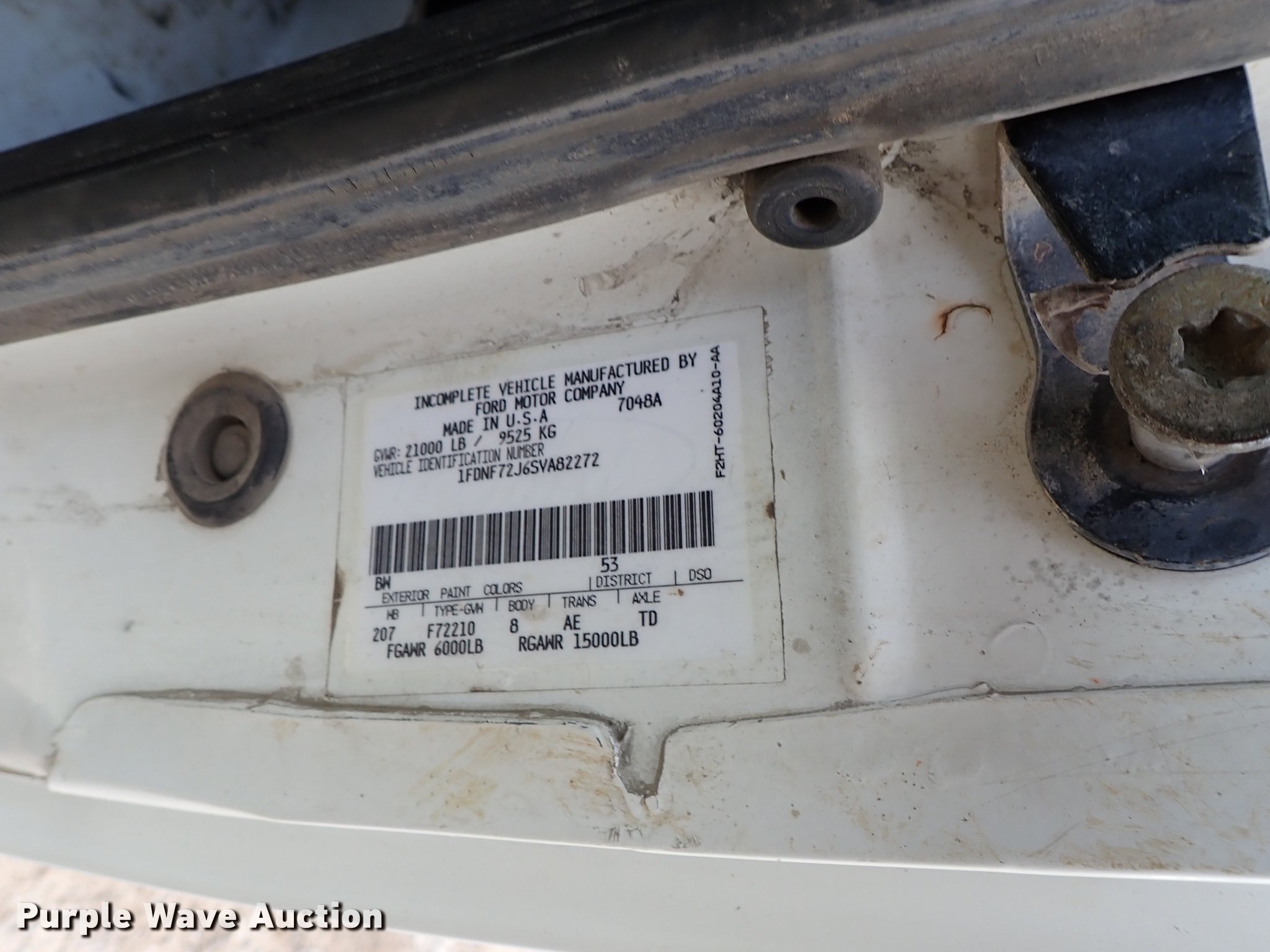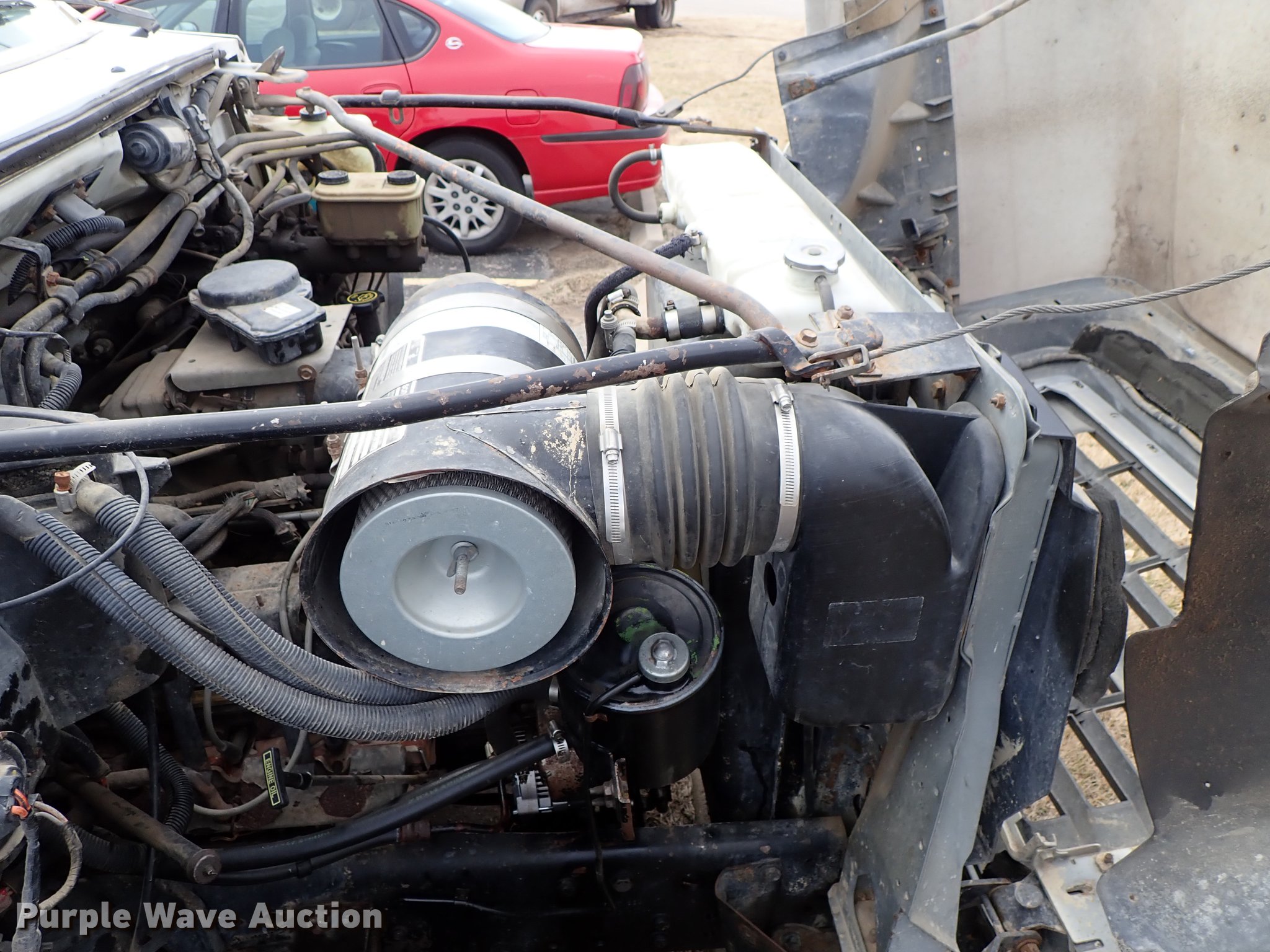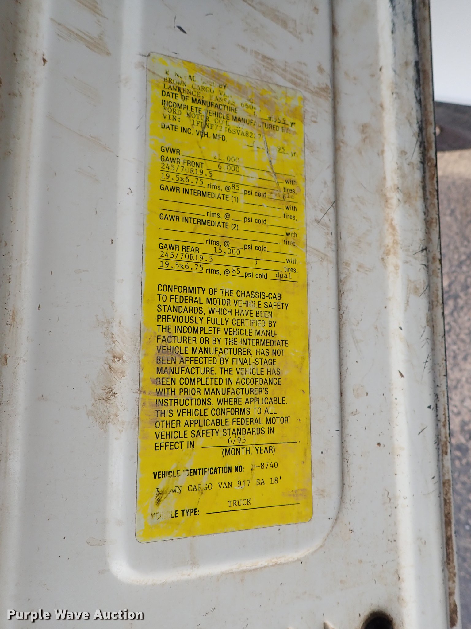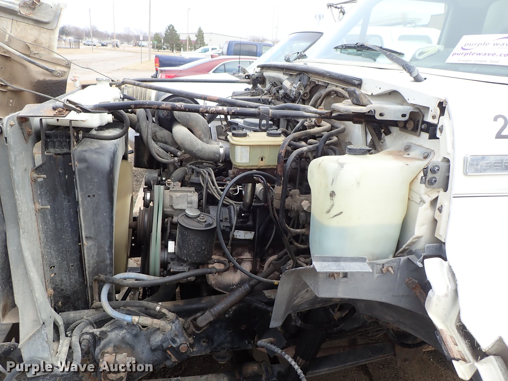 Purple Wave is selling a used Construction Dump Truck in Kansas. This item is a 1995 Ford F700 dump truck with the following: 205,464 miles on odometer, 7.0L V8 gas engine, Automatic transmission, Single axle, Heat, Manual windows and locks, Vinyl interior, 10'L x 92"W steel dump bed, In-cab controls, Receiver hitch, Trailer wiring, Spring suspension, Air brakes, 207" wheelbase, 245/70R19.5 tires, GVWR 21,000 lbs, Radiator leak