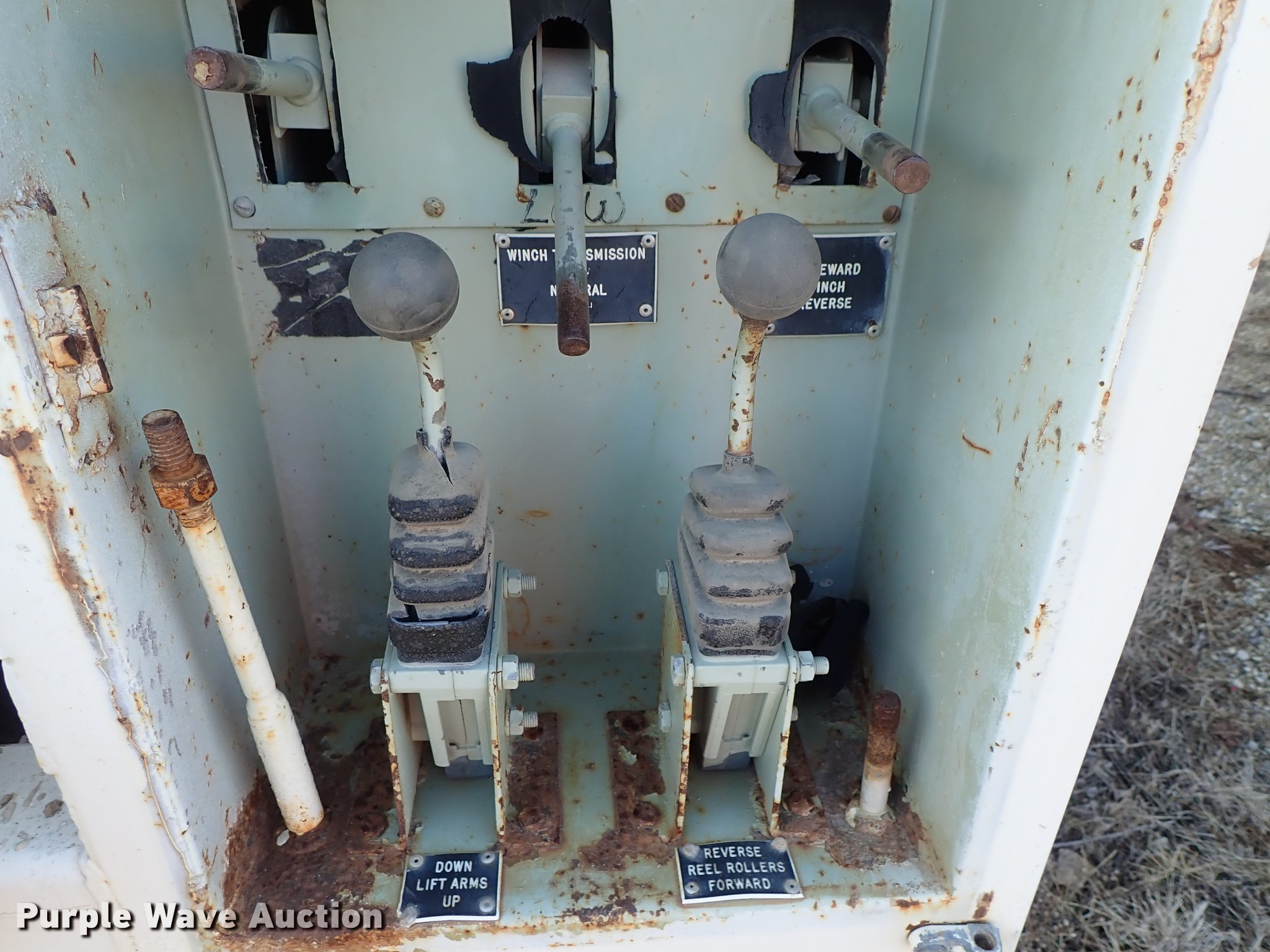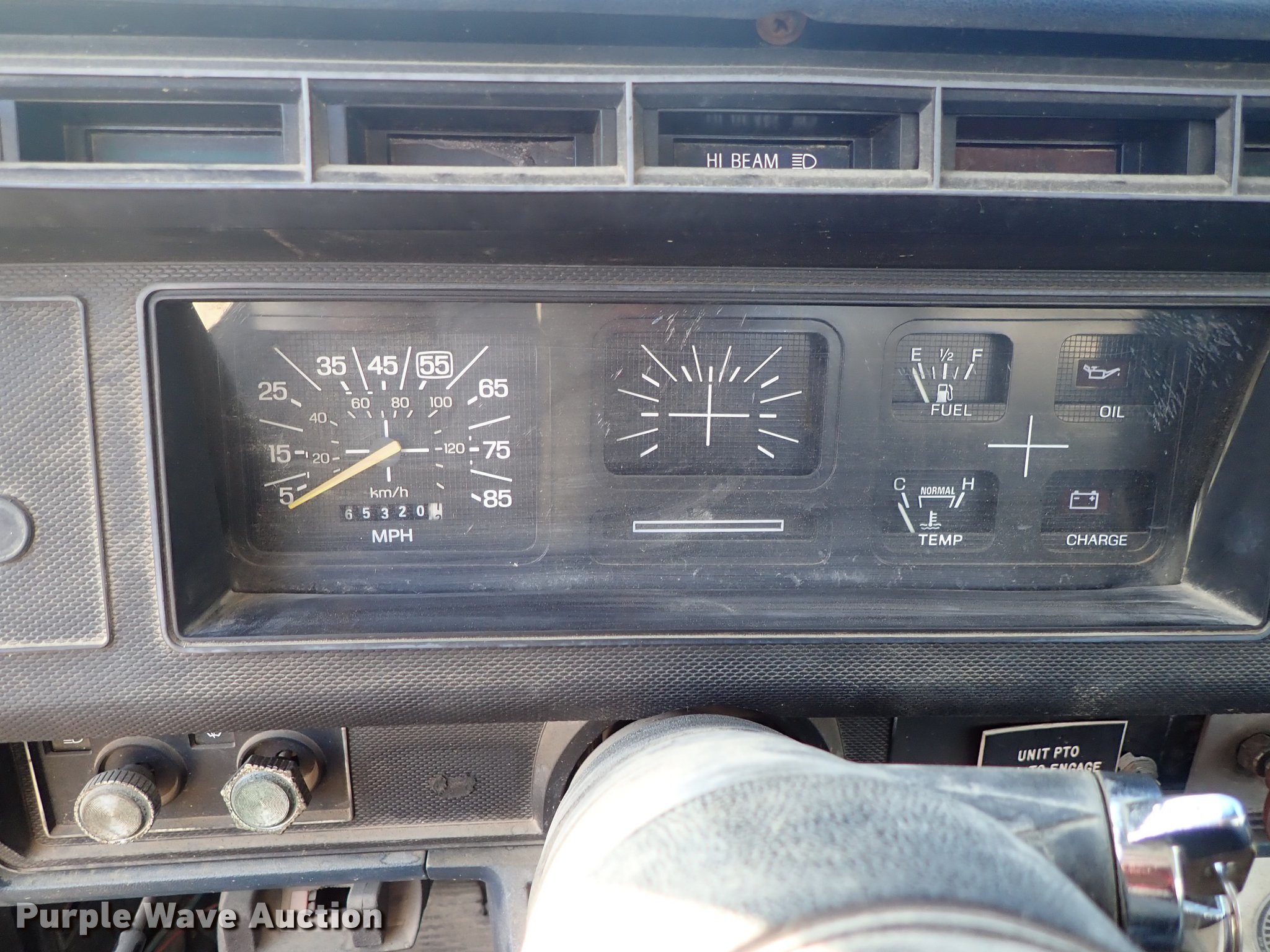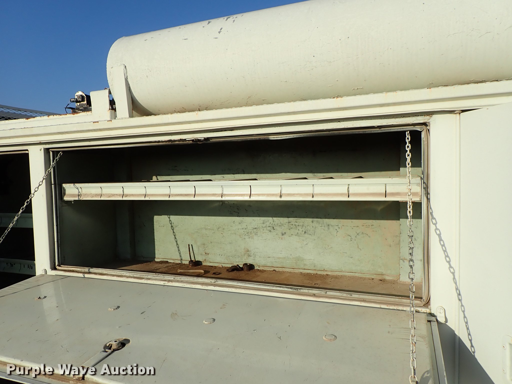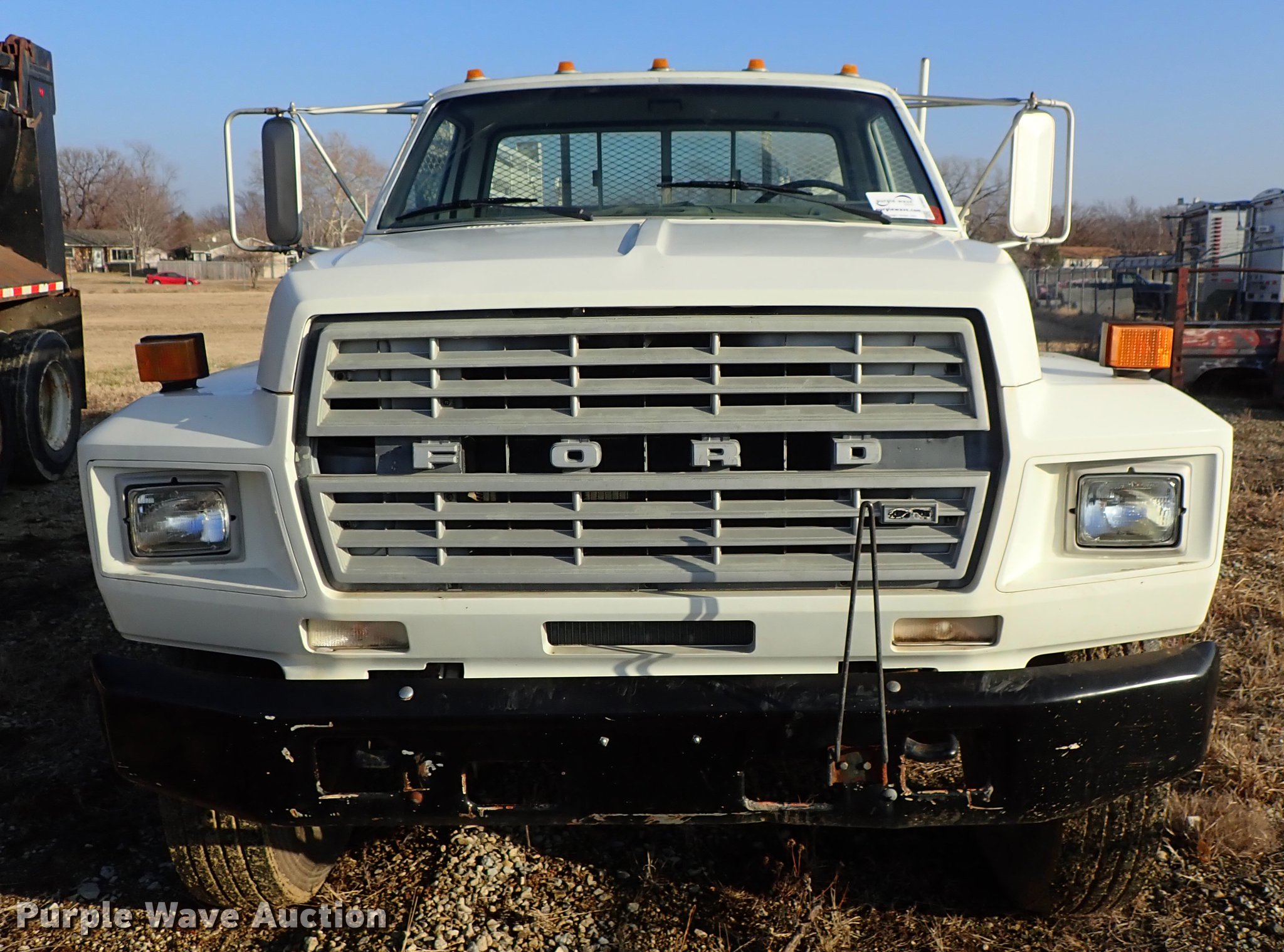 Purple Wave is selling a used Service Truck in Kansas. This item is a 1982 Ford F700 utility truck with the following: 65,320 miles on odometer, 6.1L V8 gas engine, Five speed manual transmission, Two speed rear end, Single axle, Heat, Chelsea PTO, Duncan utility bed, 139"L x 94"W, Winch, Reel carrier, Rear control box, Pintle hitch, Outriggers, Storage, 171" wheelbase, 11R22.5 tires, GVWR 27,500 lbs, Carburetor needs replaced