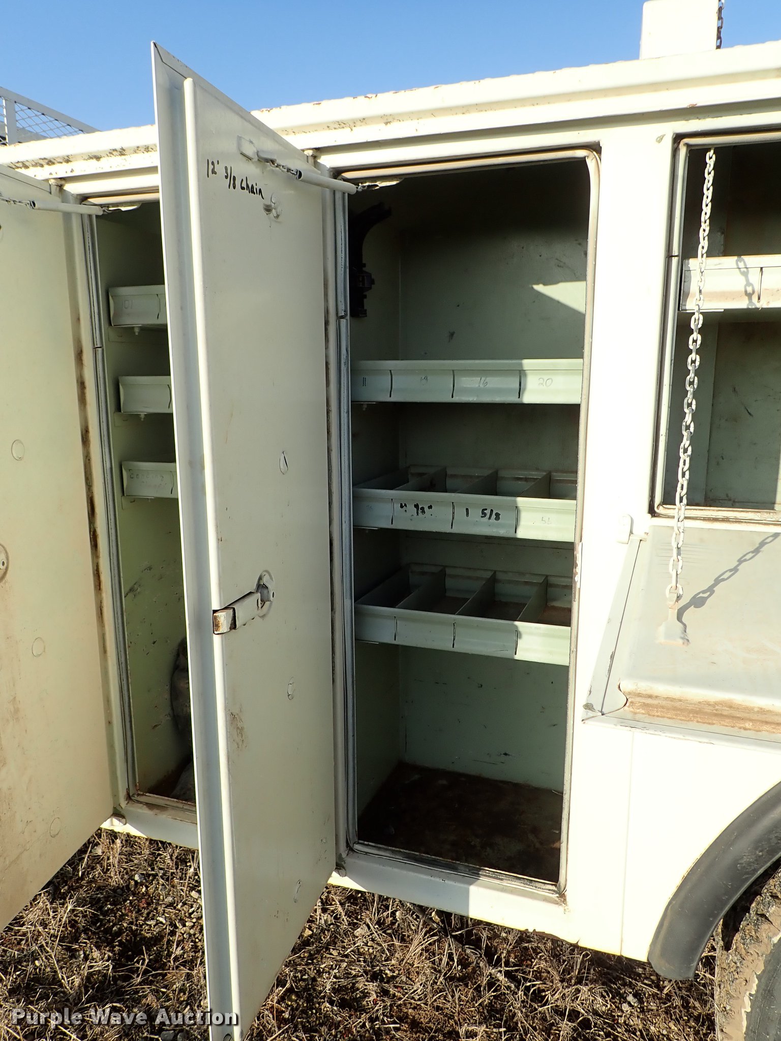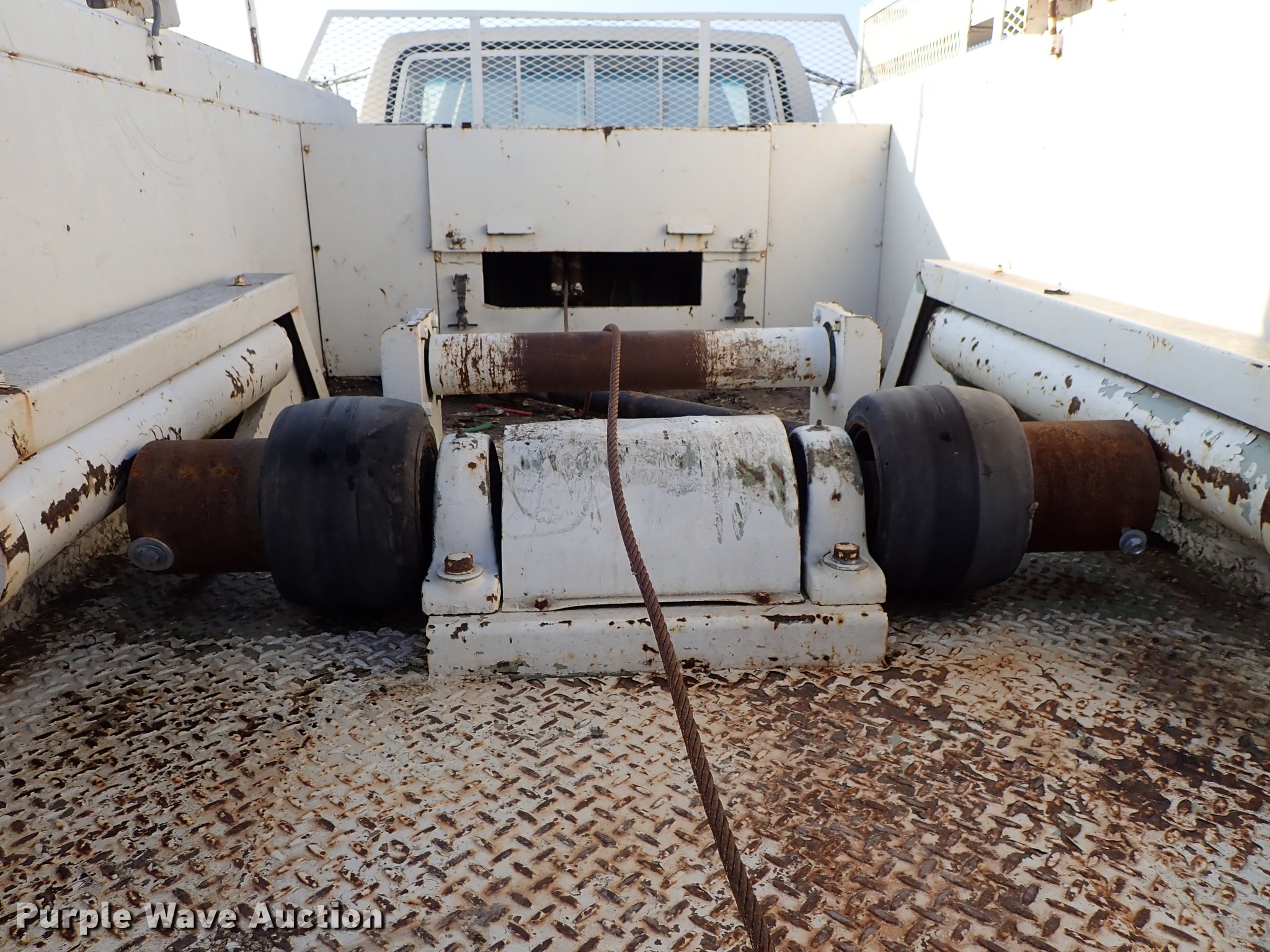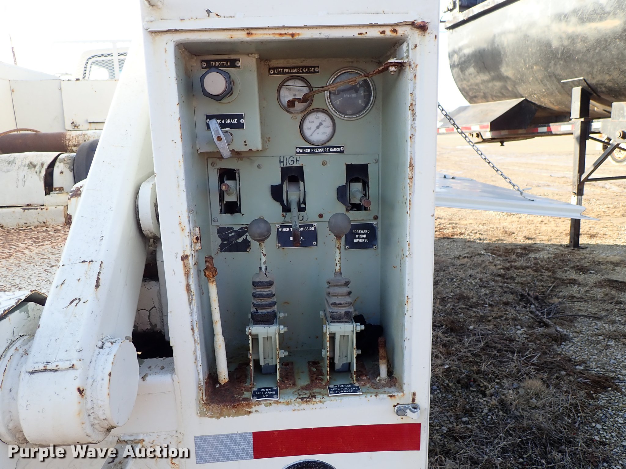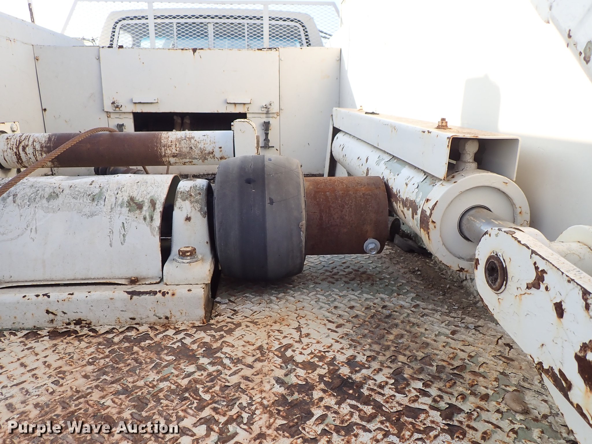 Purple Wave is selling a used Service Truck in Kansas. This item is a 1982 Ford F700 utility truck with the following: 65,320 miles on odometer, 6.1L V8 gas engine, Five speed manual transmission, Two speed rear end, Single axle, Heat, Chelsea PTO, Duncan utility bed, 139"L x 94"W, Winch, Reel carrier, Rear control box, Pintle hitch, Outriggers, Storage, 171" wheelbase, 11R22.5 tires, GVWR 27,500 lbs, Carburetor needs replaced