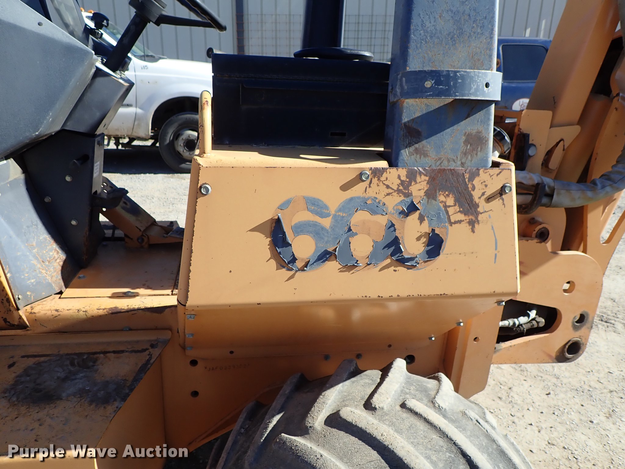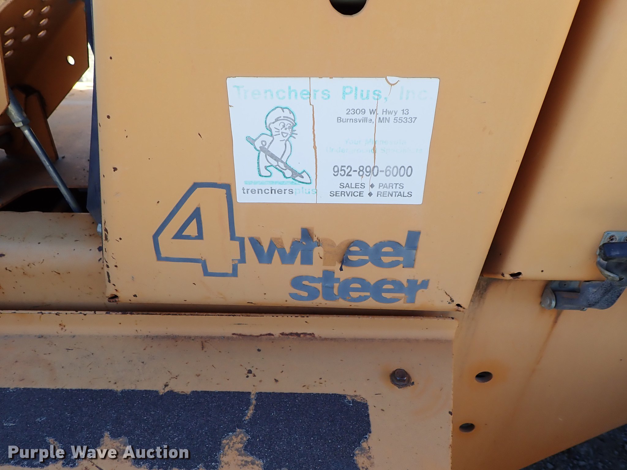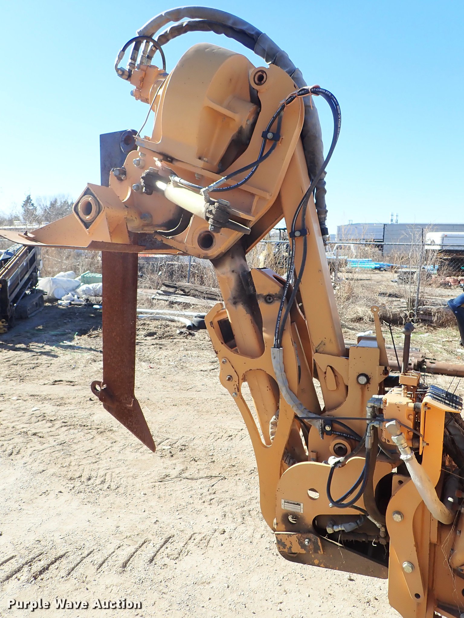 Purple Wave is selling a used Cable Plow in Kansas. This item is a 2000 Case 660 cable plow with the following: 1,888 hours on meter, Case 4-390 four cylinder diesel engine, 60 HP, Serial 46037901, Hydrostatic transmission, Four wheel steer, Speed select switch, Case 860 vibratory plow, Pull plow blade, 30" depth, Boom angle and plow angle adjust, Serial JAF0320298, Case D125 backhoe, 45" stick length, 16.5"W bucket, (4) teeth, Outriggers, 6'W six-way backfill blade, Additional drop blade, 1x30x9R, Unused, 31x15.50-15 tires, Serial JAF0339322