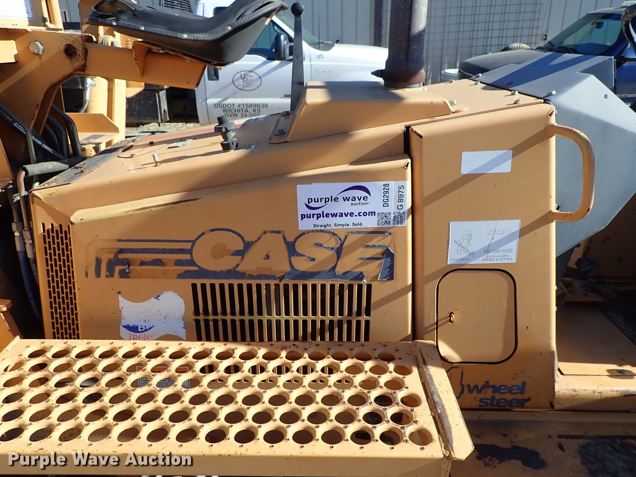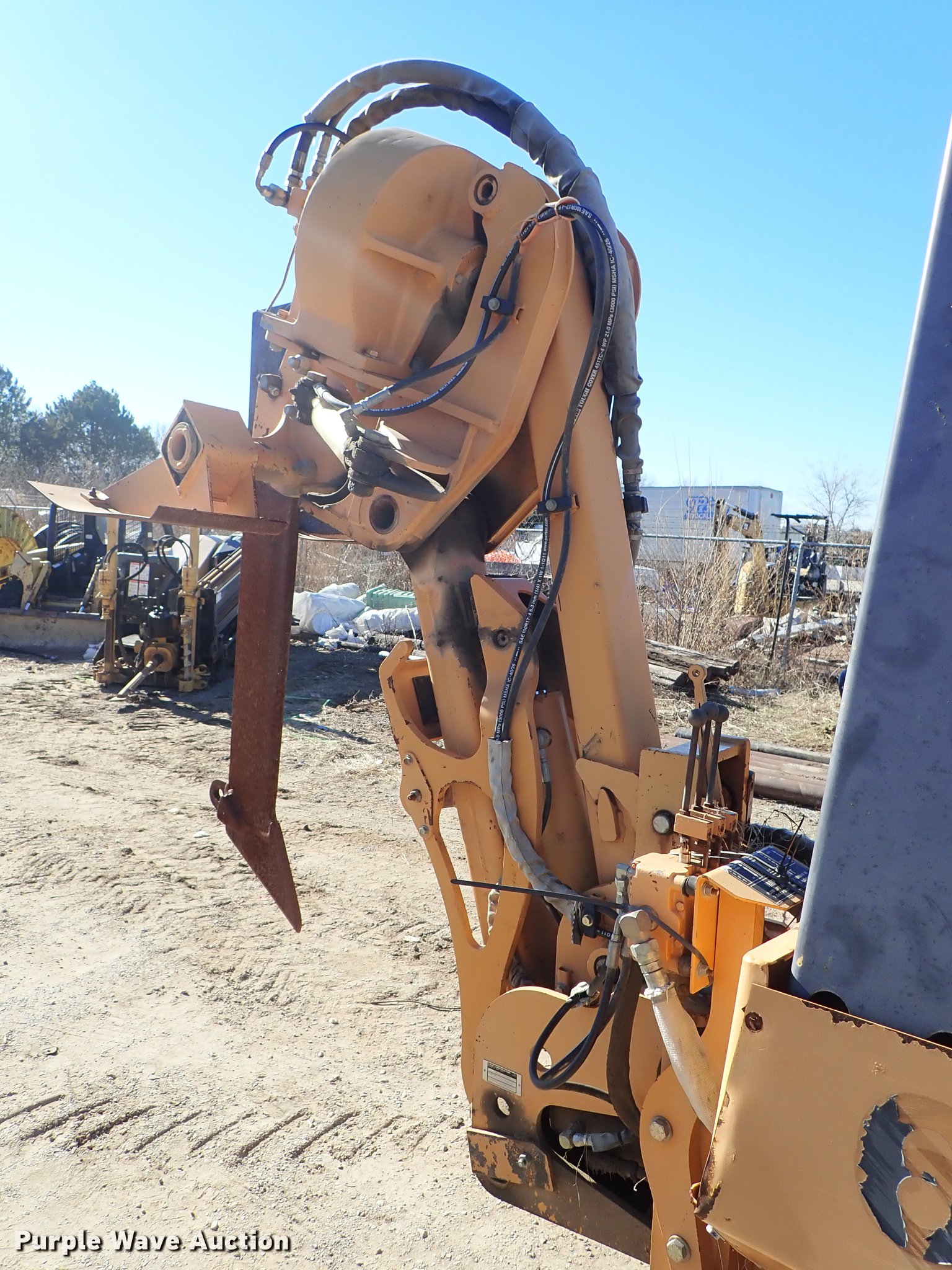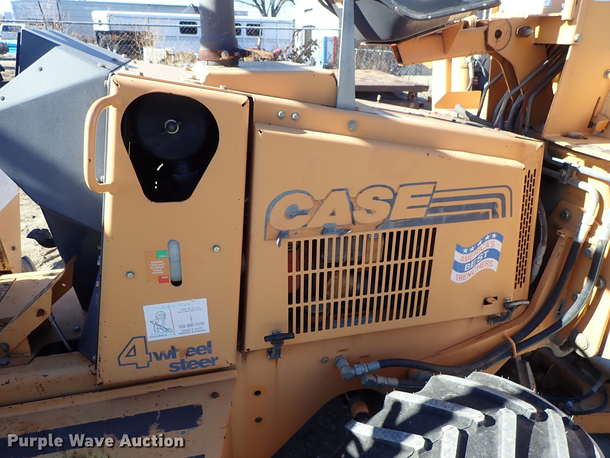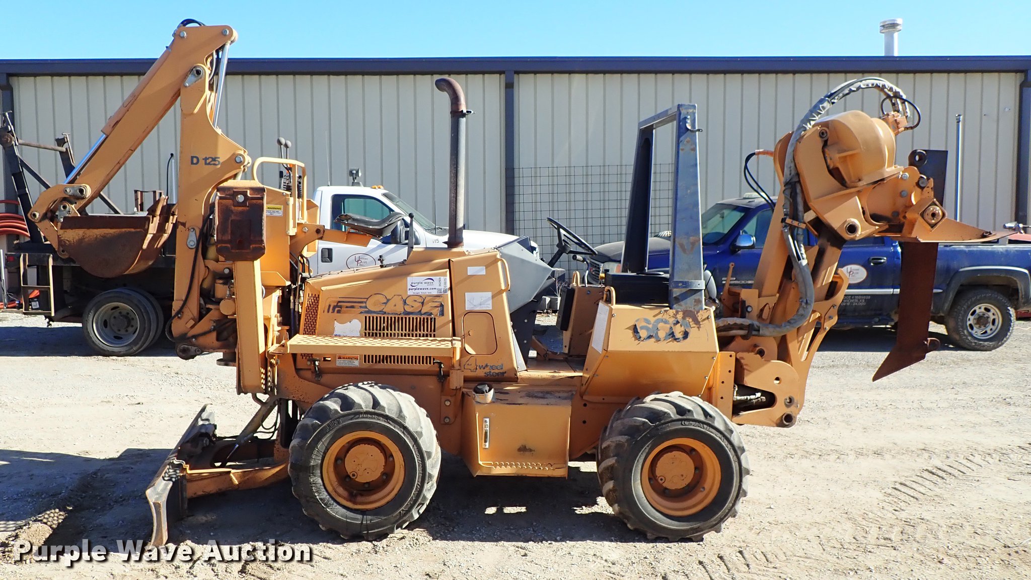 Purple Wave is selling a used Cable Plow in Kansas. This item is a 2000 Case 660 cable plow with the following: 1,888 hours on meter, Case 4-390 four cylinder diesel engine, 60 HP, Serial 46037901, Hydrostatic transmission, Four wheel steer, Speed select switch, Case 860 vibratory plow, Pull plow blade, 30" depth, Boom angle and plow angle adjust, Serial JAF0320298, Case D125 backhoe, 45" stick length, 16.5"W bucket, (4) teeth, Outriggers, 6'W six-way backfill blade, Additional drop blade, 1x30x9R, Unused, 31x15.50-15 tires, Serial JAF0339322