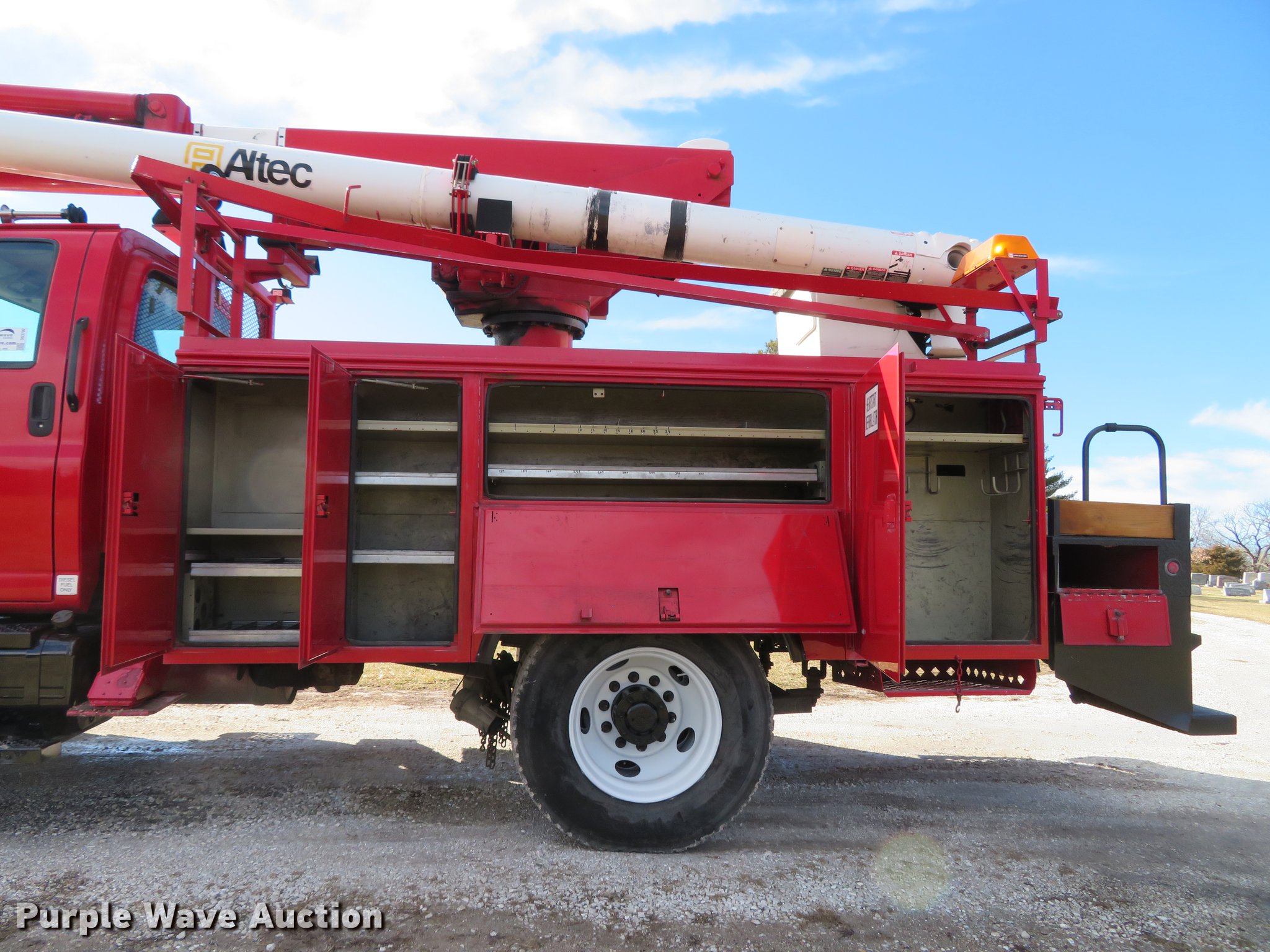 2007 Chevrolet C8500 bucket truck. 124,056 miles on odometer, 9,813 hours on meter, 1,467 PTO hours on meter, Caterpillar C7 7.2L L6 turbo diesel engine, Allison automatic transmission, Single axle, AC and heat, AM/FM, Heated mirrors, Block heater, PTO, Backup alarm, Beacon light, Knapheide 6136HC utility bed 11'L, Shelving, Compartment lights, Work lights, 24"W rear bumper, Power inverter, 2007 Altec L42P boom 400 lbs maximum lift capacity, 42' maximum lift height, Man basket Ground and platform controls, Boom rotation, Articulating insulated boom, Grounding cable reel, (2) outriggers, Certification valid through December 2018, Single fuel tank, Pintle hitch, Rear air connections, 152" wheelbase, Spring suspension, Air brakes, 11R22.5 tires On spot traction aid chains, GVWR 33,000 lbs, ABS light on. Missouri title. Seller is a Missouri licensed motor vehicle dealer. Title will be assigned and distributed by the dealer. Please contact the seller for distribution questions. Title distribution may be delayed up to 30 days from verification of funds. 1GBM8C1C97F406830. Fruendly Auto Source, Inc.. 2177 W Outer Hwy 61. Moscow Mills, MO 63362