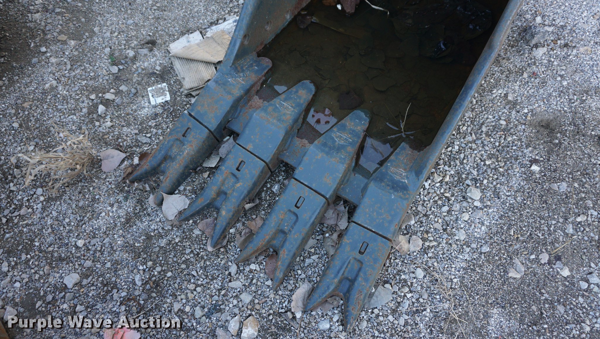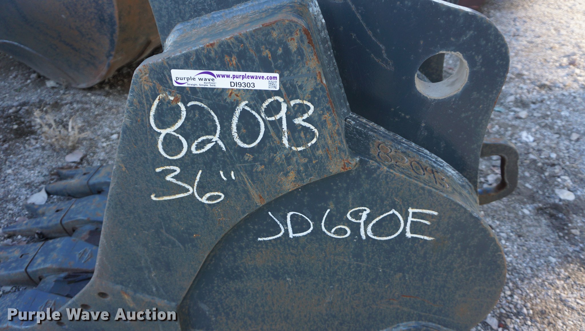 Purple Wave is selling a used Excavator Attach. in Kansas. This item is a 36"W four tooth excavator bucket with the following: 3 1/4" pin diameter, 12" bracket width, 18.5" on center, Fits John Deere 690E excavator