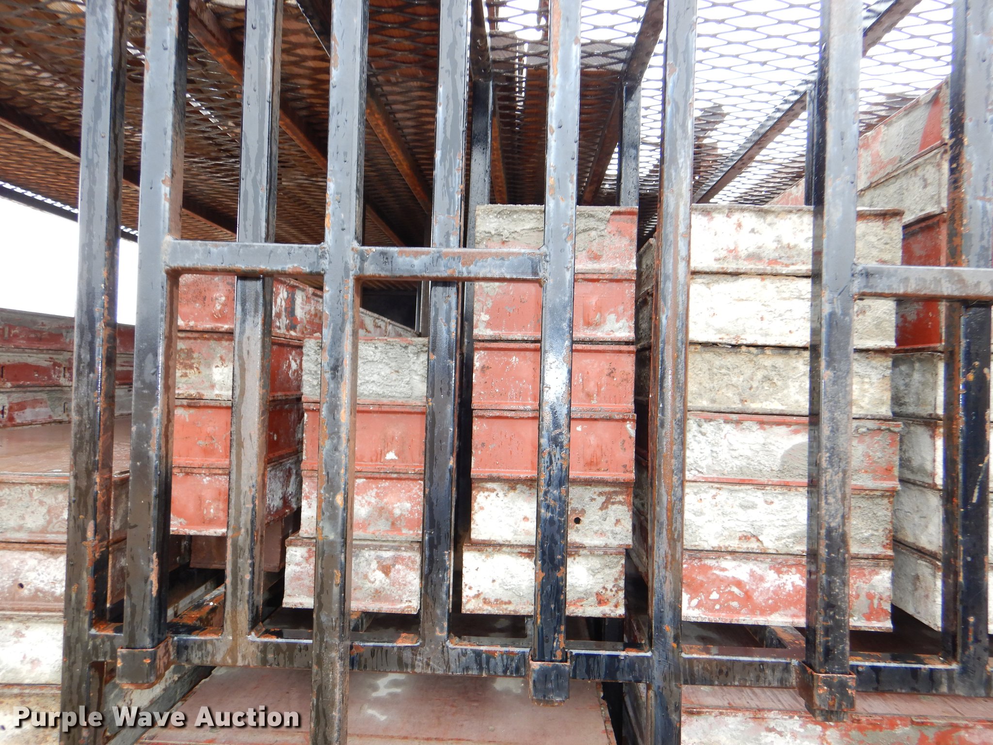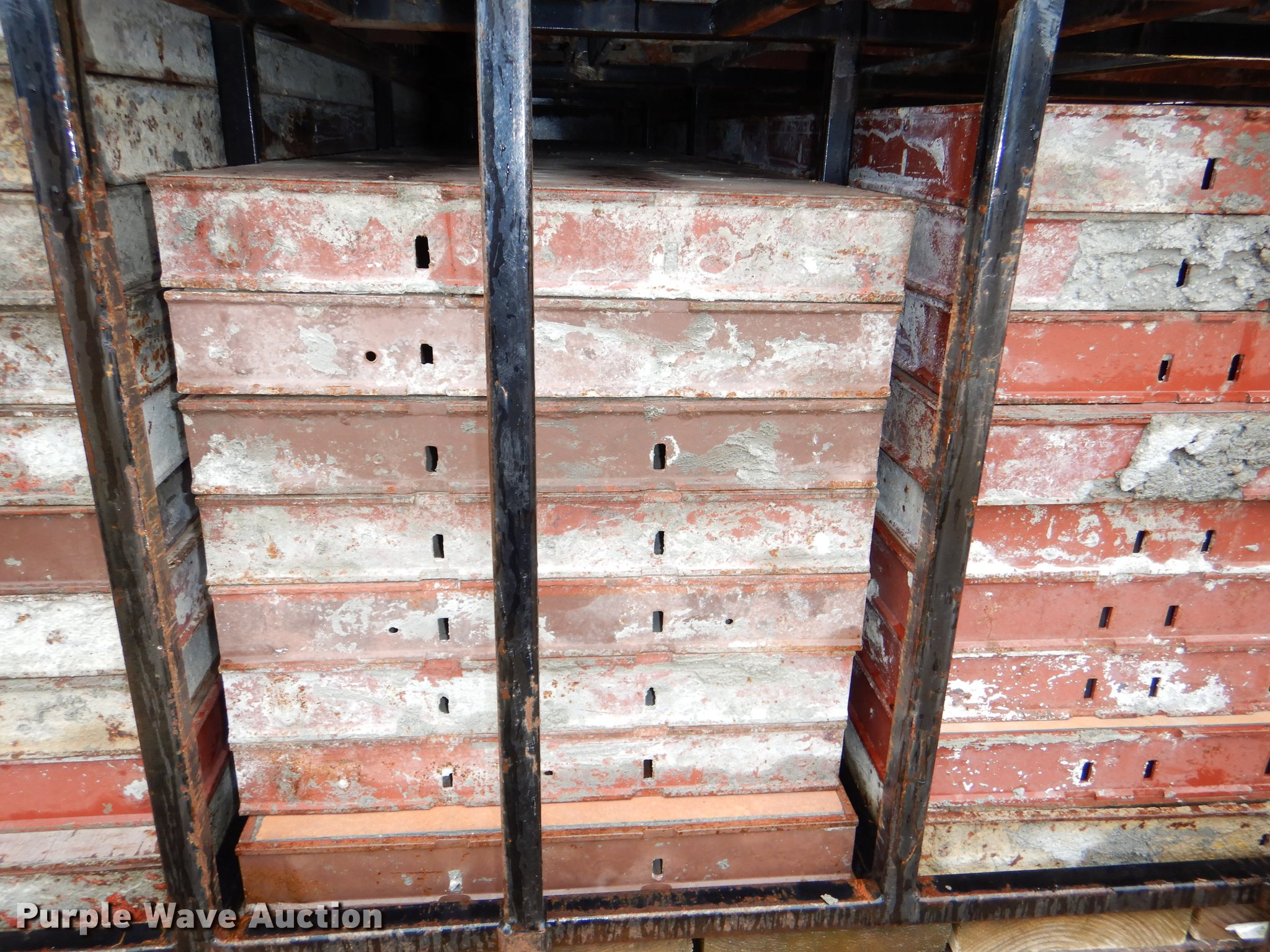 Purple Wave is selling a used Concrete Equip. or Acces. in Kansas. This item is a Concrete forms spacers and corners with the following: (88) 9'L concrete form spacers, (4) 22"W, (9) 20"W, (8) 18"W, (12) 16"W, (15) 14"W, (12) 12"W, (8) 10"W, (6) 8"W, (6) 6"W, (4) 5"W, (4) 4"W, (10) inside corners, (10) outside corners, Pins, wales, and turnbuckles included, Trailer not included