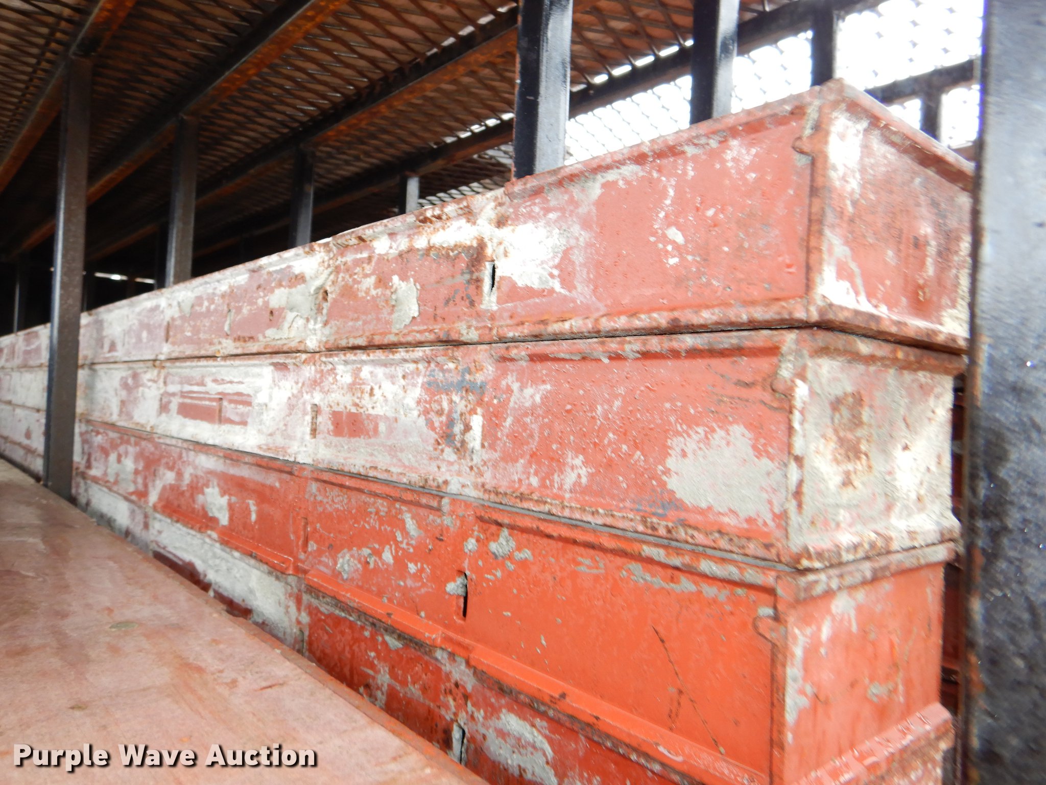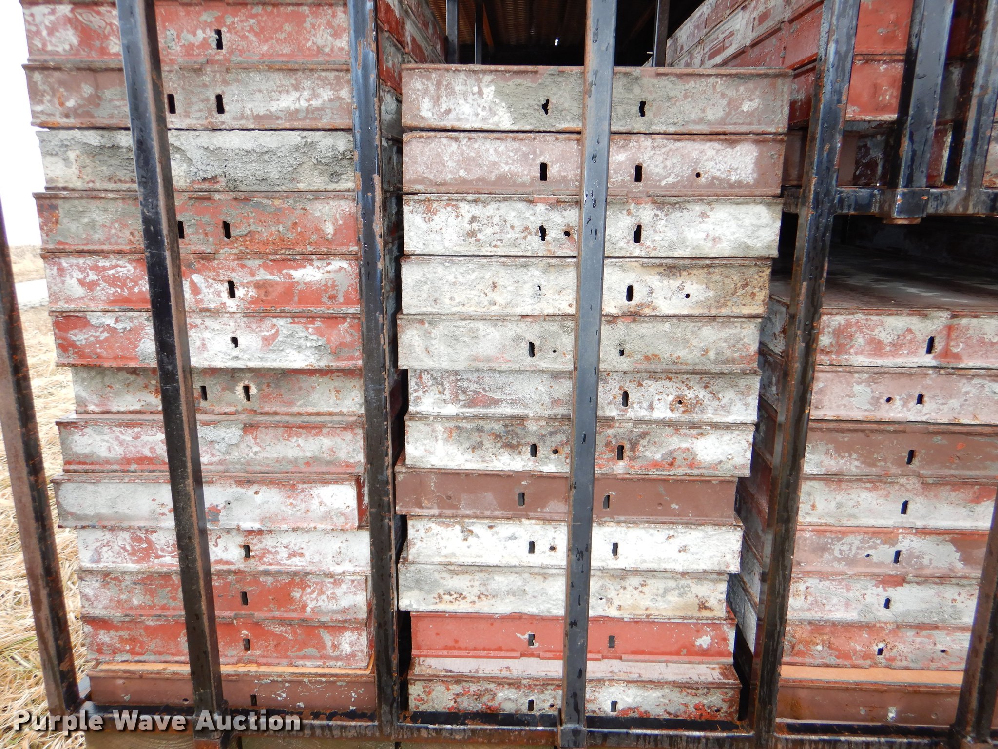 Concrete forms spacers and corners. (88) 9'L concrete form spacers (4) 22"W, (9) 20"W, (8) 18"W, (12) 16"W, (15) 14"W, (12) 12"W, (8) 10"W, (6) 8"W, (6) 6"W, (4) 5"W, (4) 4"W, (10) inside corners, (10) outside corners, Pins, wales, and turnbuckles included, Trailer not included. Sabetha, KS 66534
